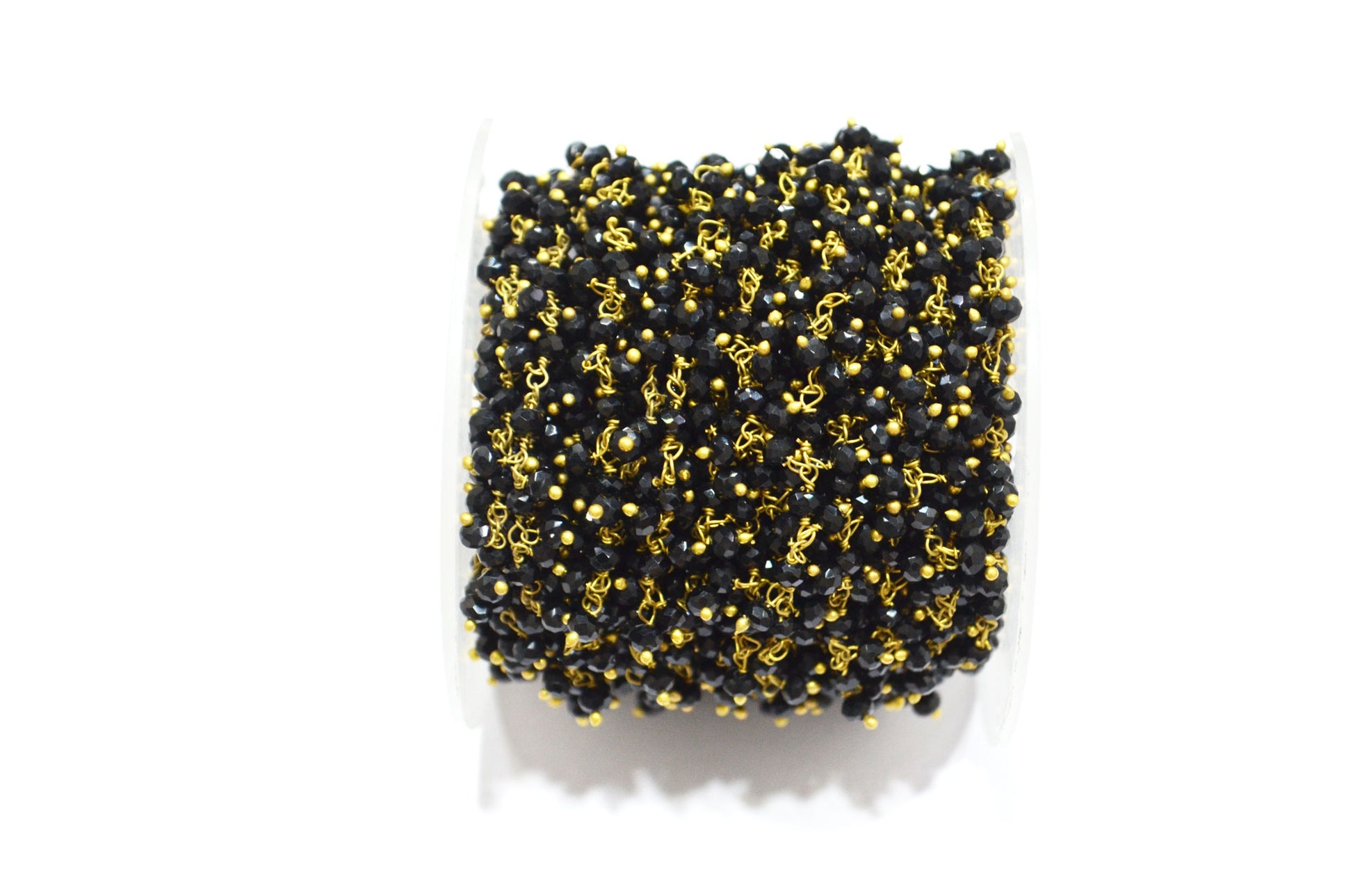 Black Spinel Hydro Quartz Faceted Rondelle Shape Dangling Chain , 3 - 3.50 mm , RB-5390