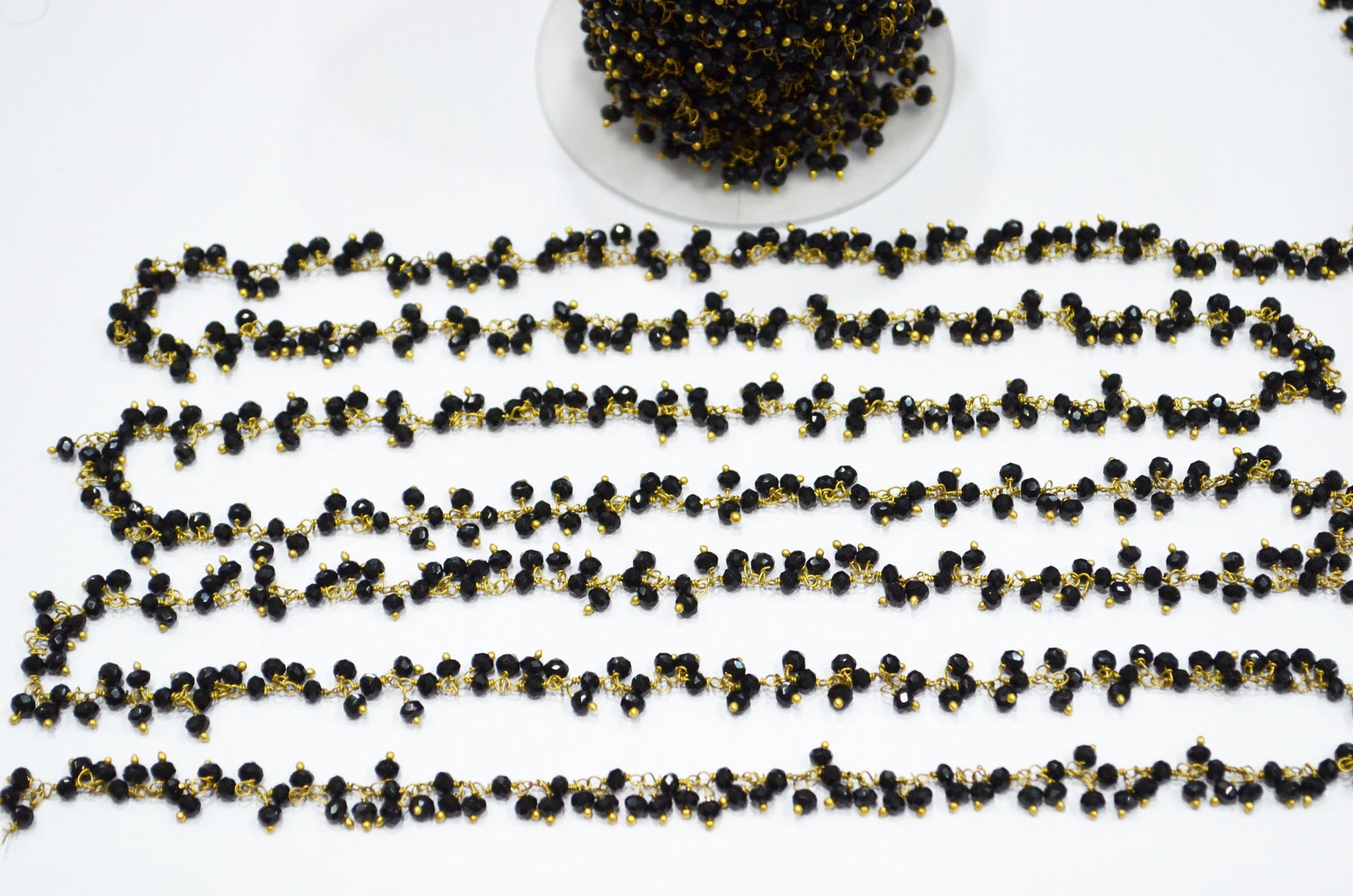 Black Spinel Hydro Quartz Faceted Rondelle Shape Dangling Chain , Black Spinel Hydro Quartz Grape Chain , 3 - 3.50 mm , RB-5390