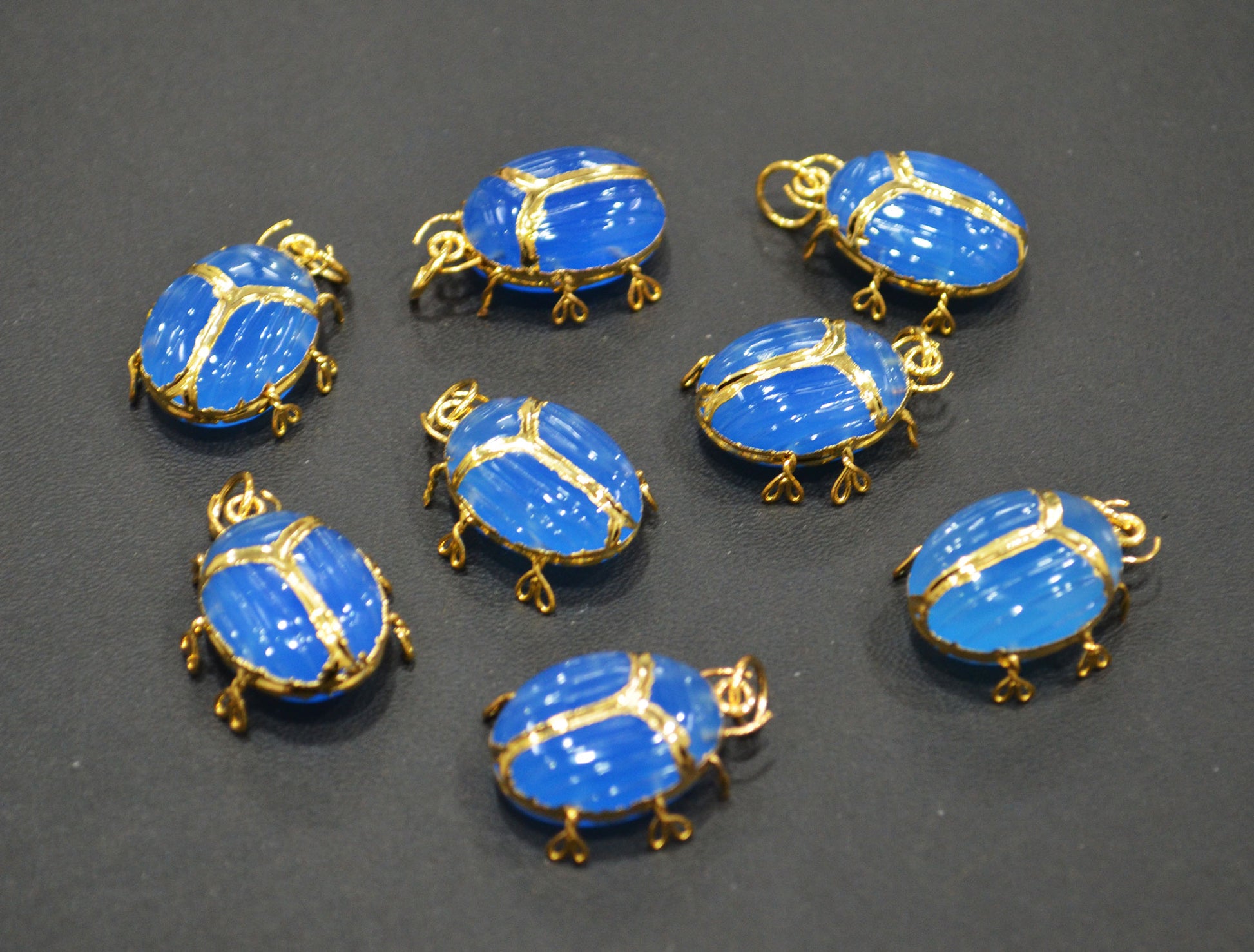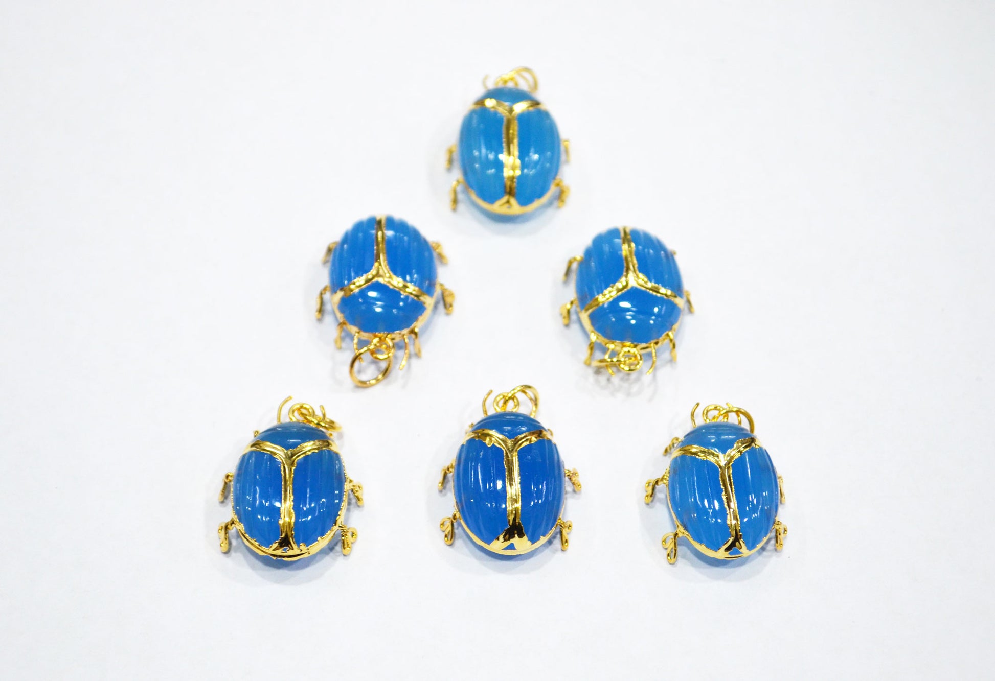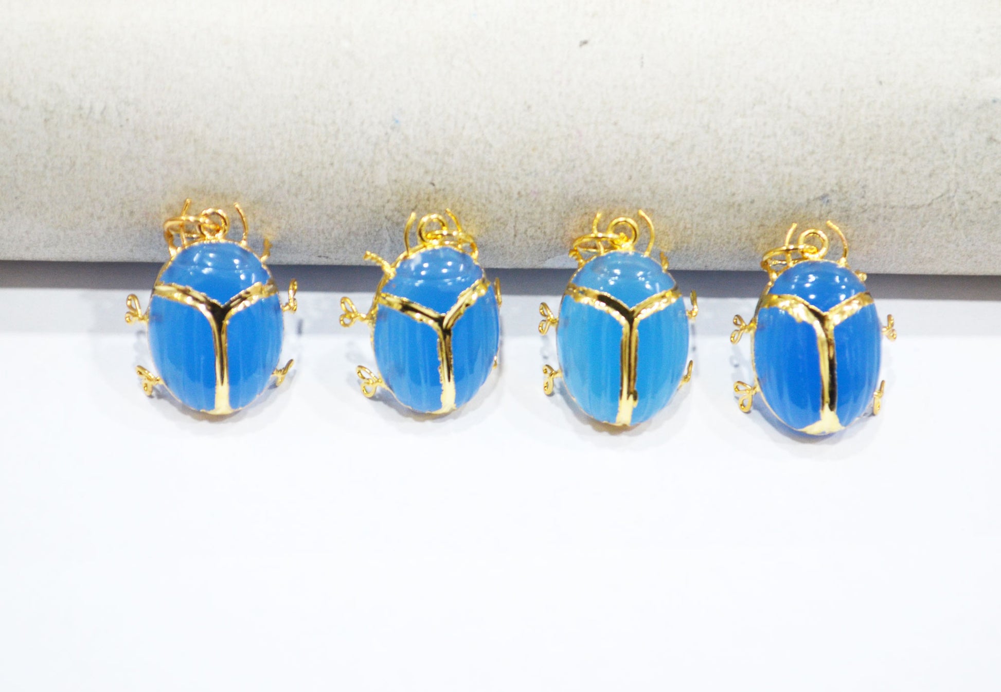 Blue Chalcedony Electroplated Beetle Pendant , Egyptian Scarab Blue Chalcedony Charm , Sold By Piece , Use To Make Jewelry , 2 - 2.25 cm , 32490