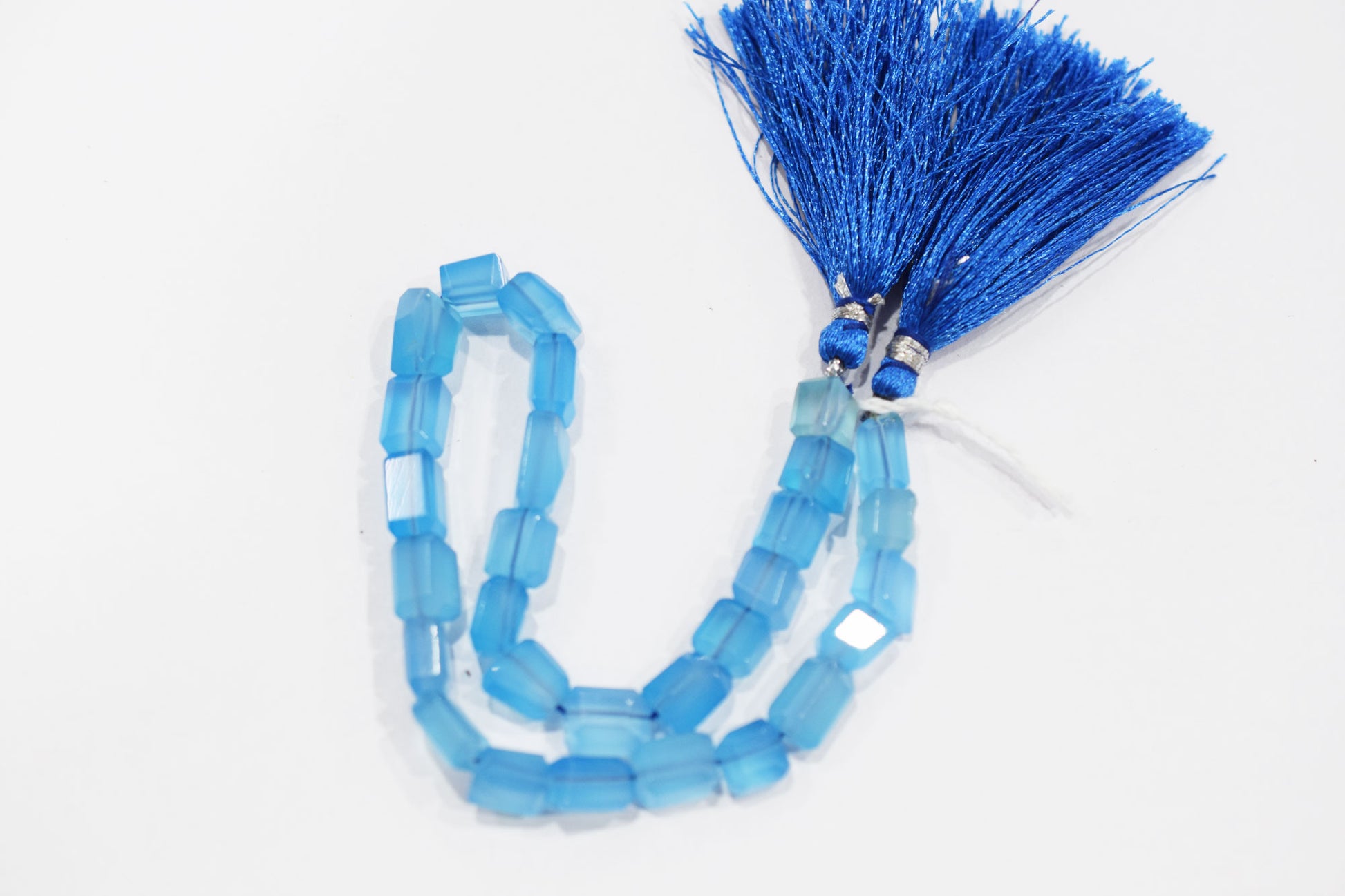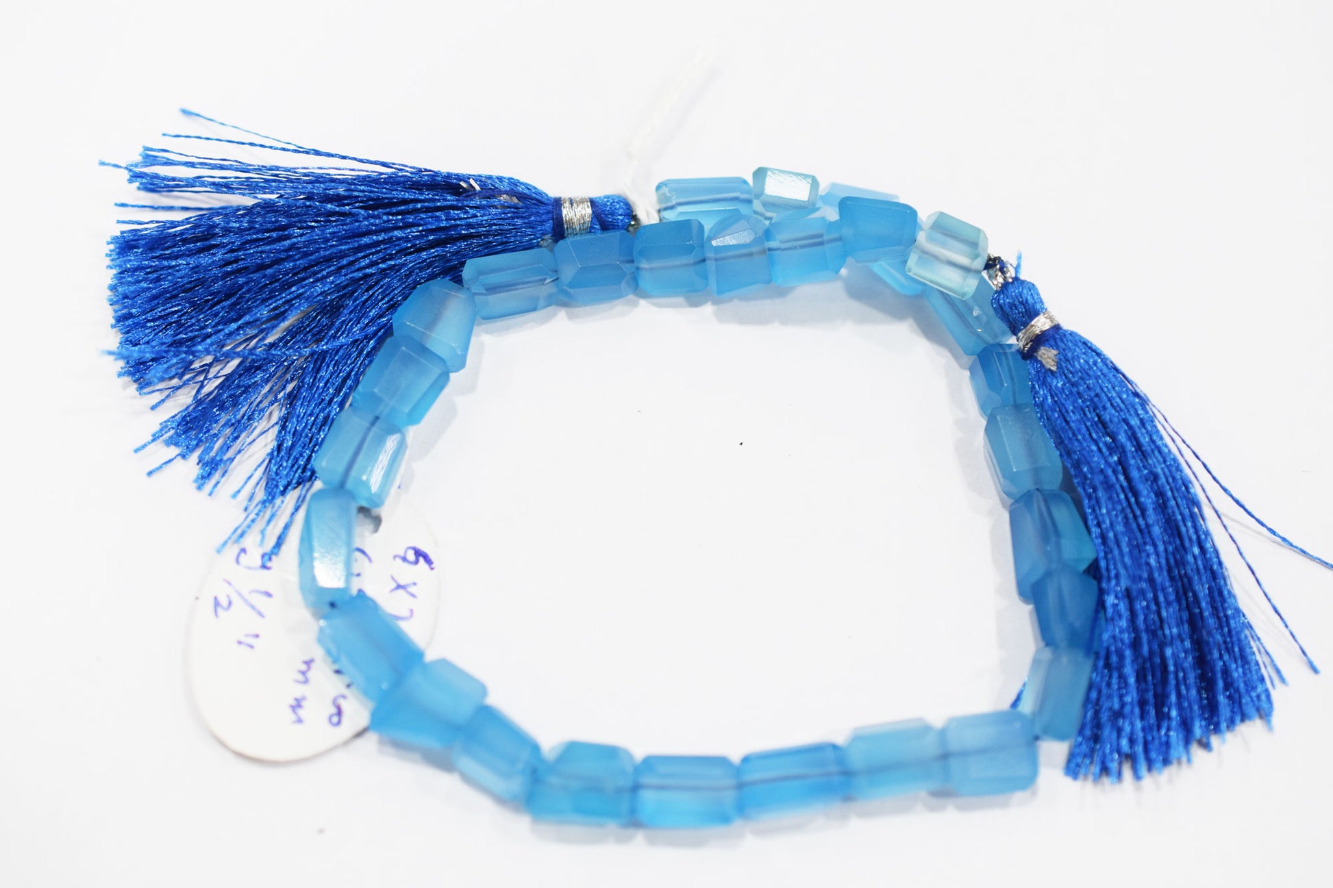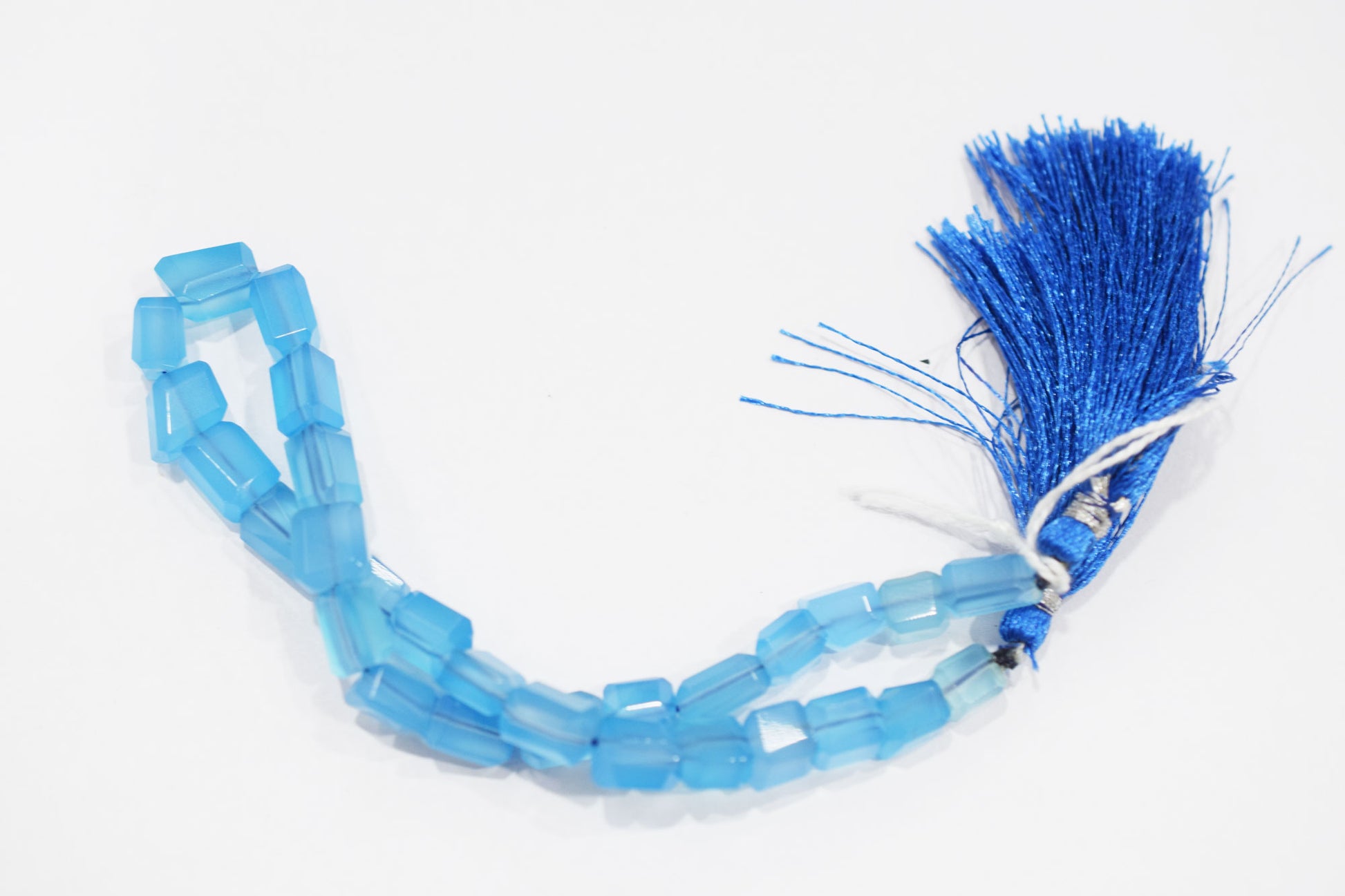 Blue Chalcedony Step Cut Faceted Laser Nuggets Shape Beads , Blue Chalcedony Laser Beads , Sold By Strand , 6x7 - 6.50x11 mm , 16", 32132