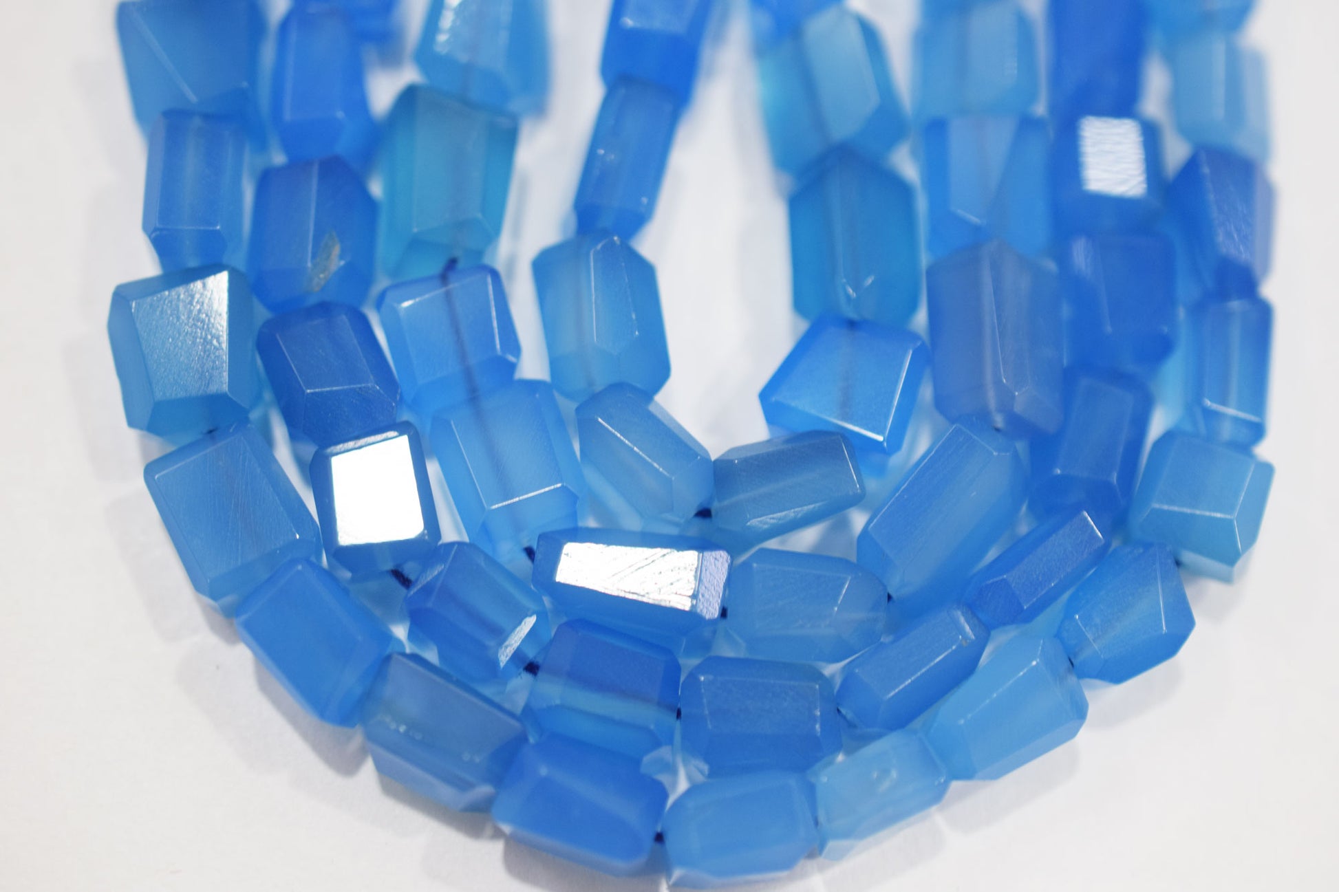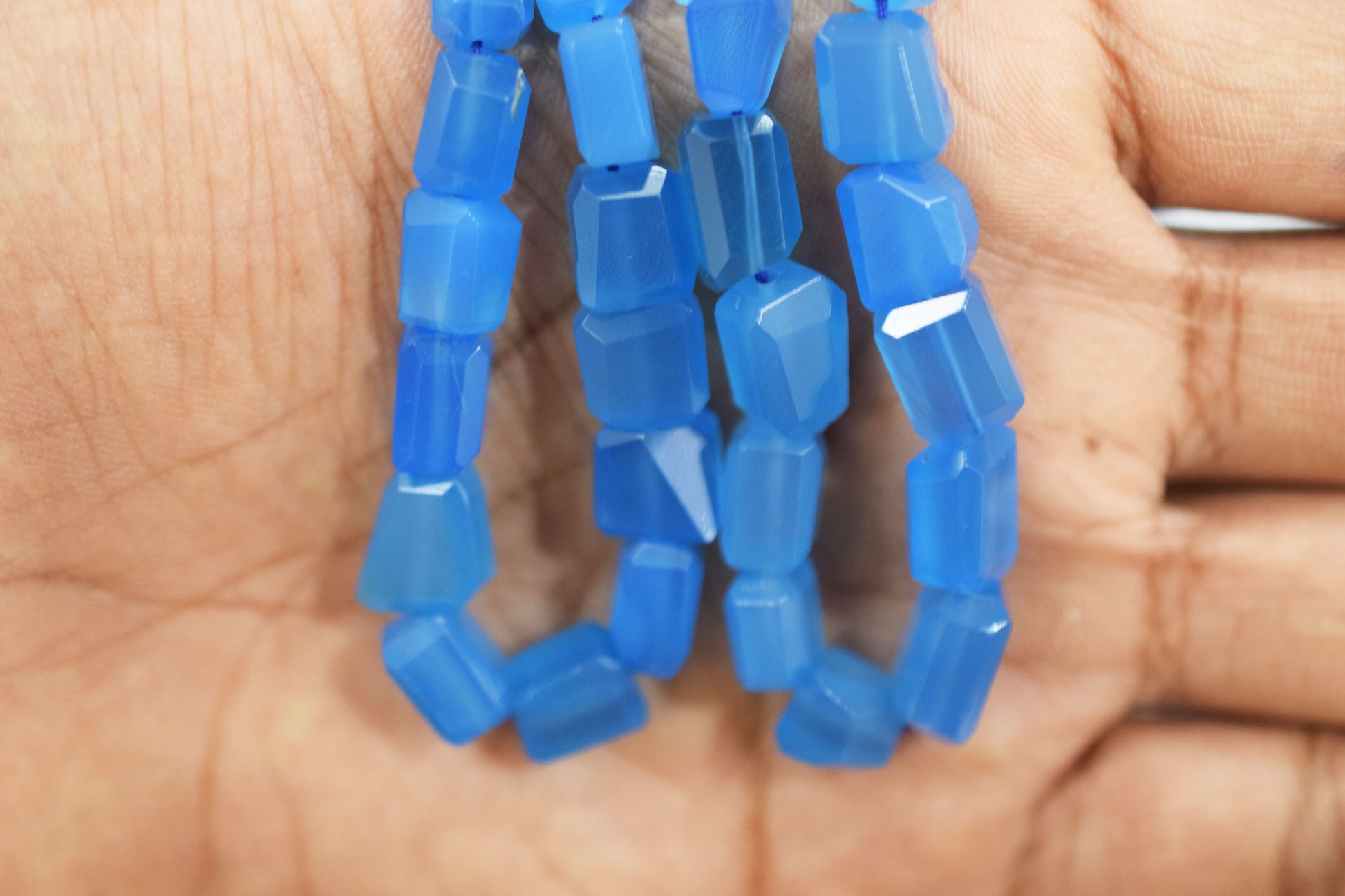 Blue Chalcedony Step Cut Faceted Laser Nuggets Shape Beads , Blue Chalcedony Laser Beads , Sold By Strand , 7x8 - 9x12 mm , 16", 32136