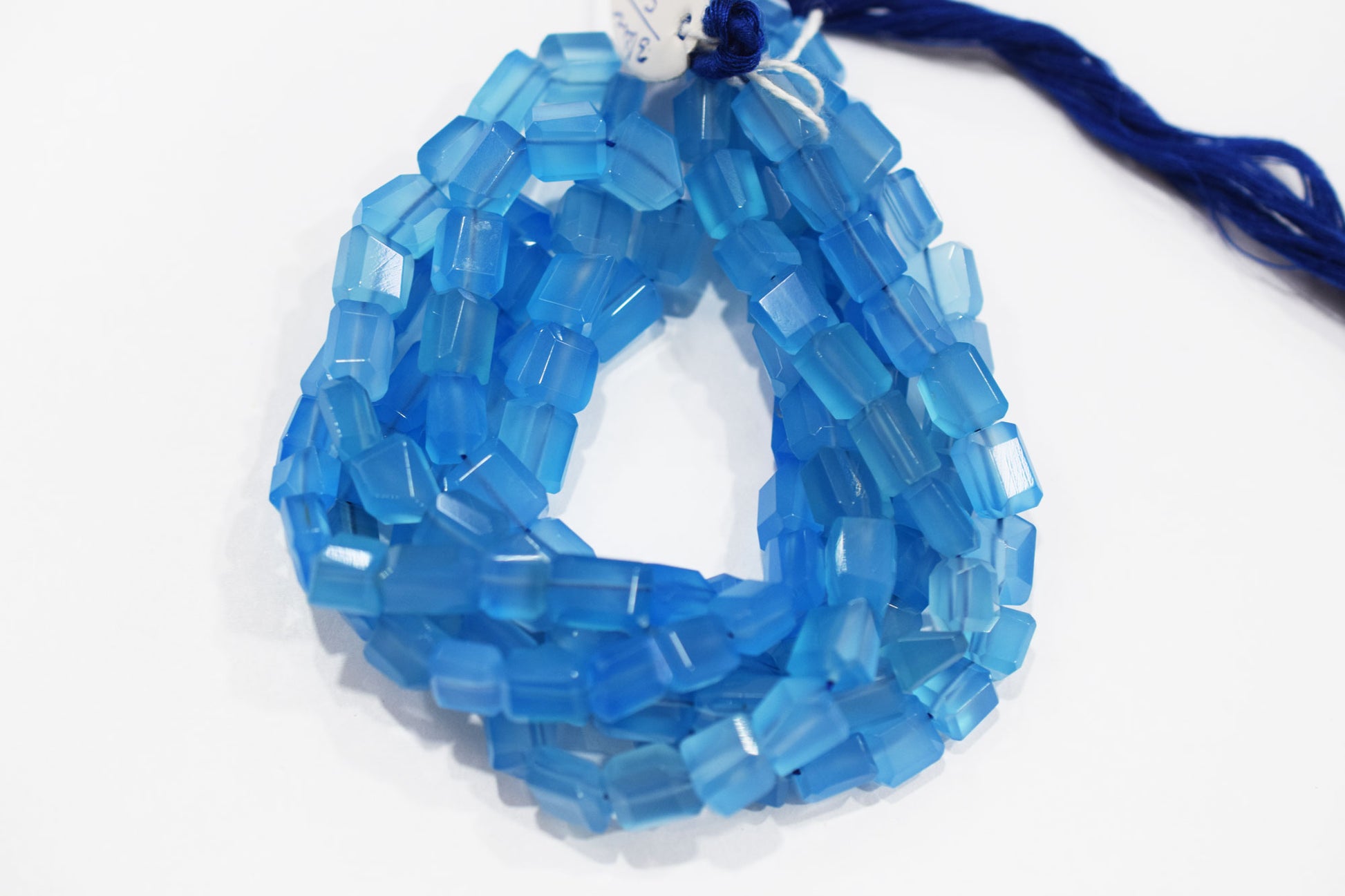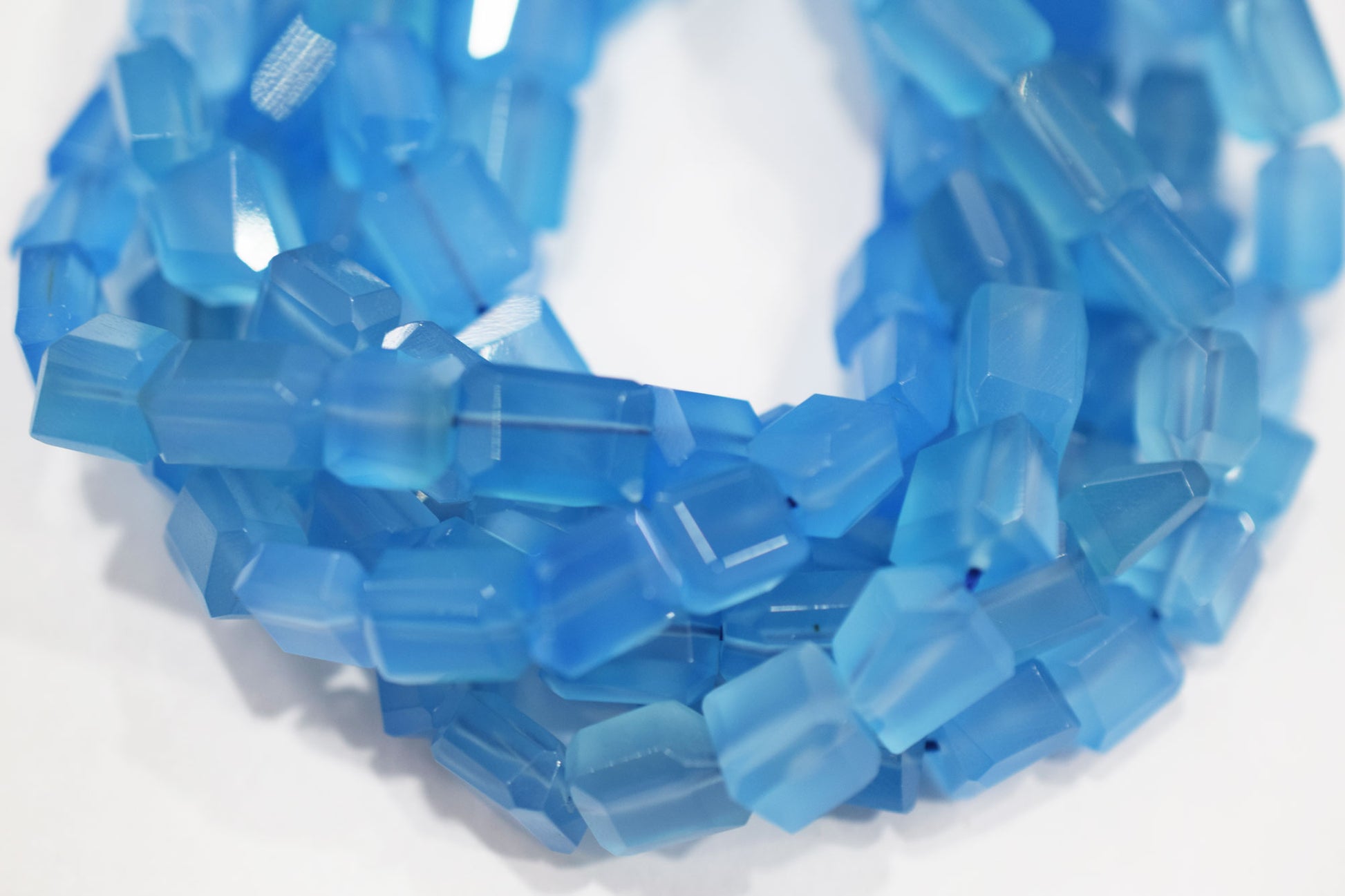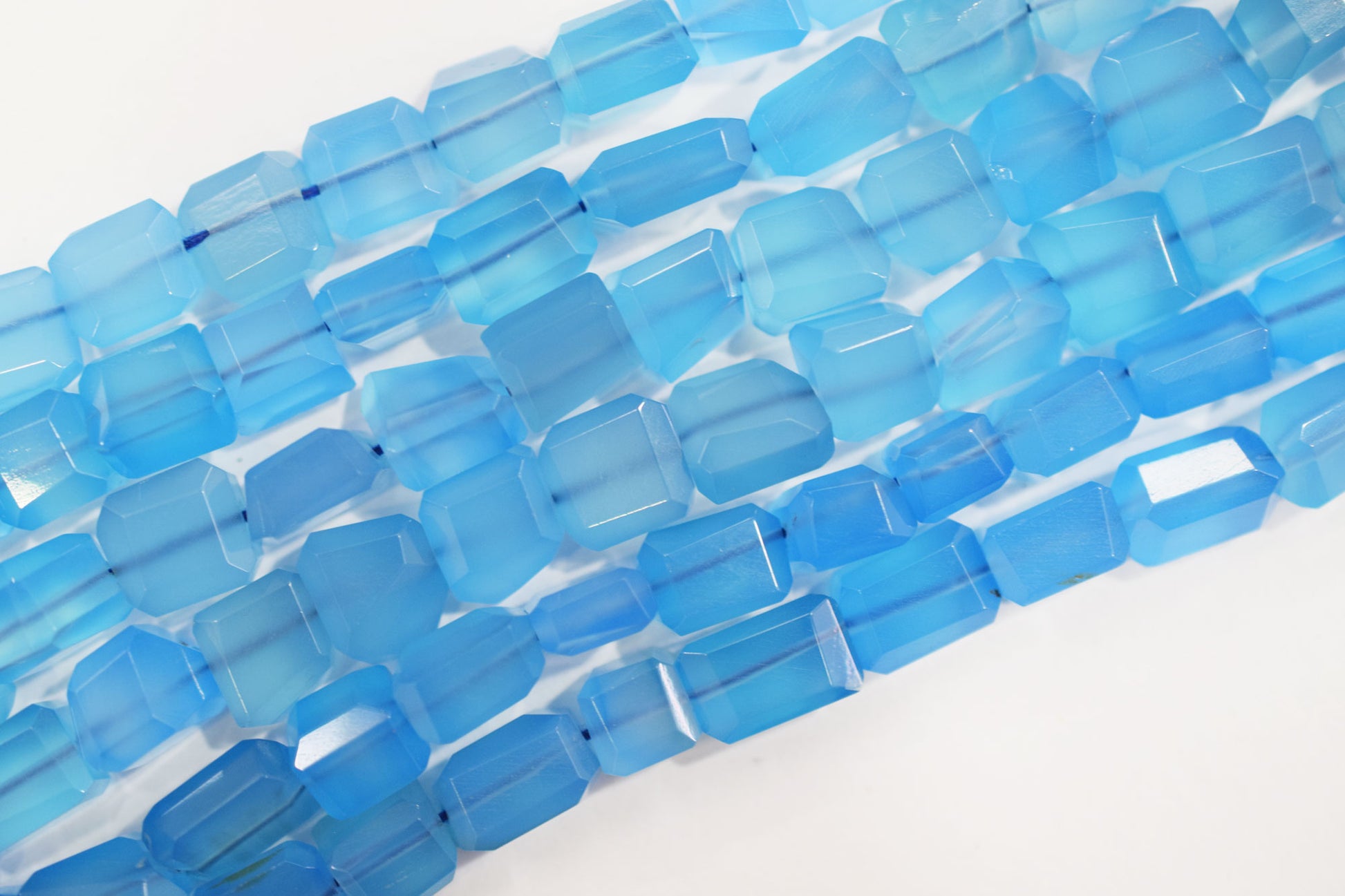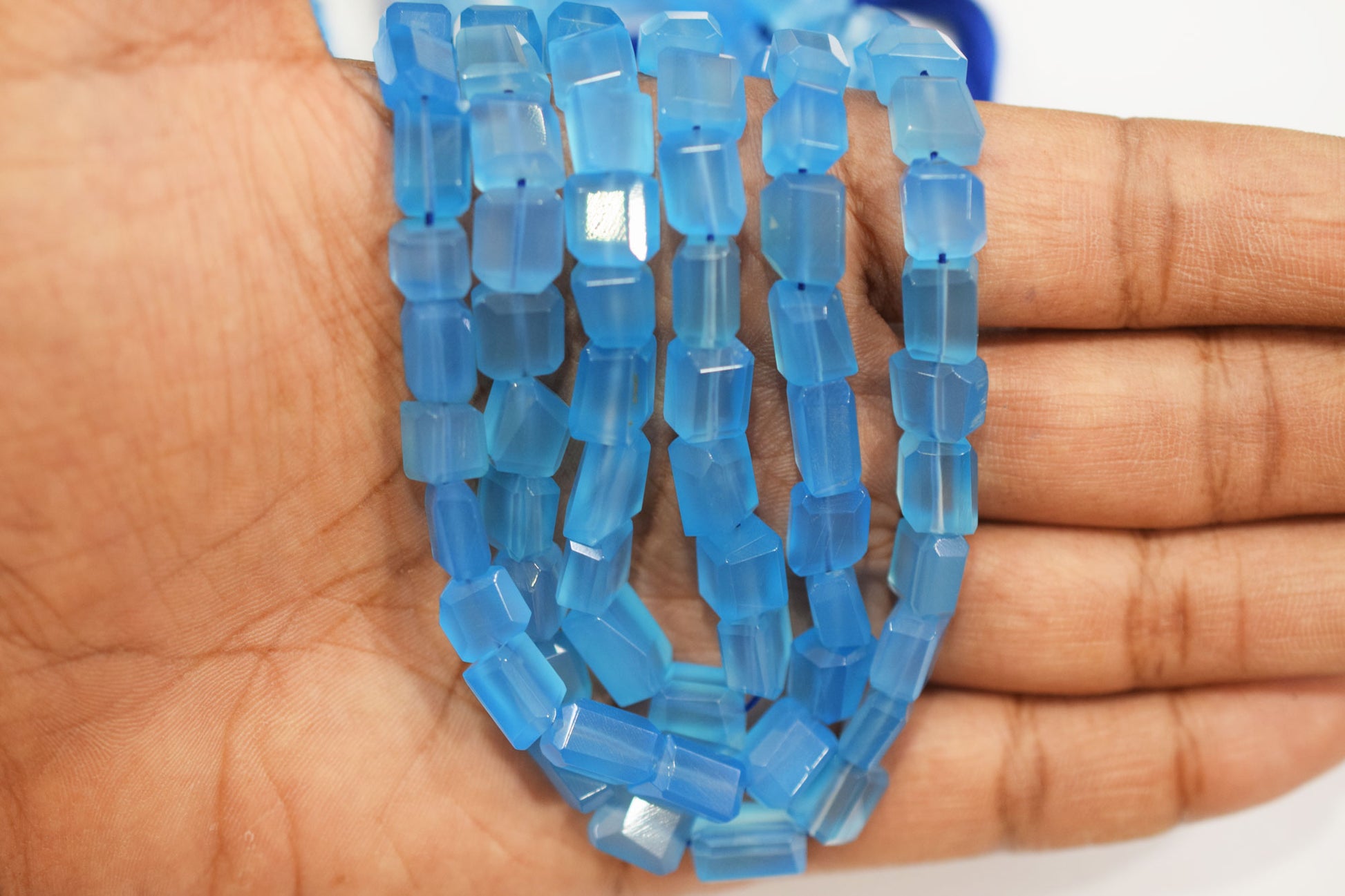 Blue Chalcedony Step Cut Faceted Laser Nuggets Shape Beads , Blue Chalcedony Laser Beads , Sold By Strand , 7x9 - 8x11 mm , 16" , 32141