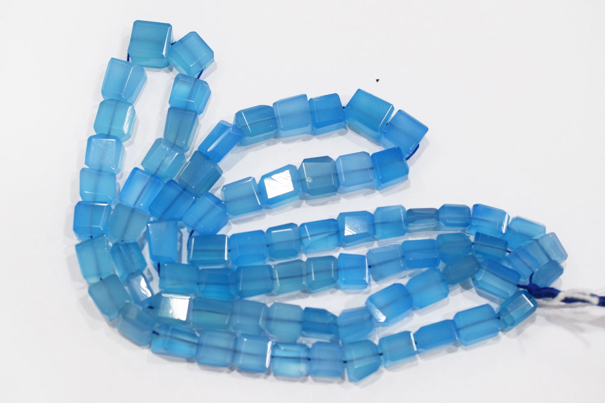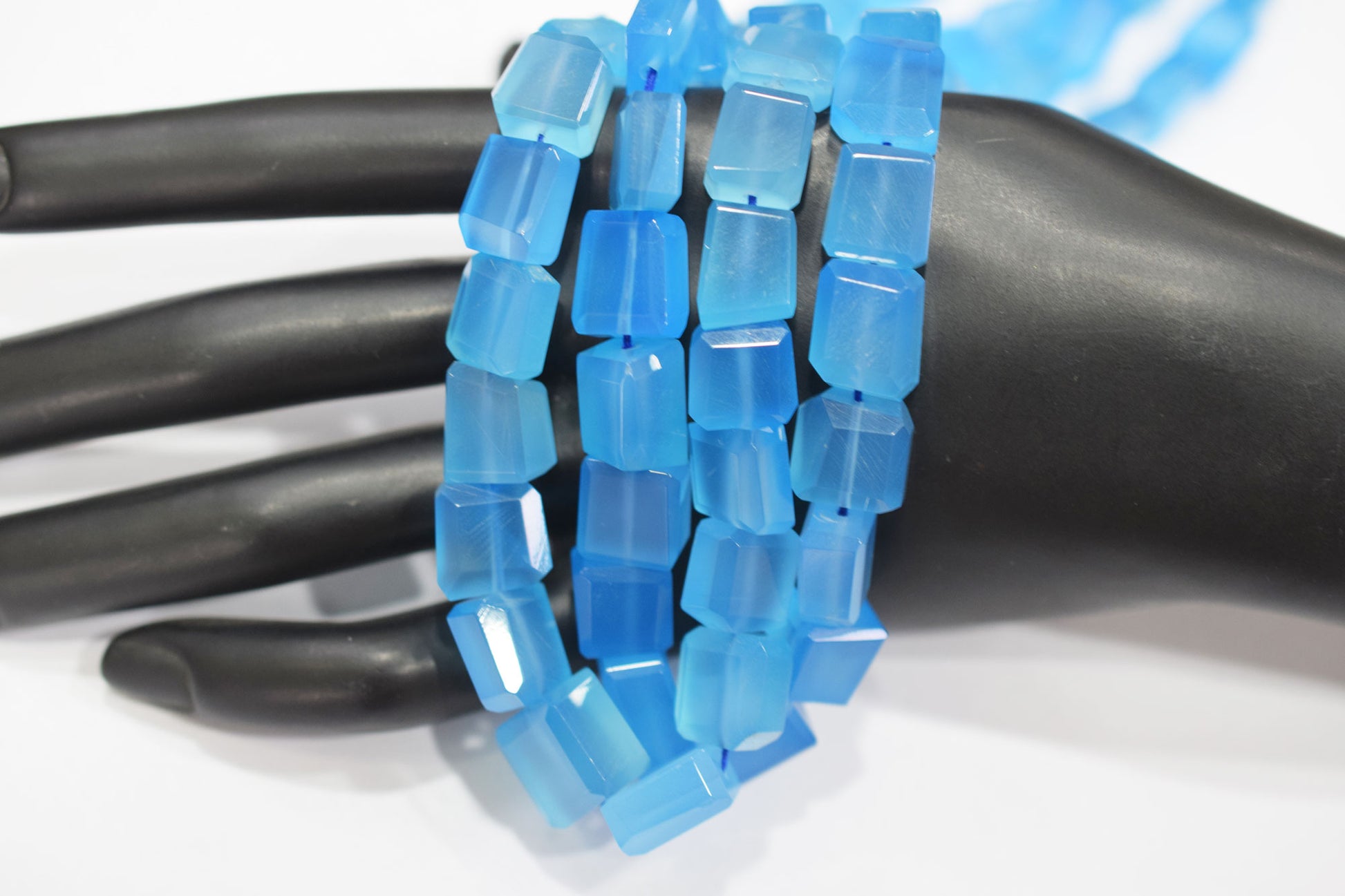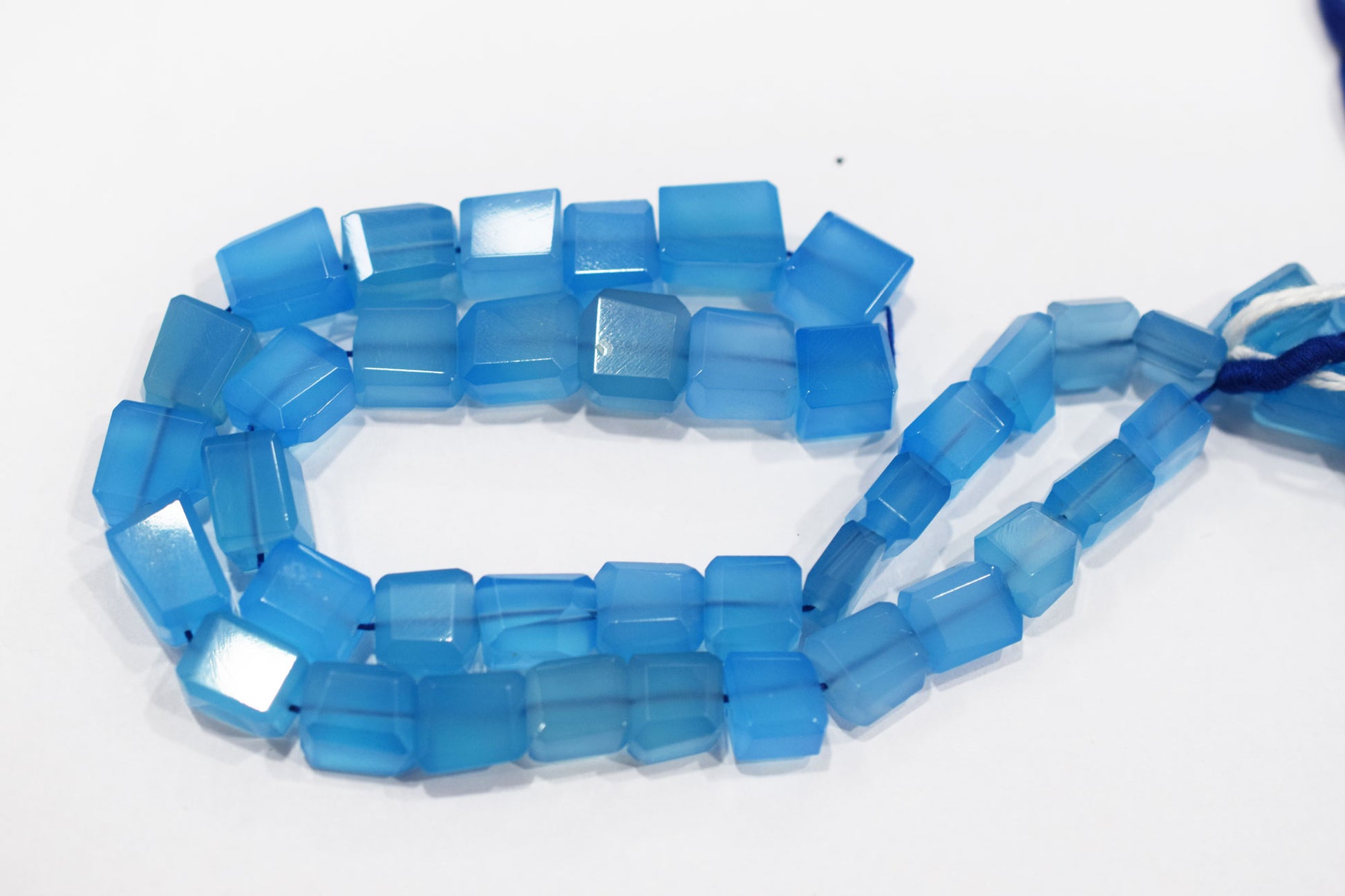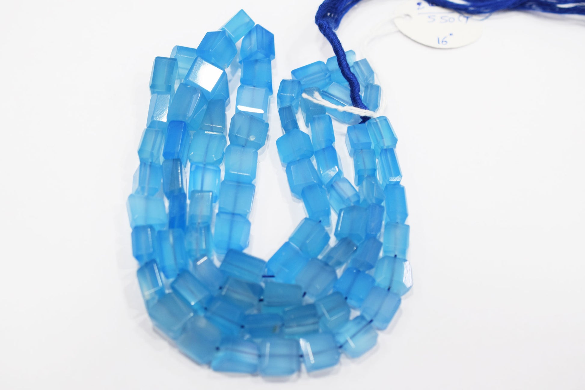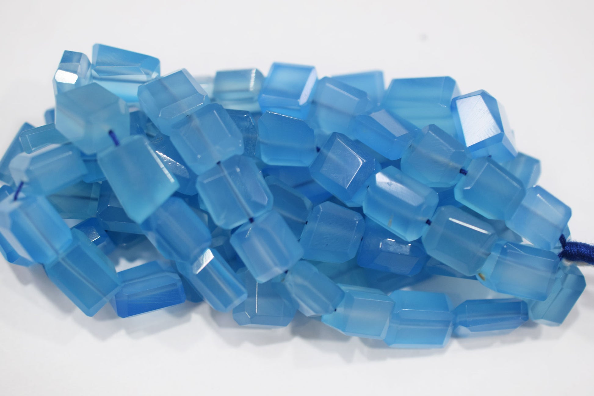 Blue Chalcedony Step Cut Faceted Laser Nuggets Shape Beads , Blue Chalcedony Laser Beads , Sold By Strand , 8x9 - 10x13 mm , 16" , 32140