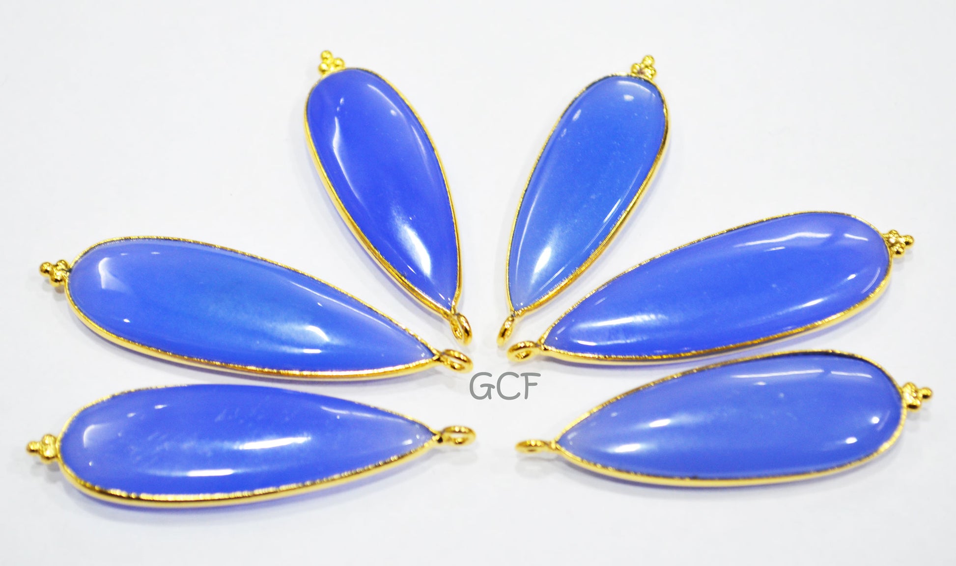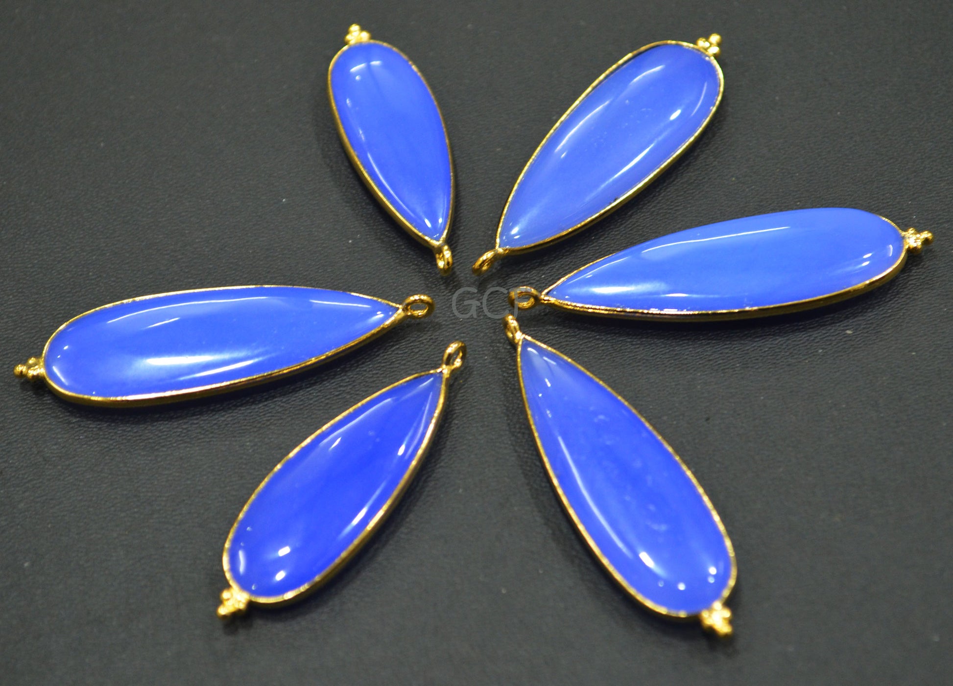 Blue Chalcedony Smooth Pear Shape Single Bail Connector , Blue Chalcedony Bezel Connector , Sold By Piece , 13x30 - 14x41 mm , RB-6836