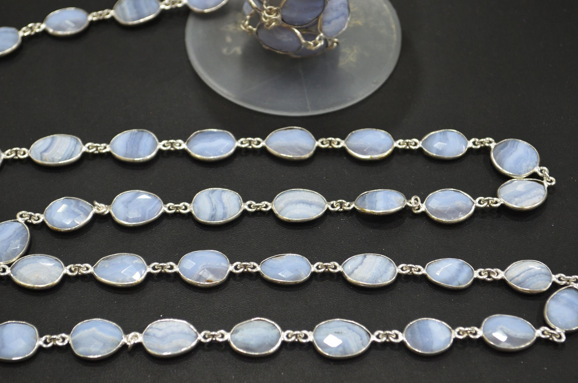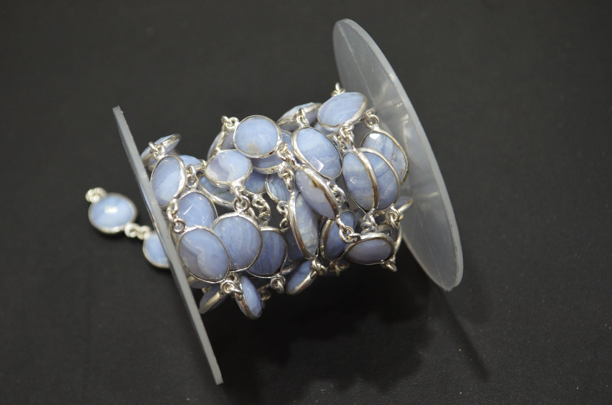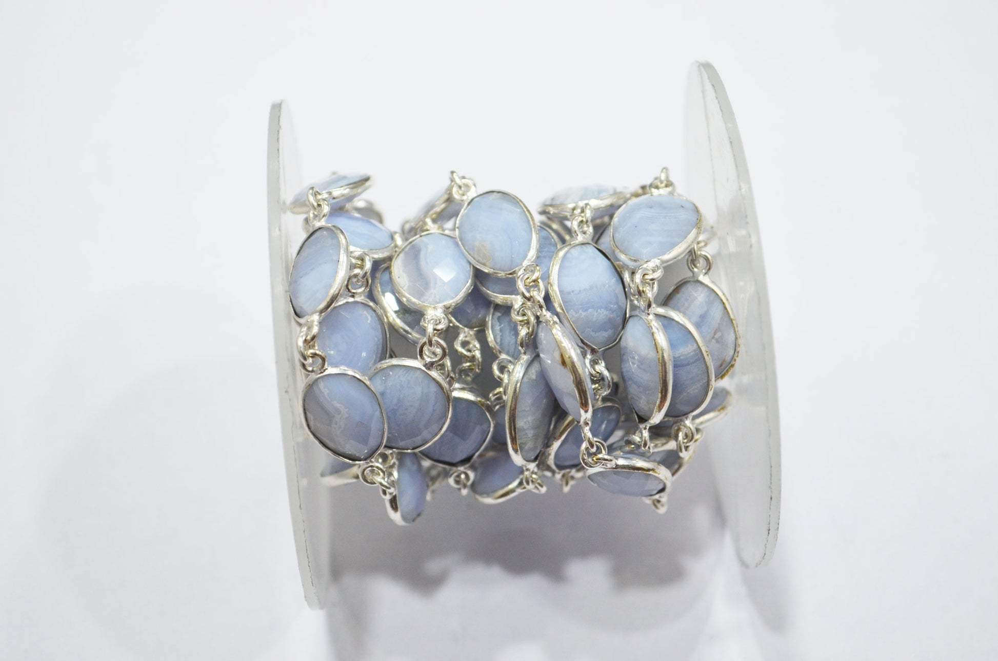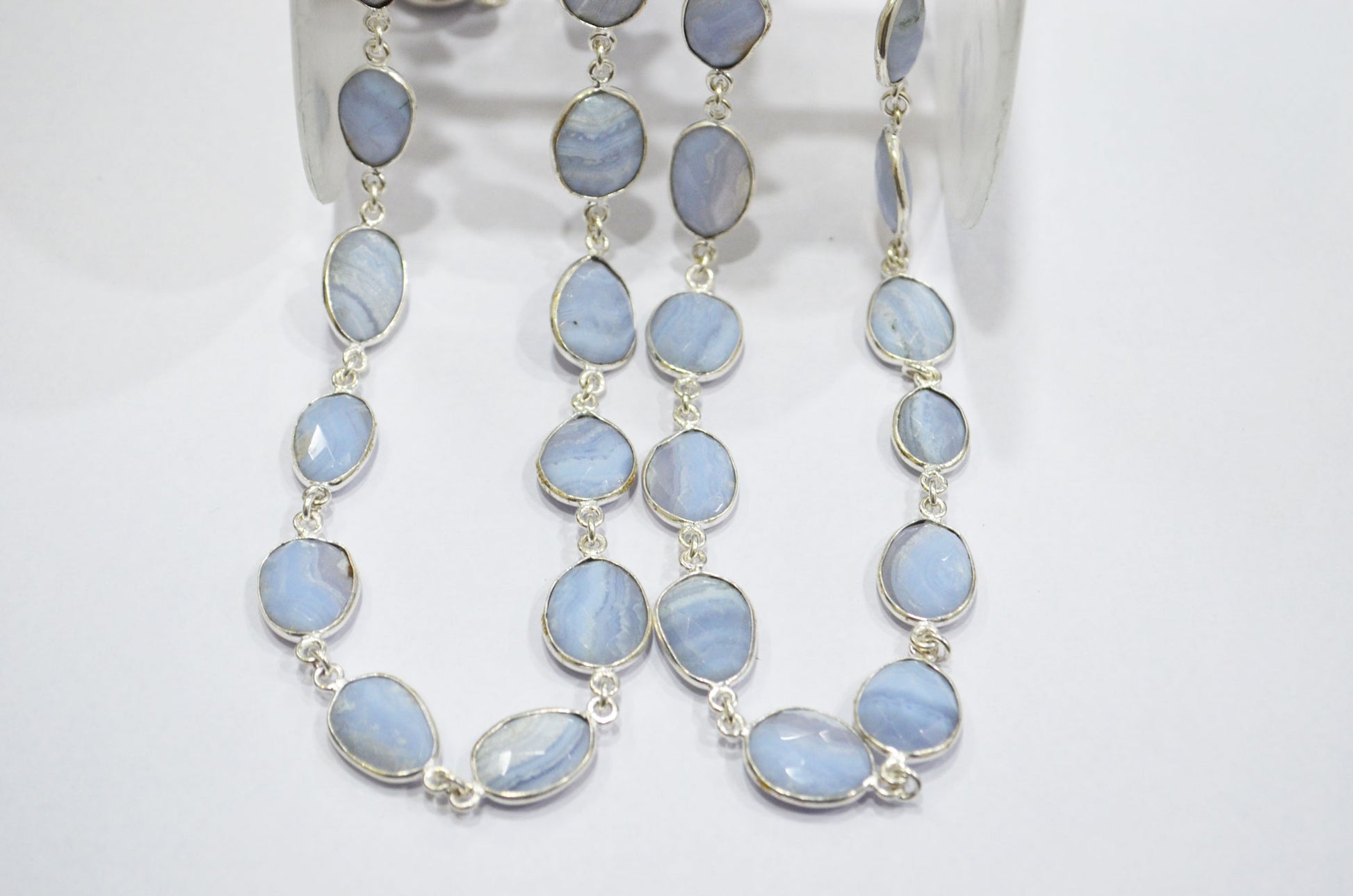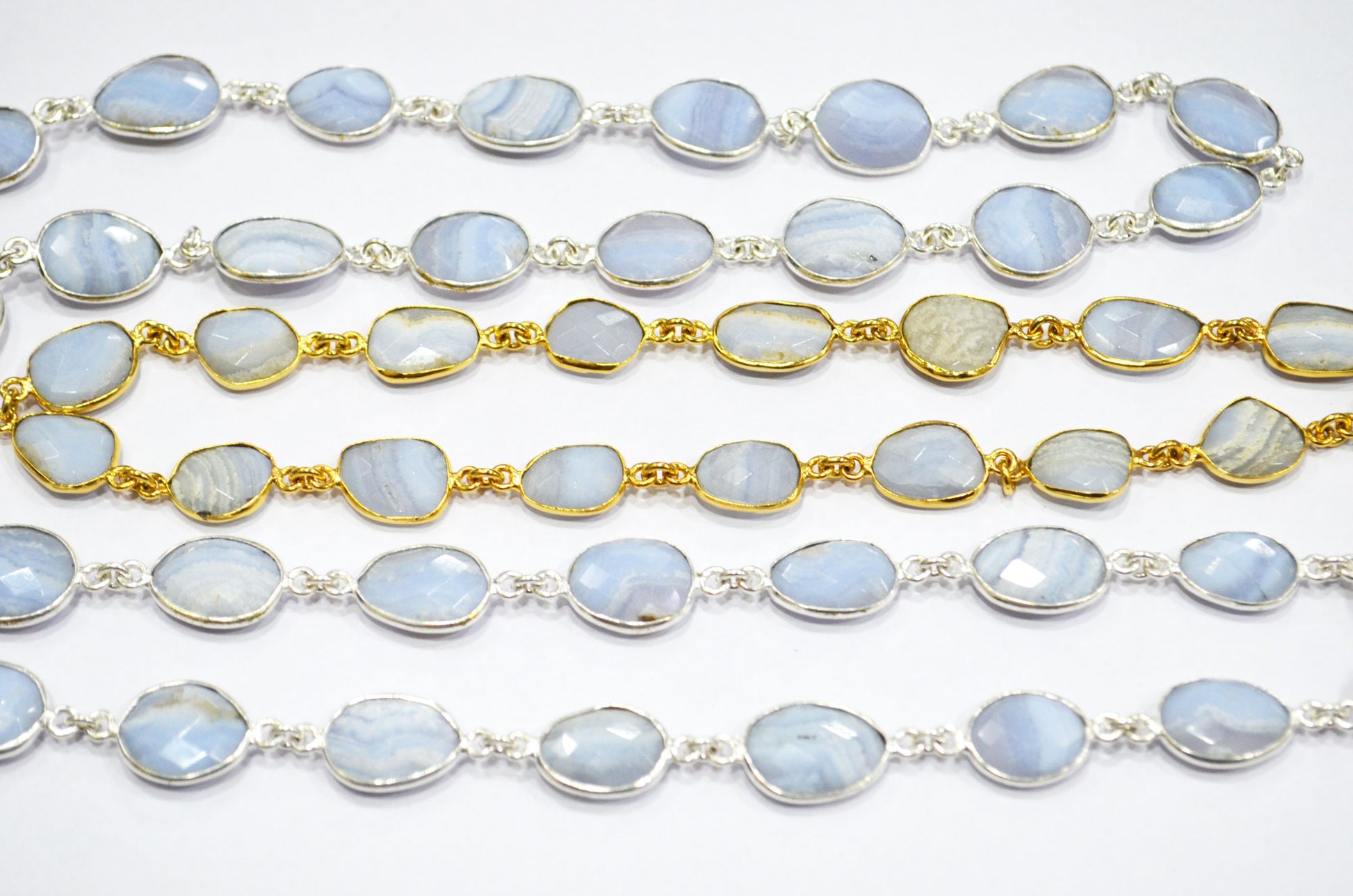 Blue Lace Agate Slice Shape Connector Chain , Blue Lace Agate Faceted Free Form Shape Bezel Link Chain , 10 - 14 mm , RB-6342