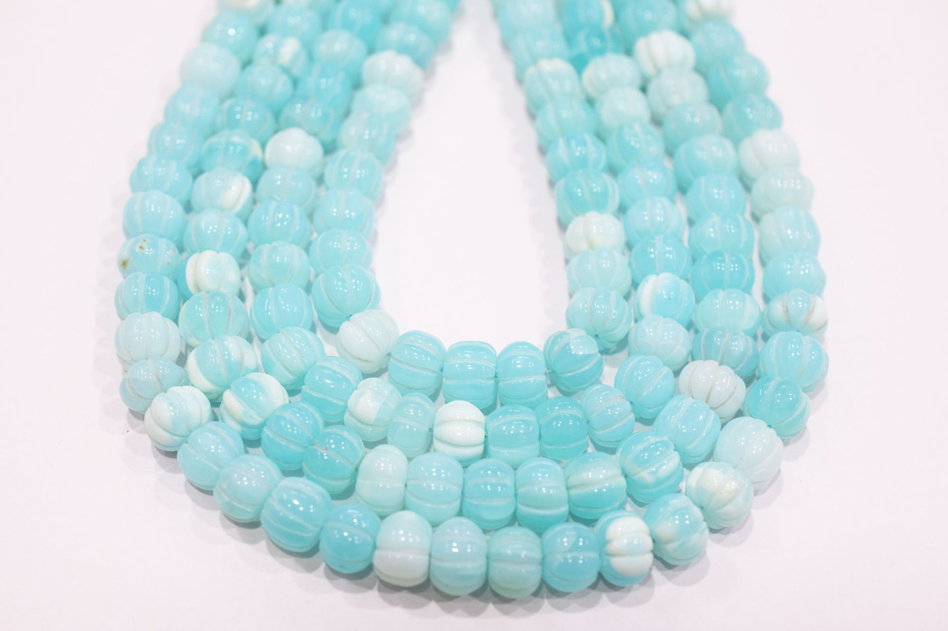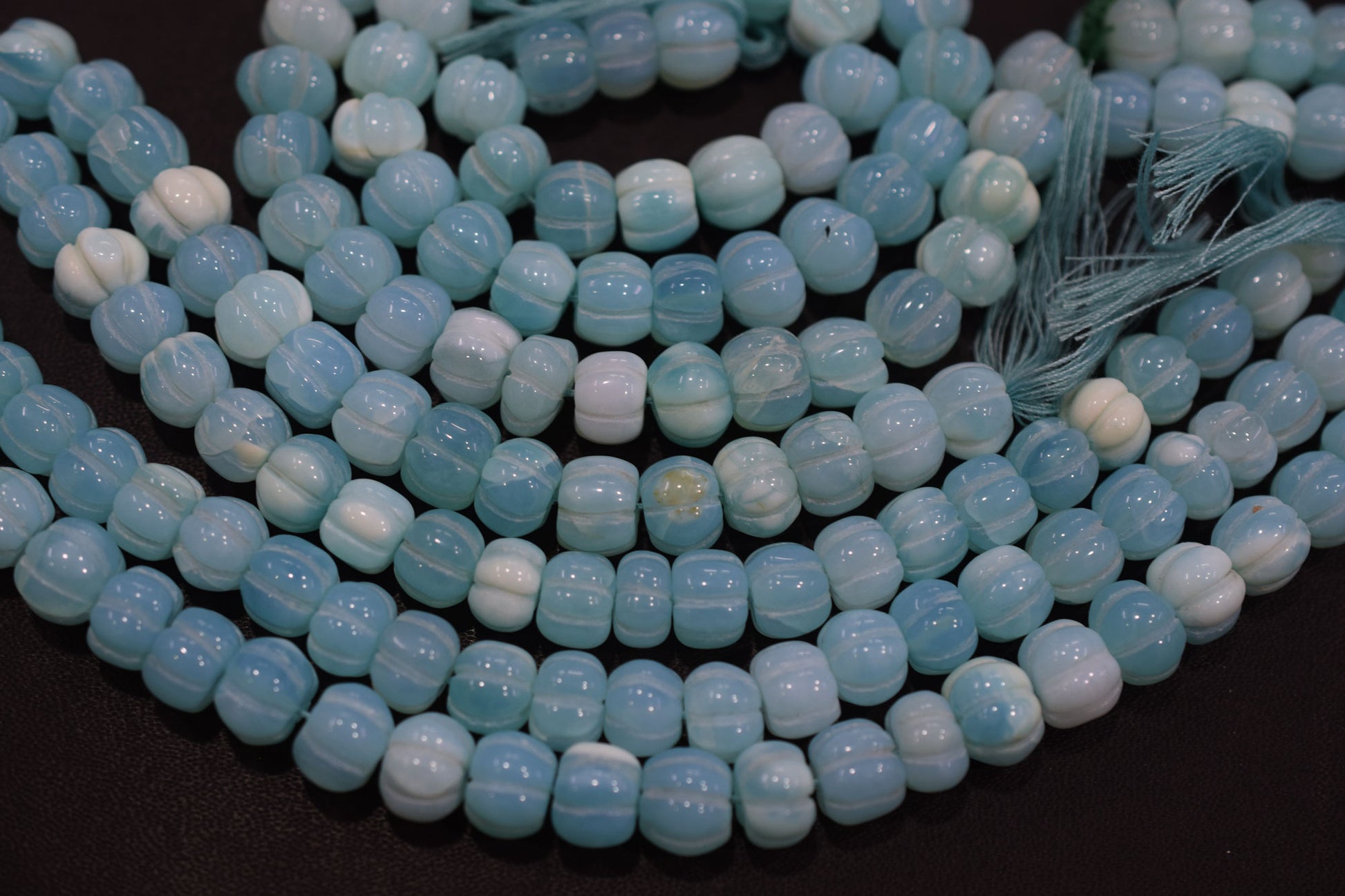 Blue Opal Carved Smooth Beads , Blue Opal Carved Melon Shape Beads , Sold By Strand , 9 - 11 mm, 16 inches , 20186