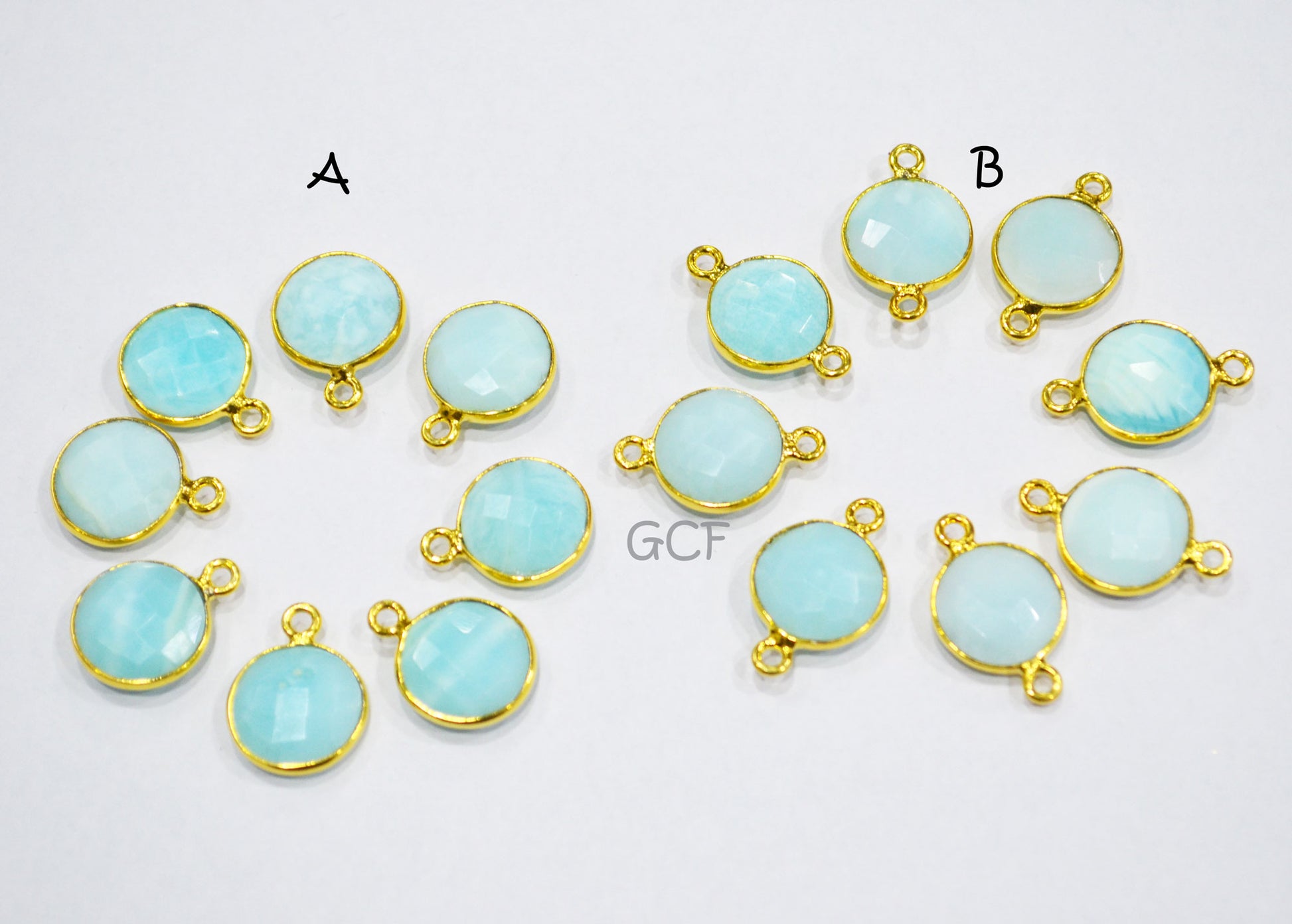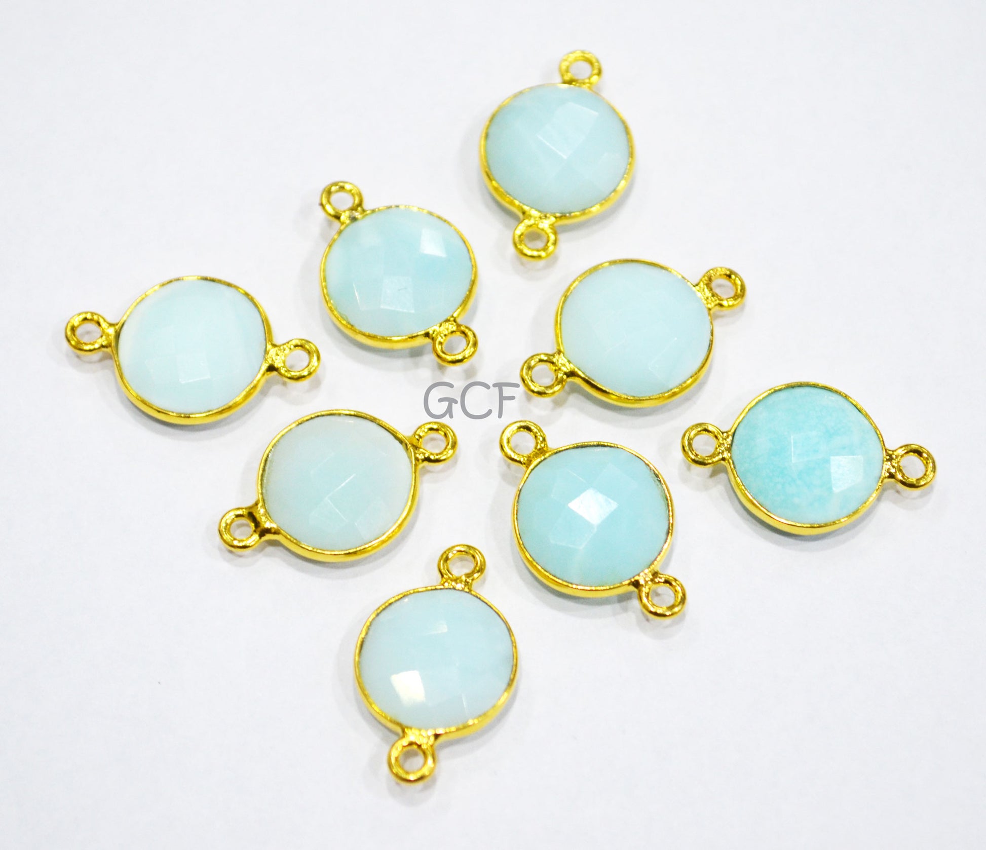 Blue Peruvian Opal Faceted Coin Shape Connector , Peruvian Opal Single And Double Bail Bezel Connector , Sold By Piece , 13 mm , RB-7018