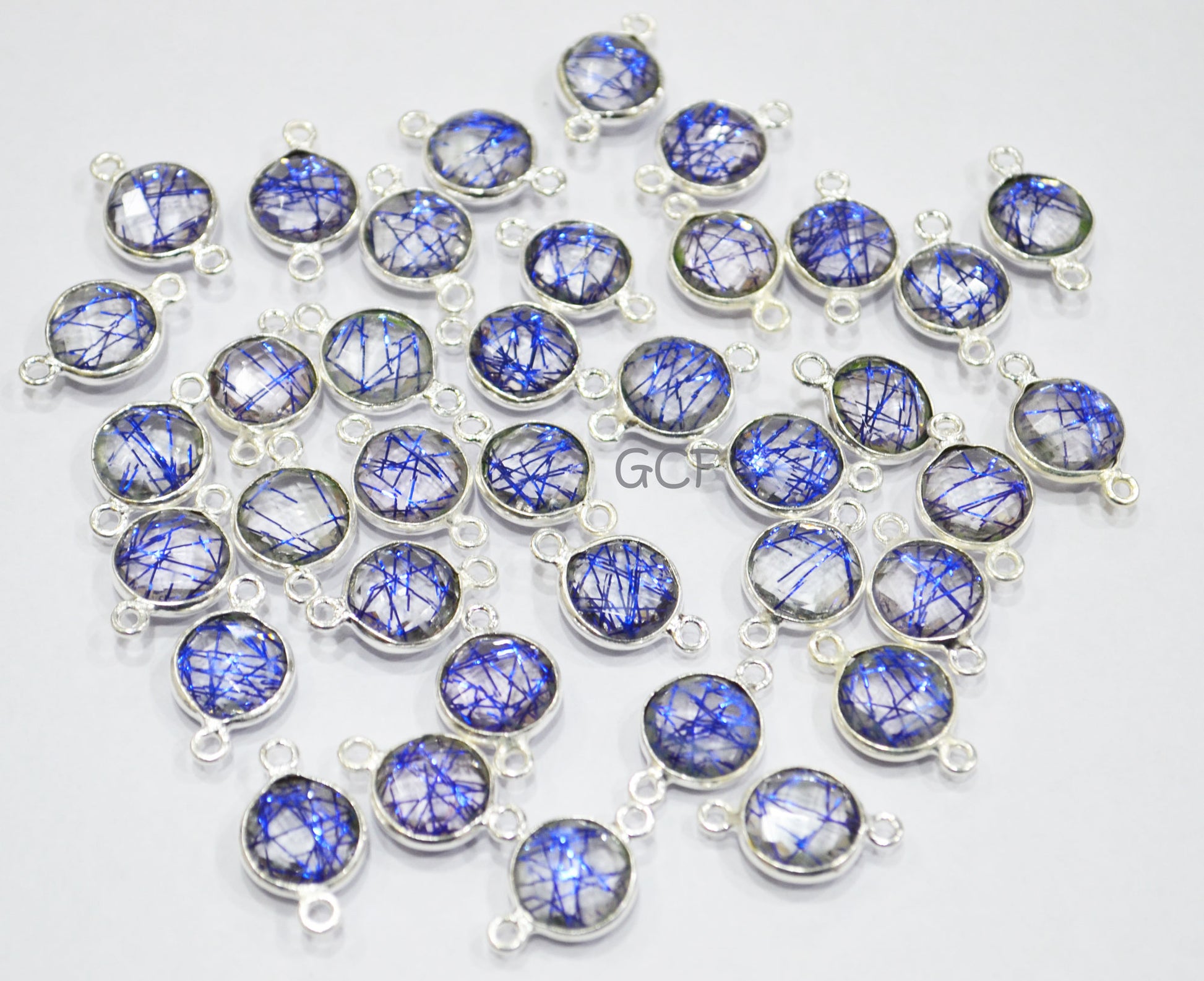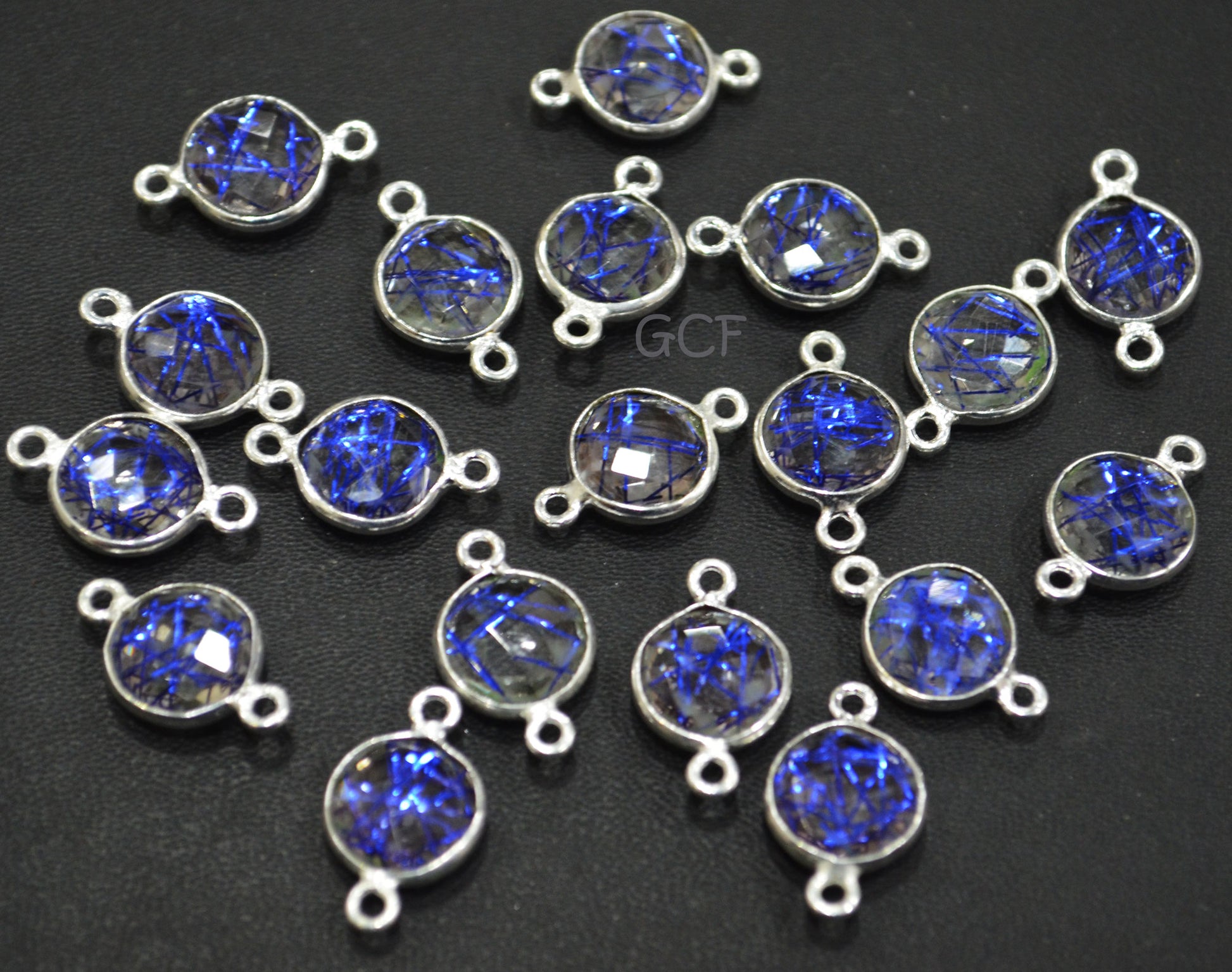 Blue Rutile Faceted Coin Shape Double Bail ConnectorΒ , Blue Rutile Doublet Hydro Glass Connector , Sold By Piece , 12 mm , RB-6748