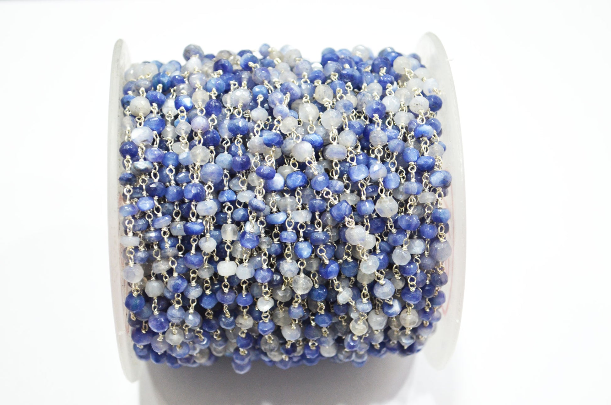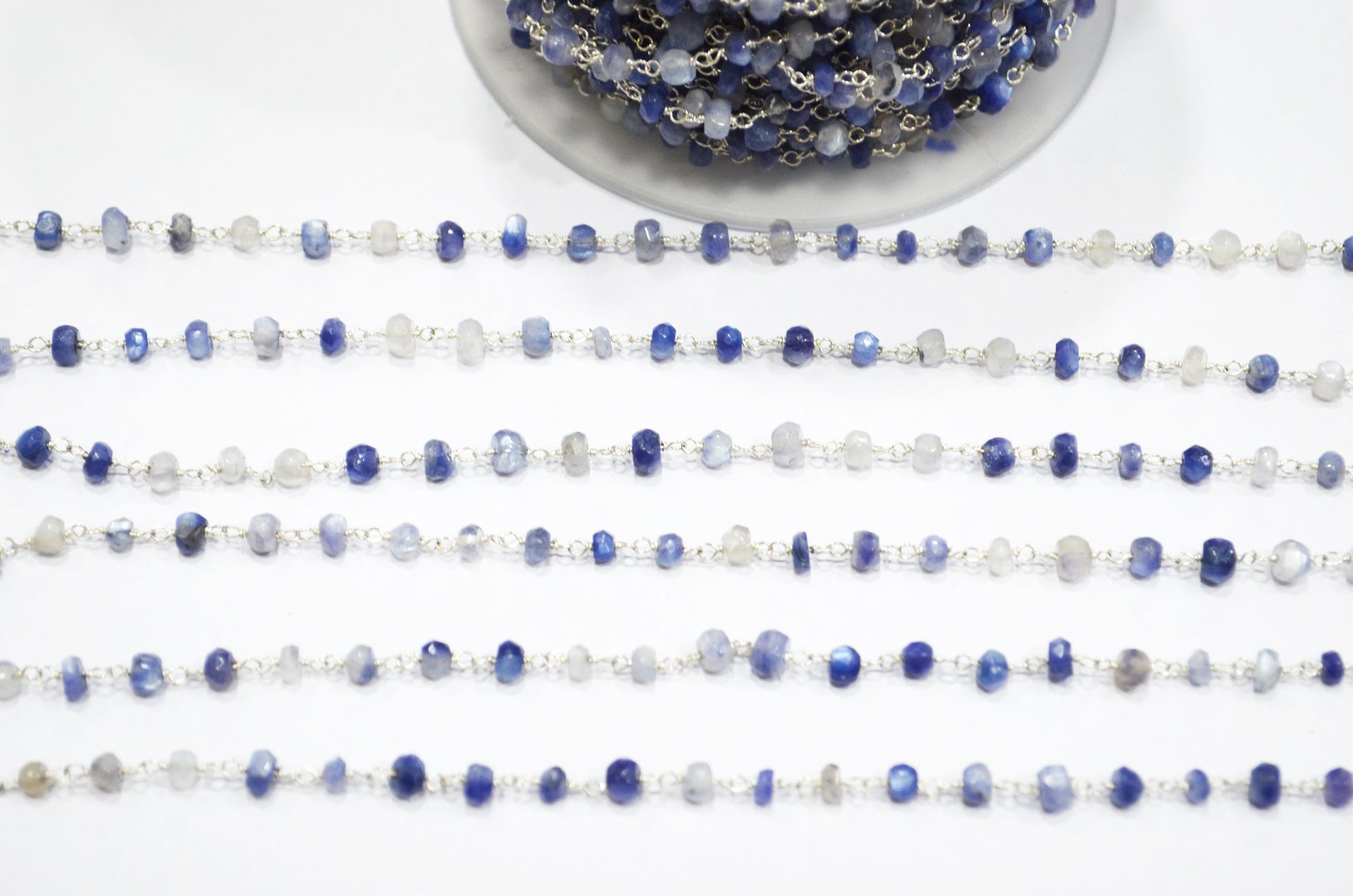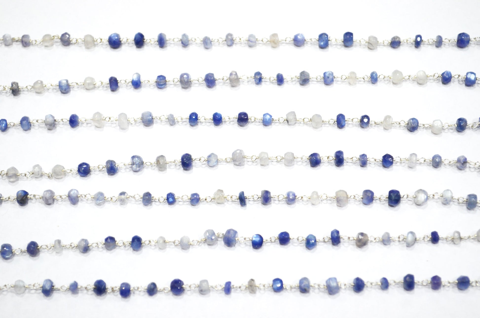 Blue Sapphire Colored Moonstone Faceted Rondelle Shape Chain , Shaded Sapphire Moonstone Wire Wrapped Chain , 4 - 4.50 mm , RB-6023