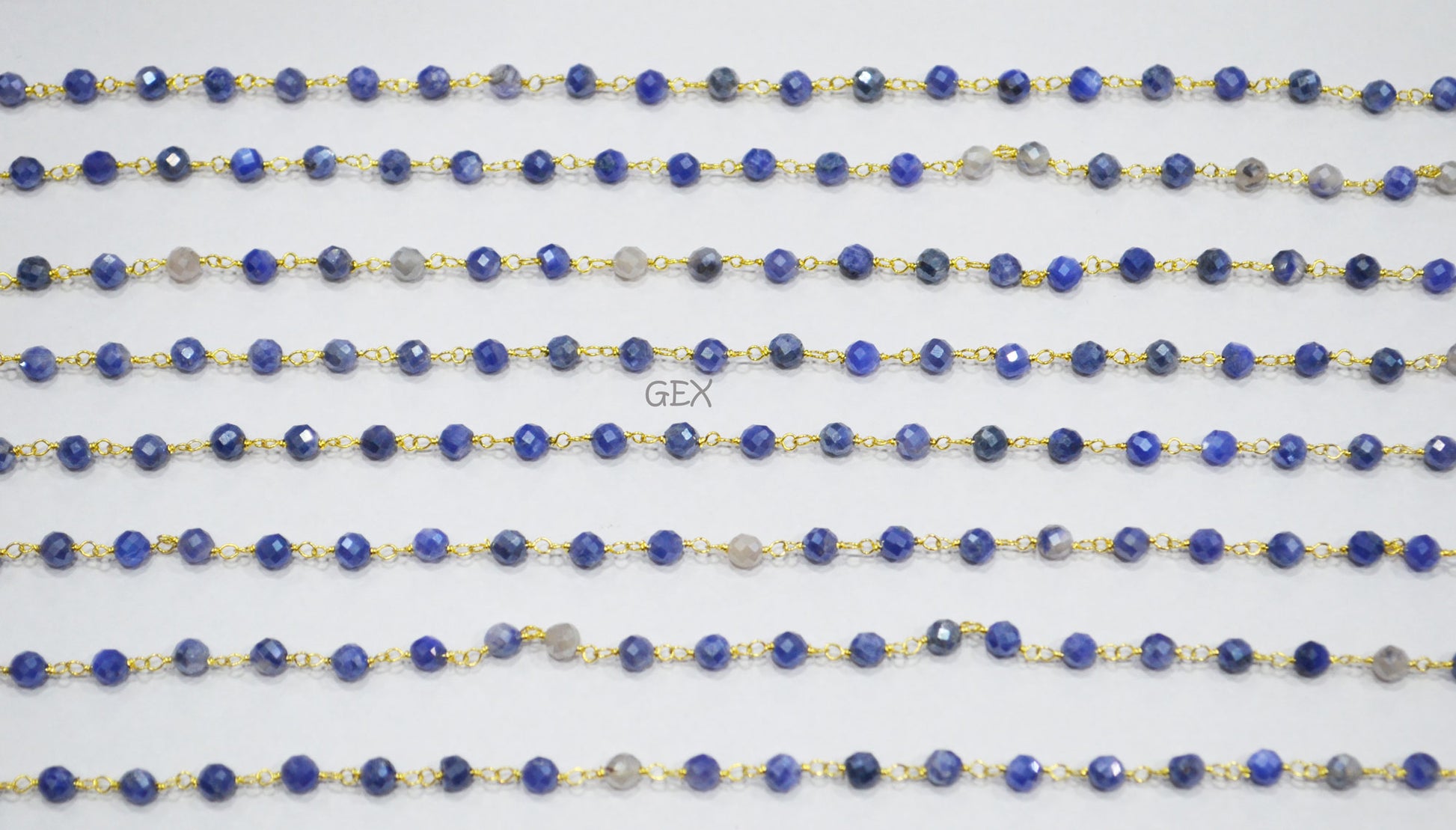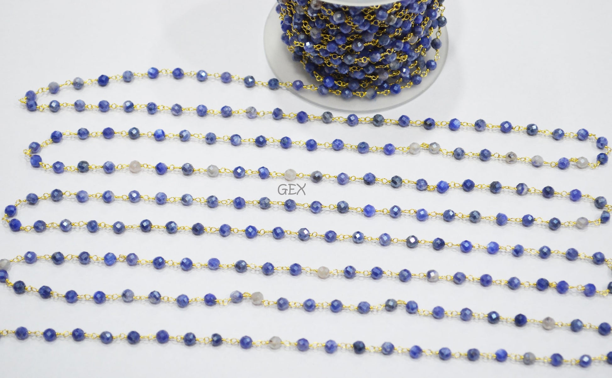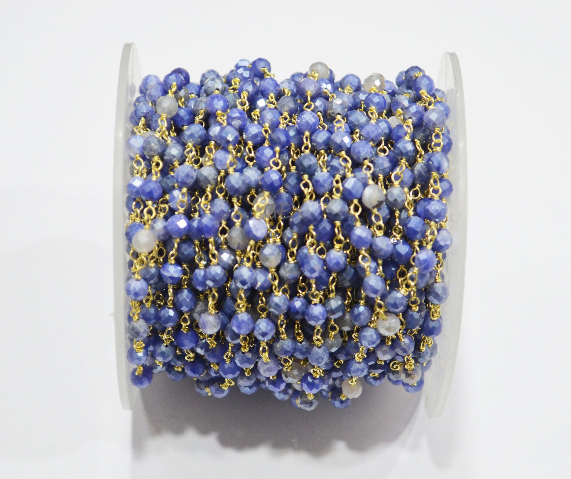 Blue Sapphire Colored Moonstone Faceted Round Shape Rosary Beaded Chain , Blue Sapphire Colored Moonstone Wire Wrapped Chain , 4 mm , RB-7164