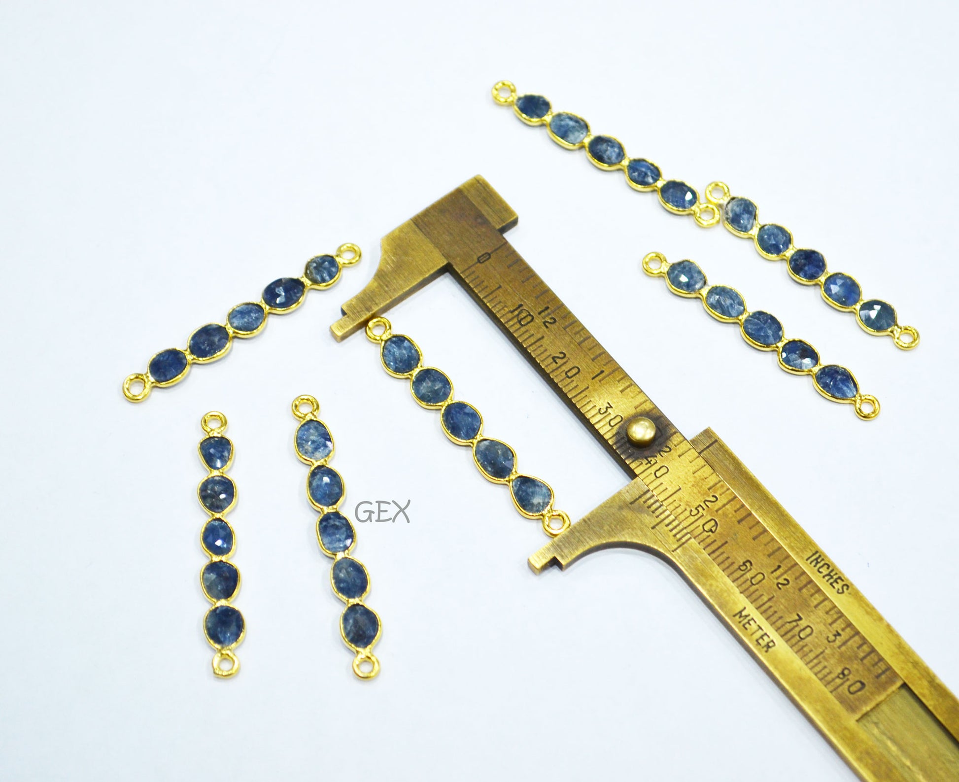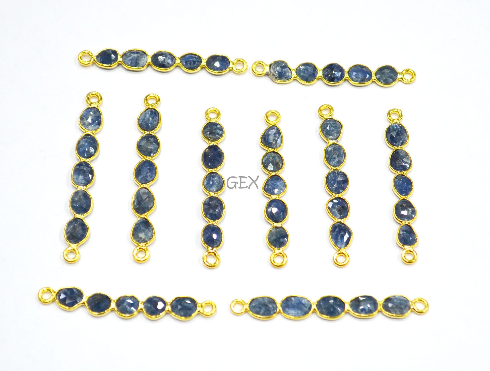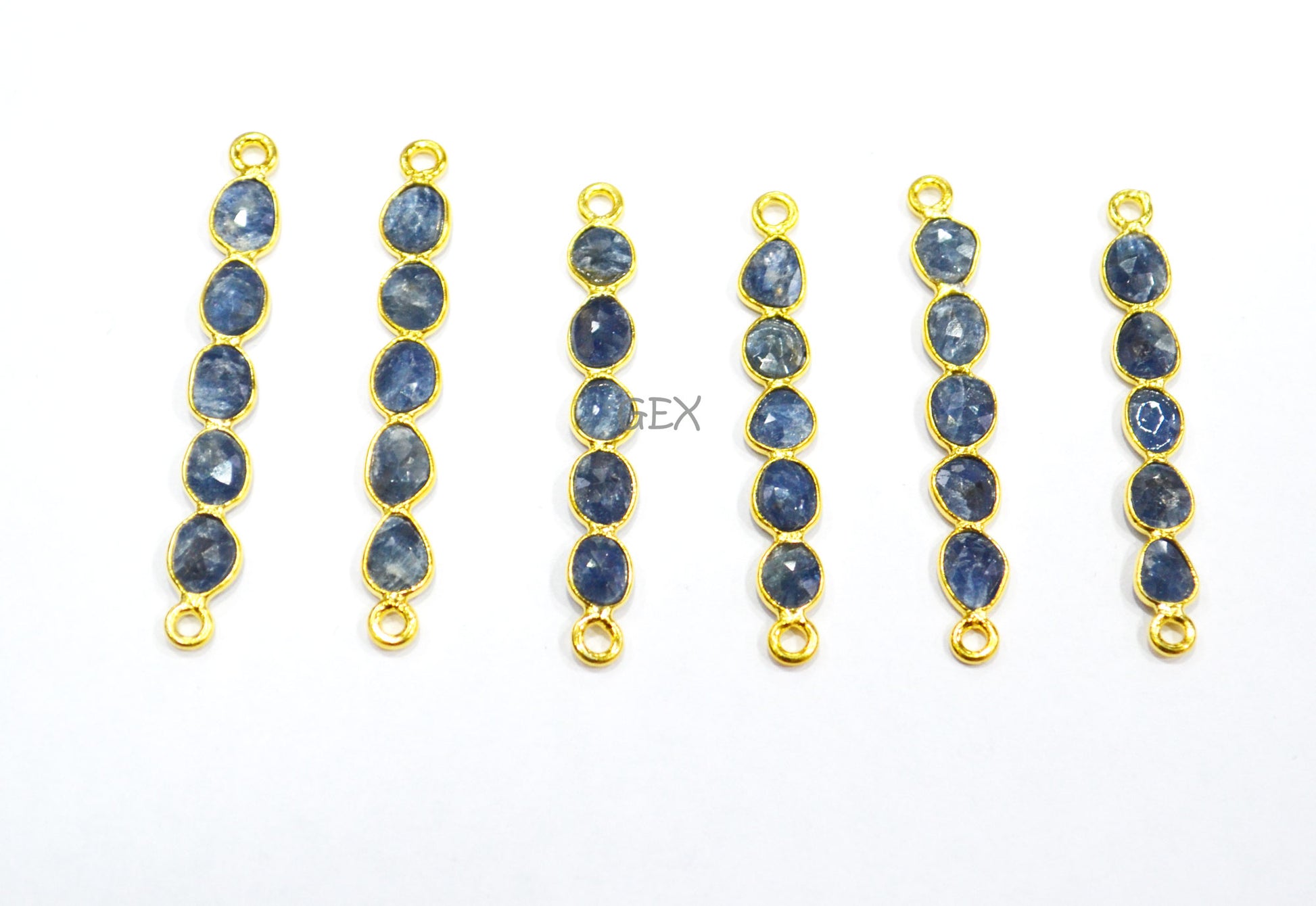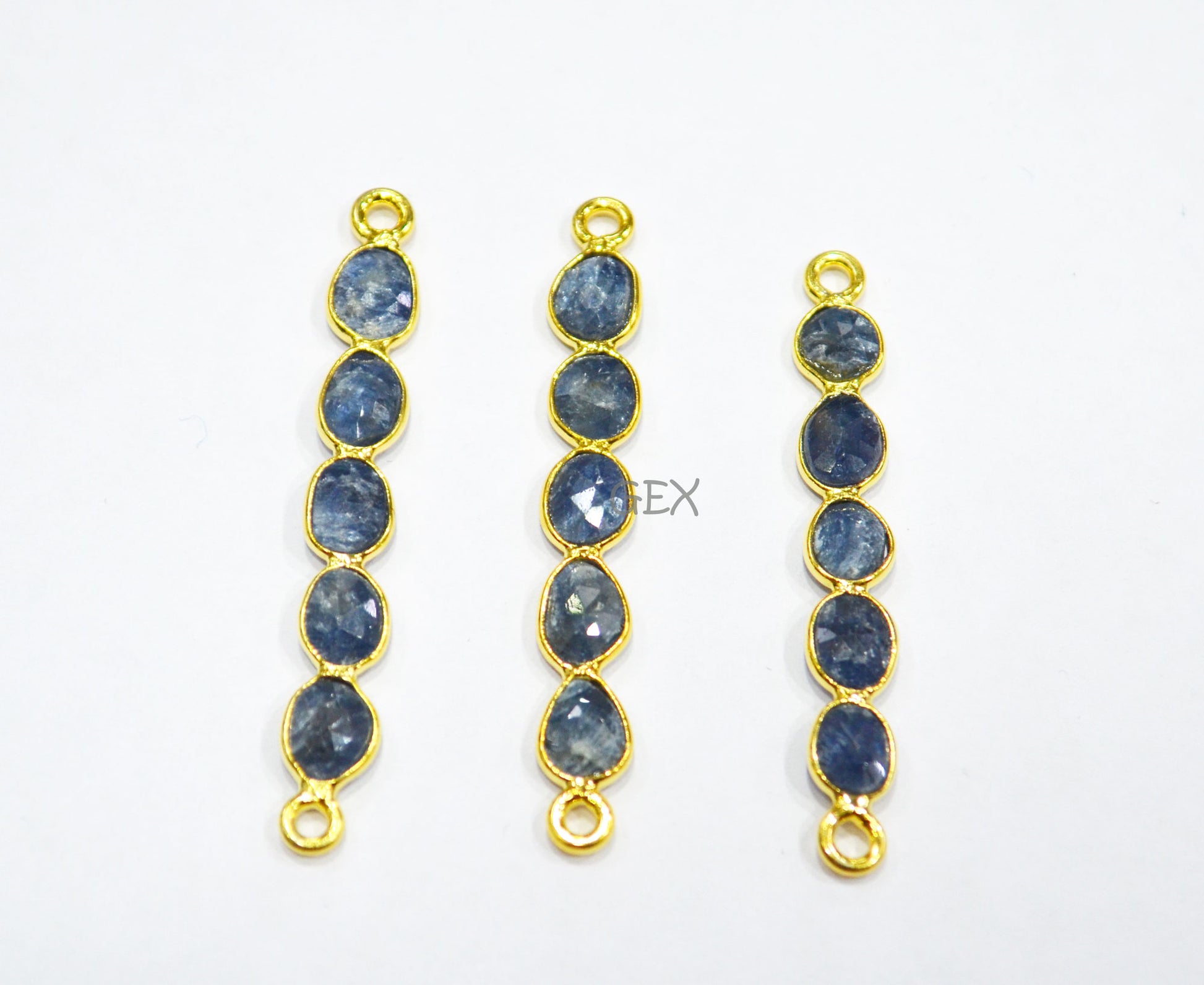 Blue Sapphire Faceted Bar Connector , Blue Sapphire Double Bail Bezel Charm Connector , Sold By Piece , 39 - 45 mm , R-003