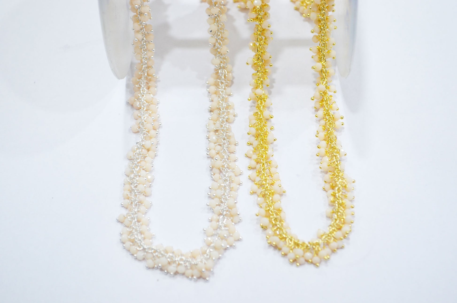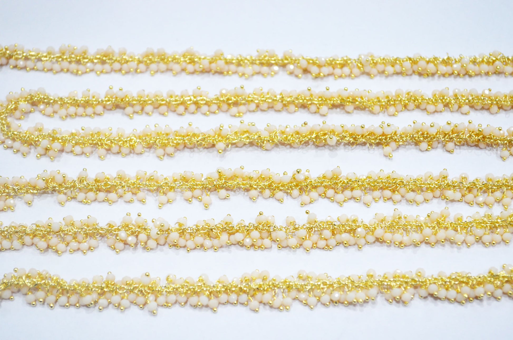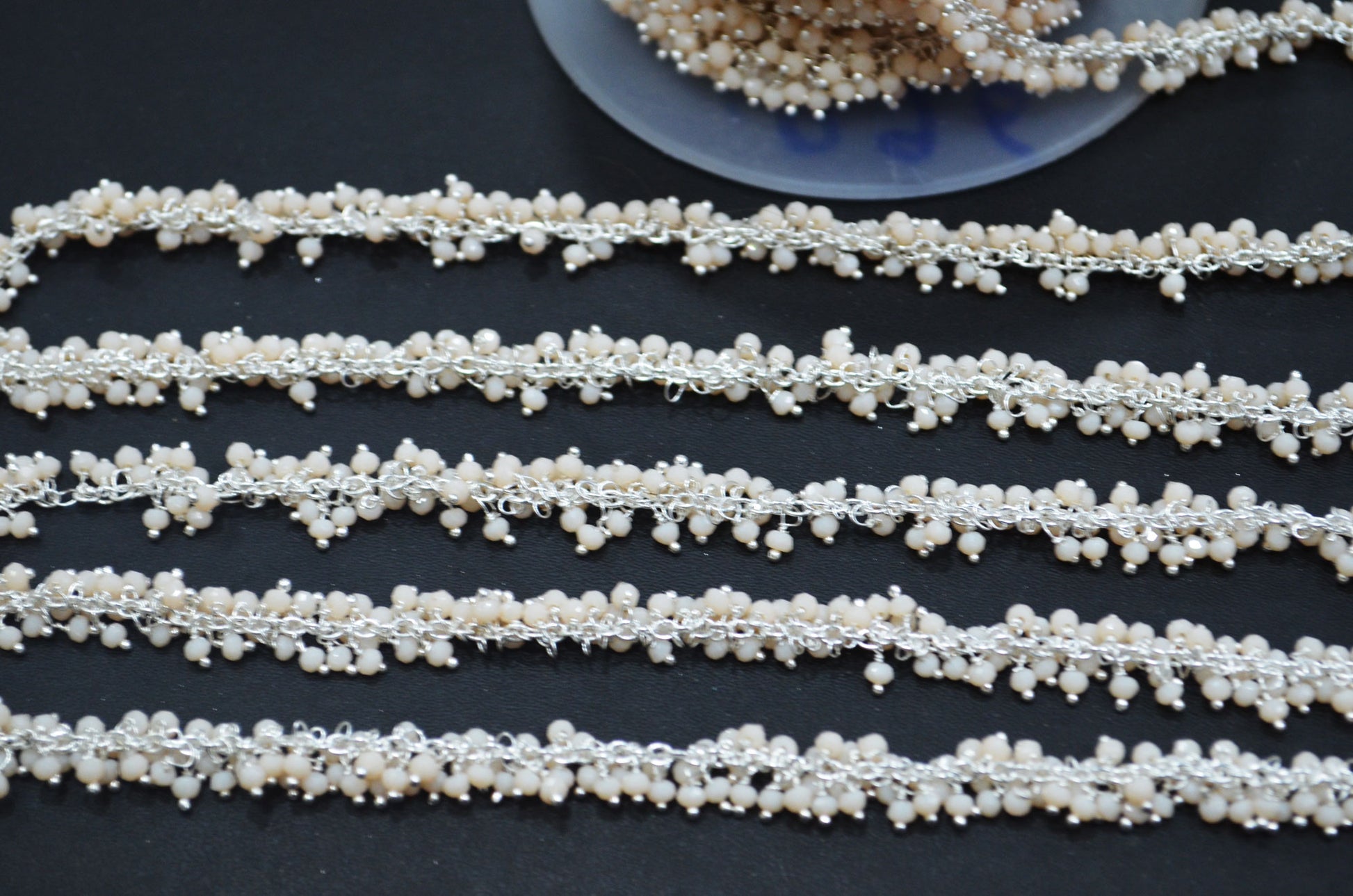 Bone Chalcedony Hydro Quartz Faceted Rondelle Shape Grape Chain , Bone Chalcedony Hydro Quartz Angoori Cluster Wire Wrapped Chain , 2.50 mm , RB-6391