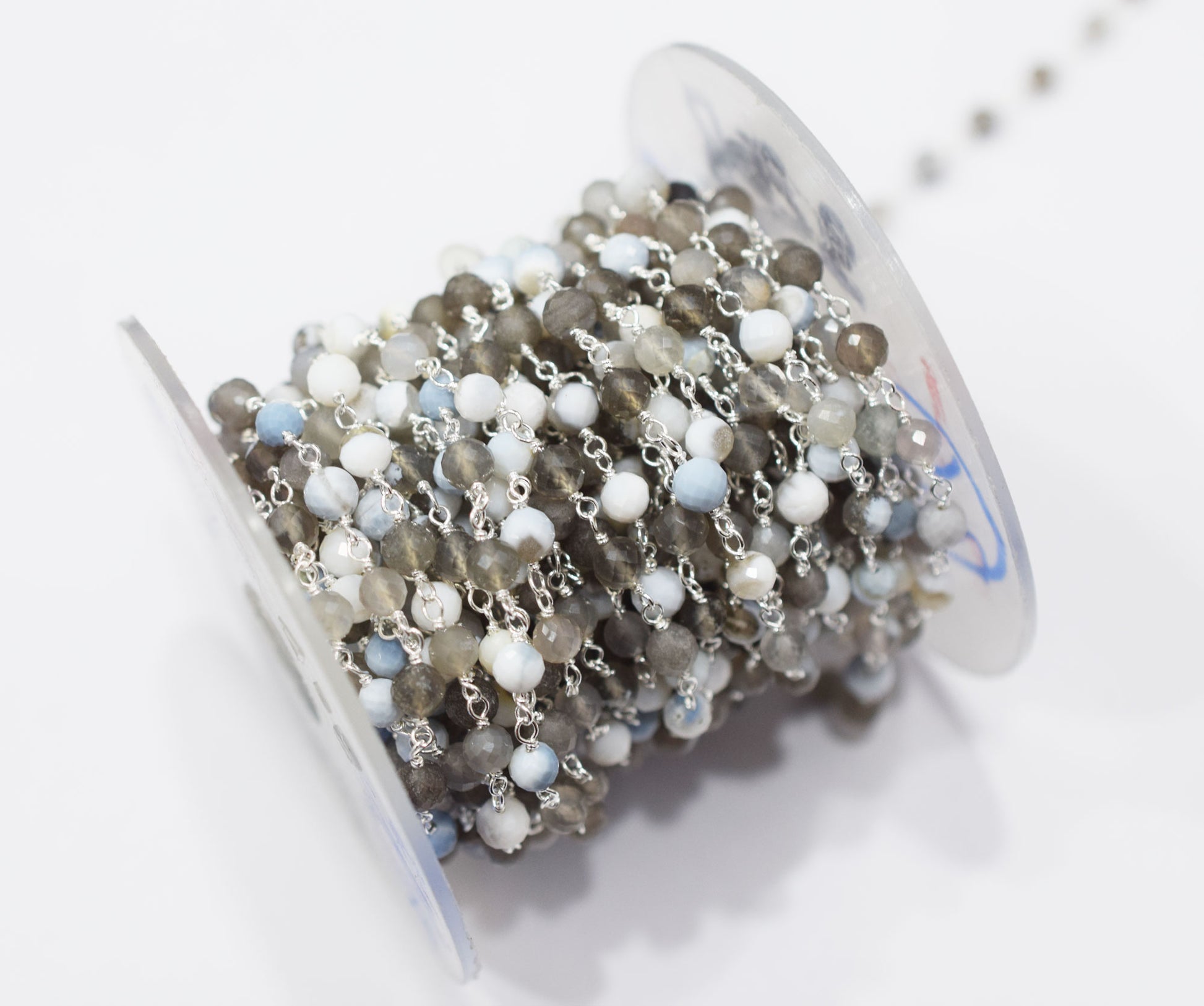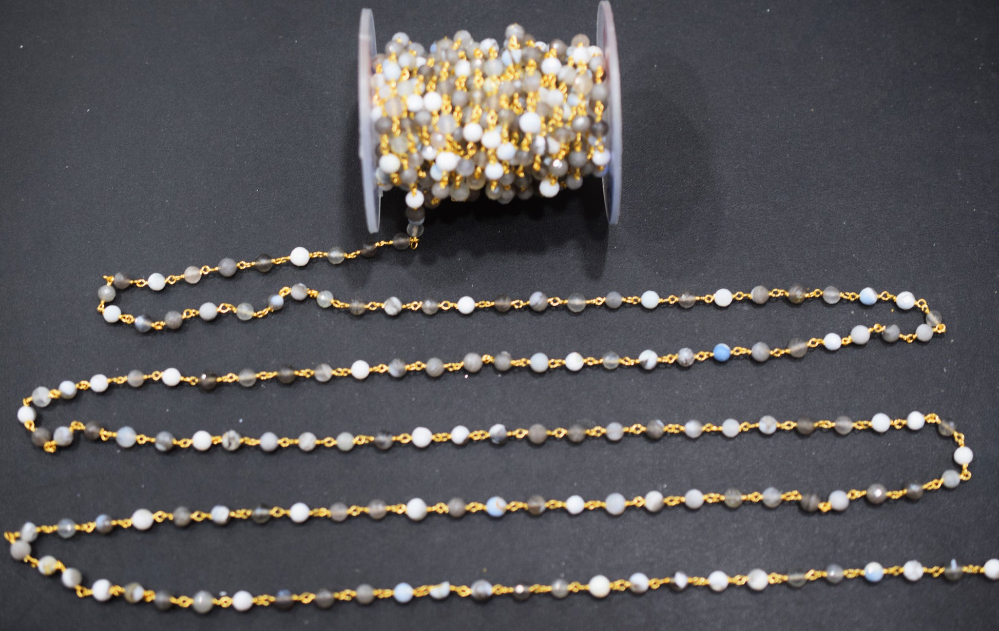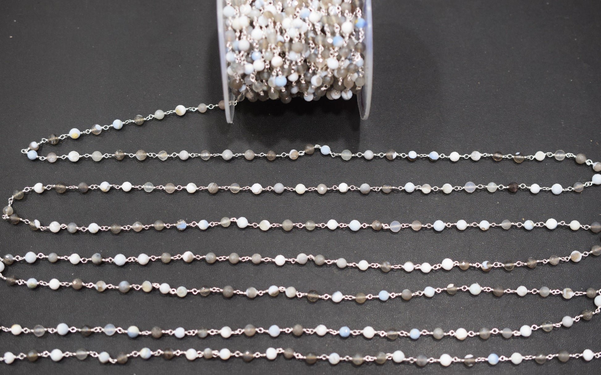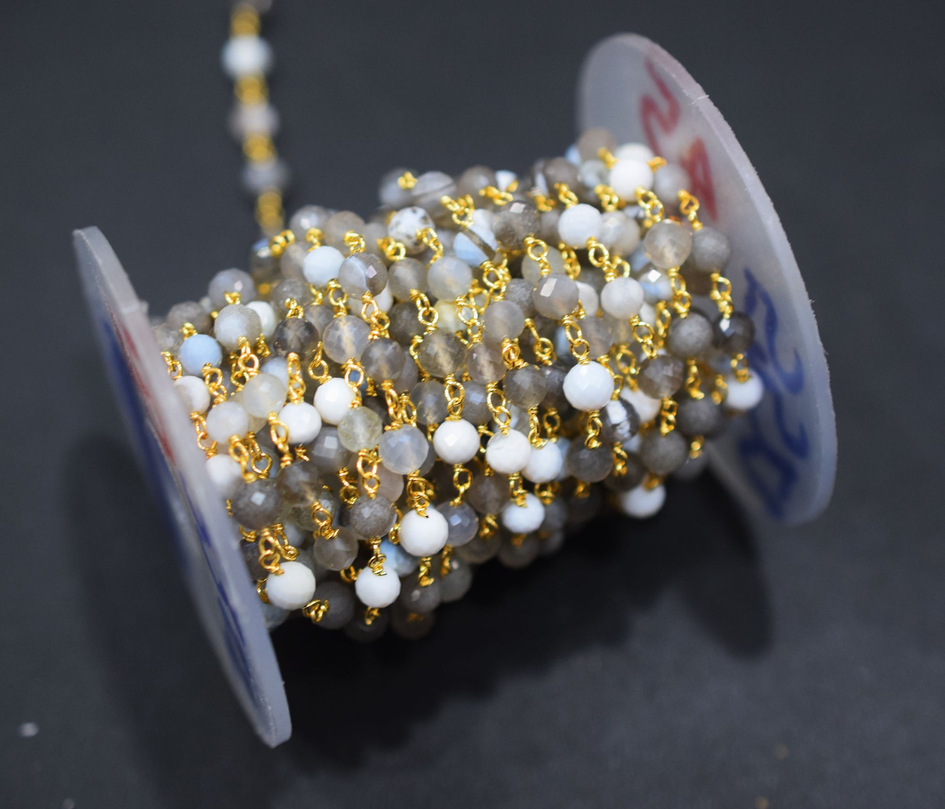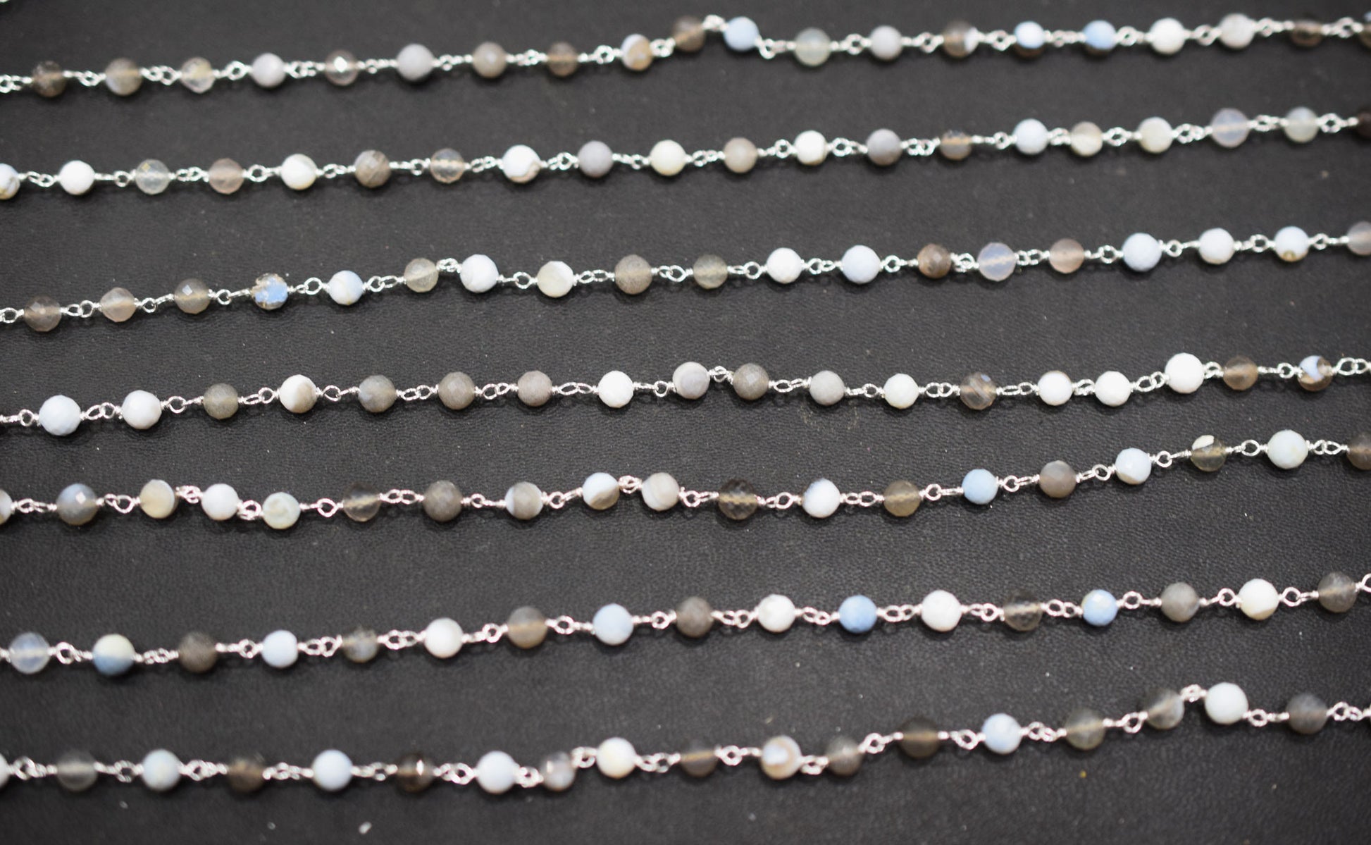 Boulder Opal Faceted Round Shape Rosary Beaded Chain , Boulder Opal Wire Wrapped Chain , 5 mm , RB-6683