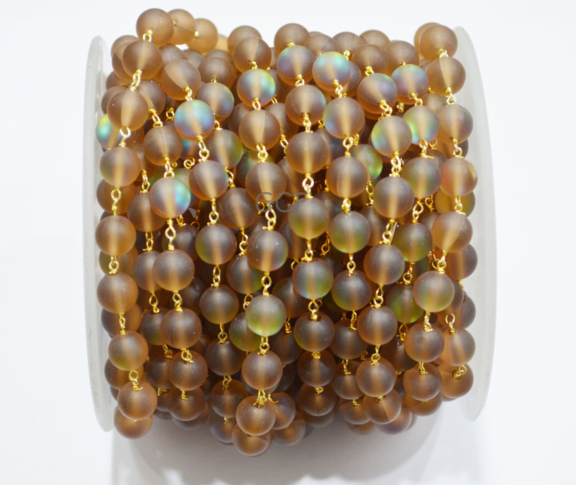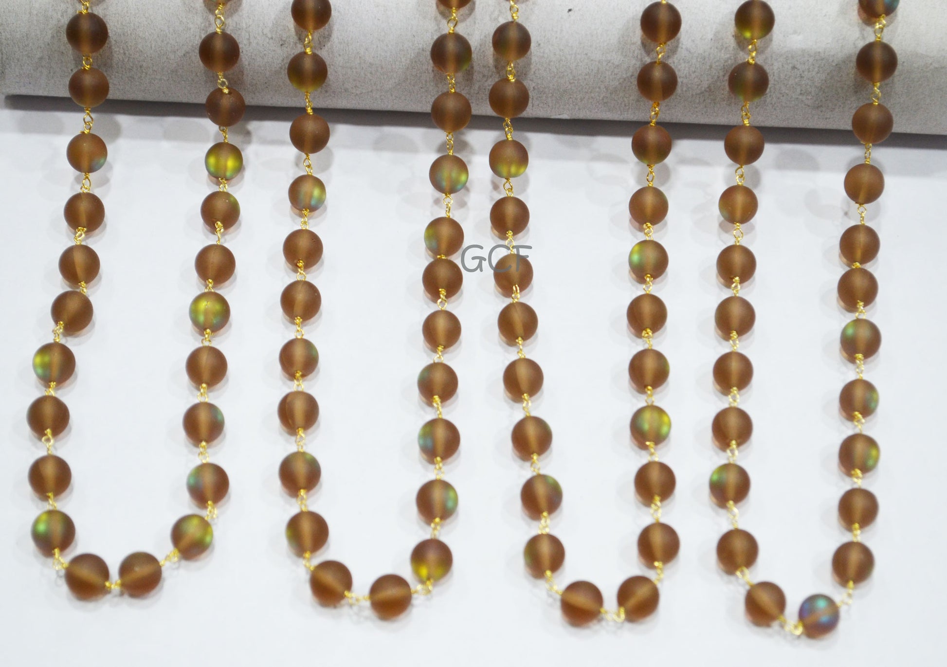 Brown Doublet Hydro Glass Smooth Rosary Beaded Chain , Brown Doublet Hydro Glass Round Shape Wire Wrapped Chain , 8 mm , RB-7117