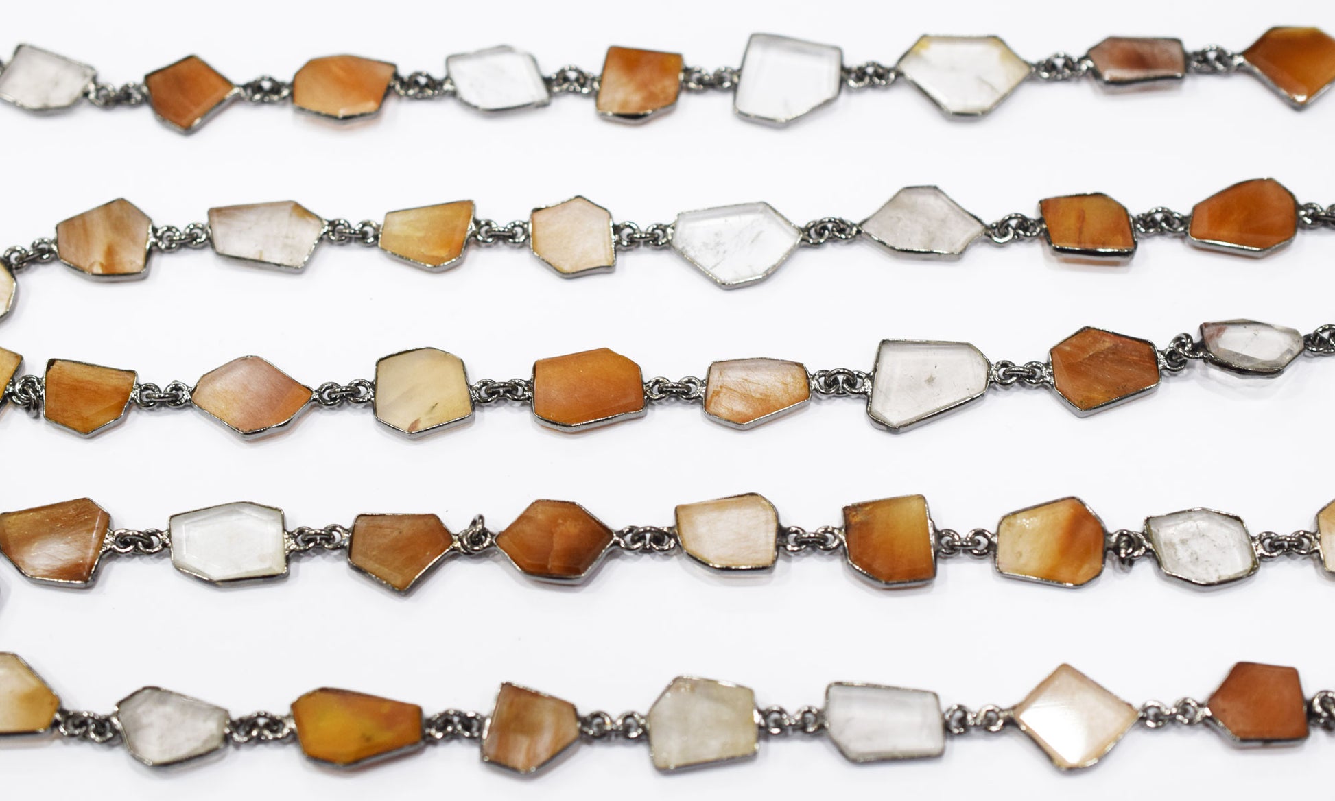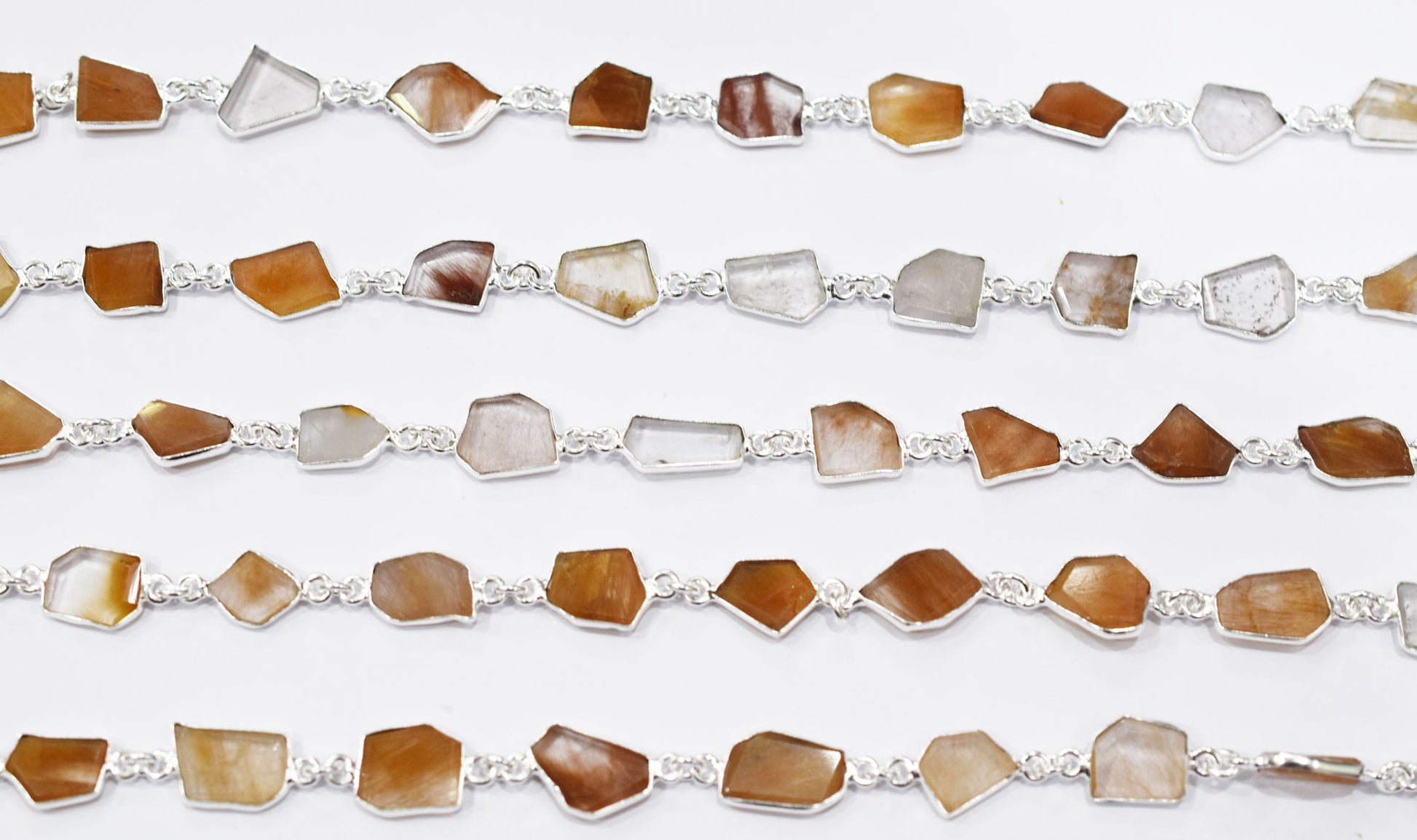 Camel Rutile Fancy Cut Shape Connector Chain , 7x9 - 13x15 mm , RB-6680