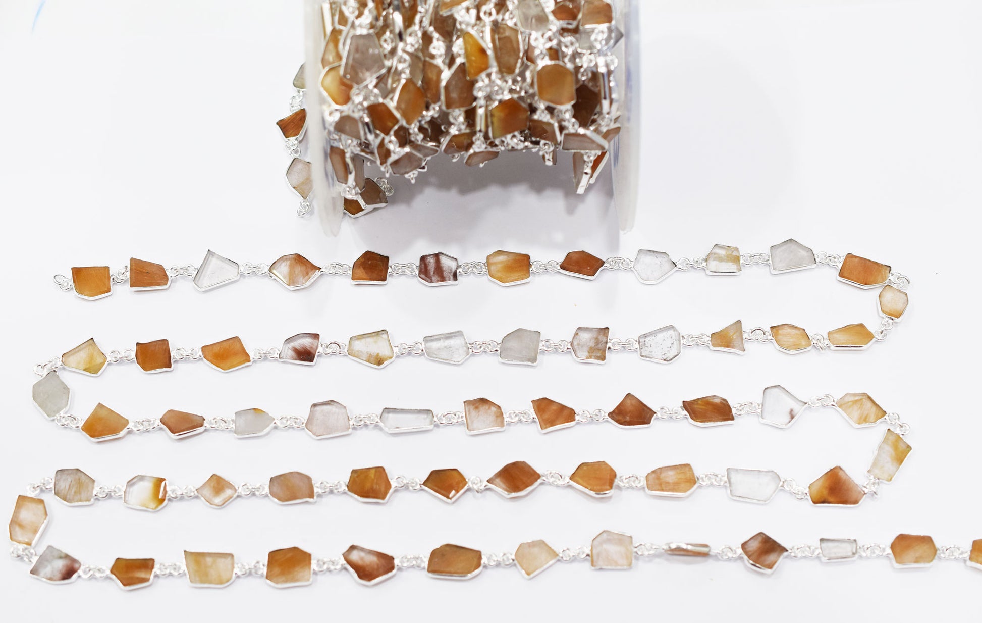 Camel Rutile Fancy Cut Shape Connector Chain , Camel Rutile Bezel Link Chain , 7x9 - 13x15 mm , RB-6680