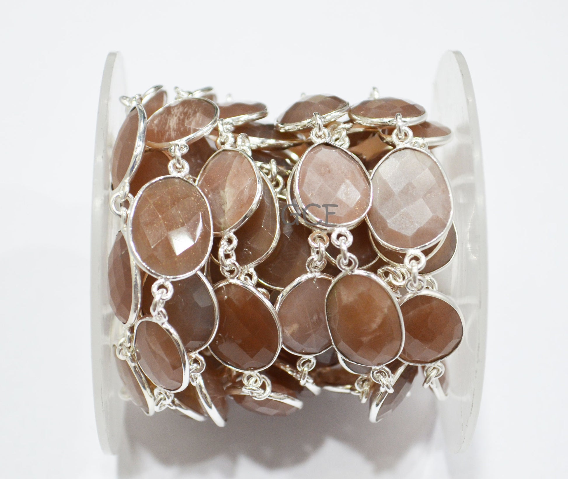 Caramel Moonstone Faceted Free Form Shape Connector Chain , Caramel Moonstone Slice Shape Bezel Link Chain , 13x15 - 15x18 mm , RB-7043