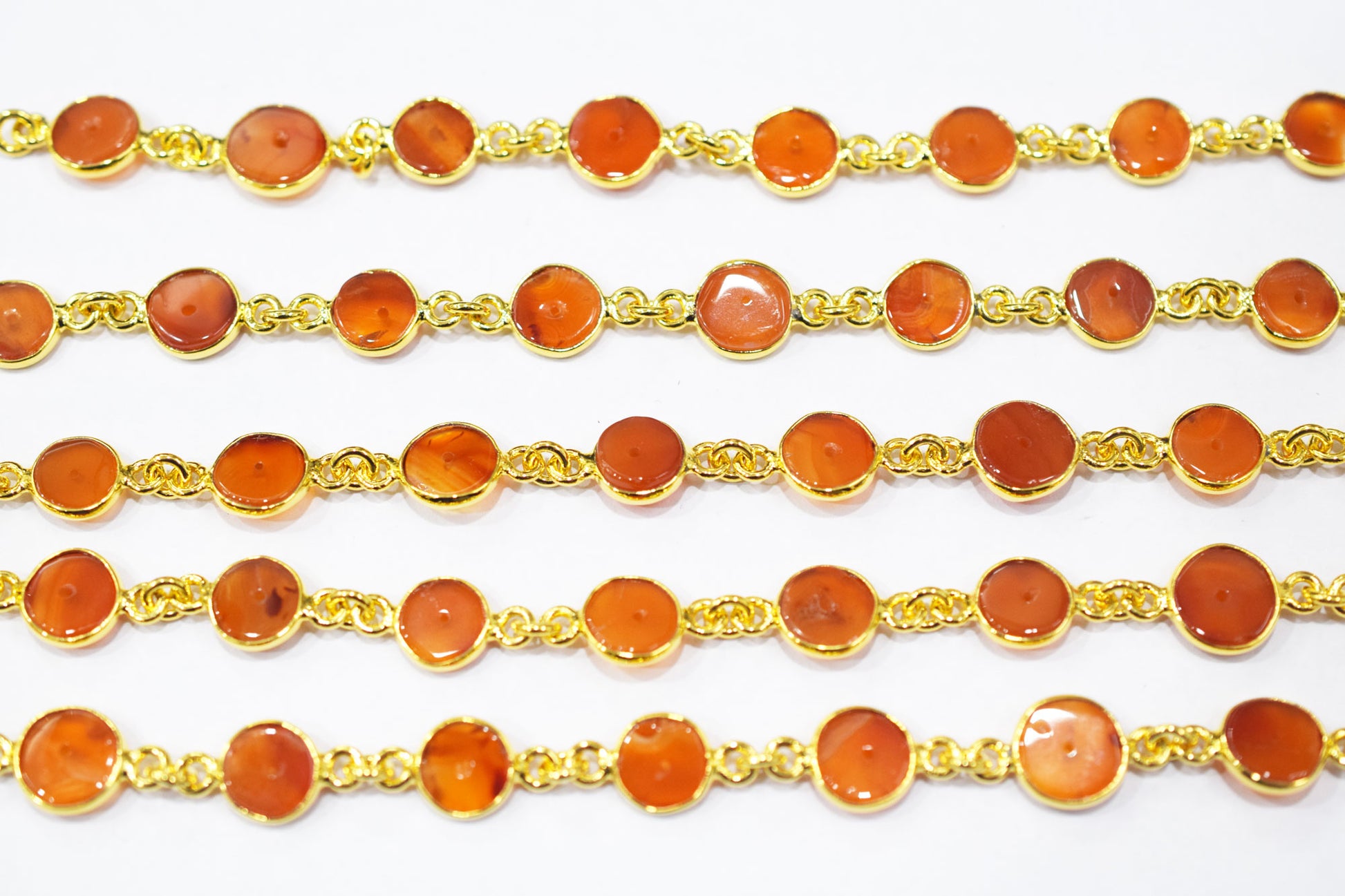 Carnelian Smooth Donut Shape Connector Chain , Carnelian Bezel Link Chain , 9 - 9.50 mm , RB-6462