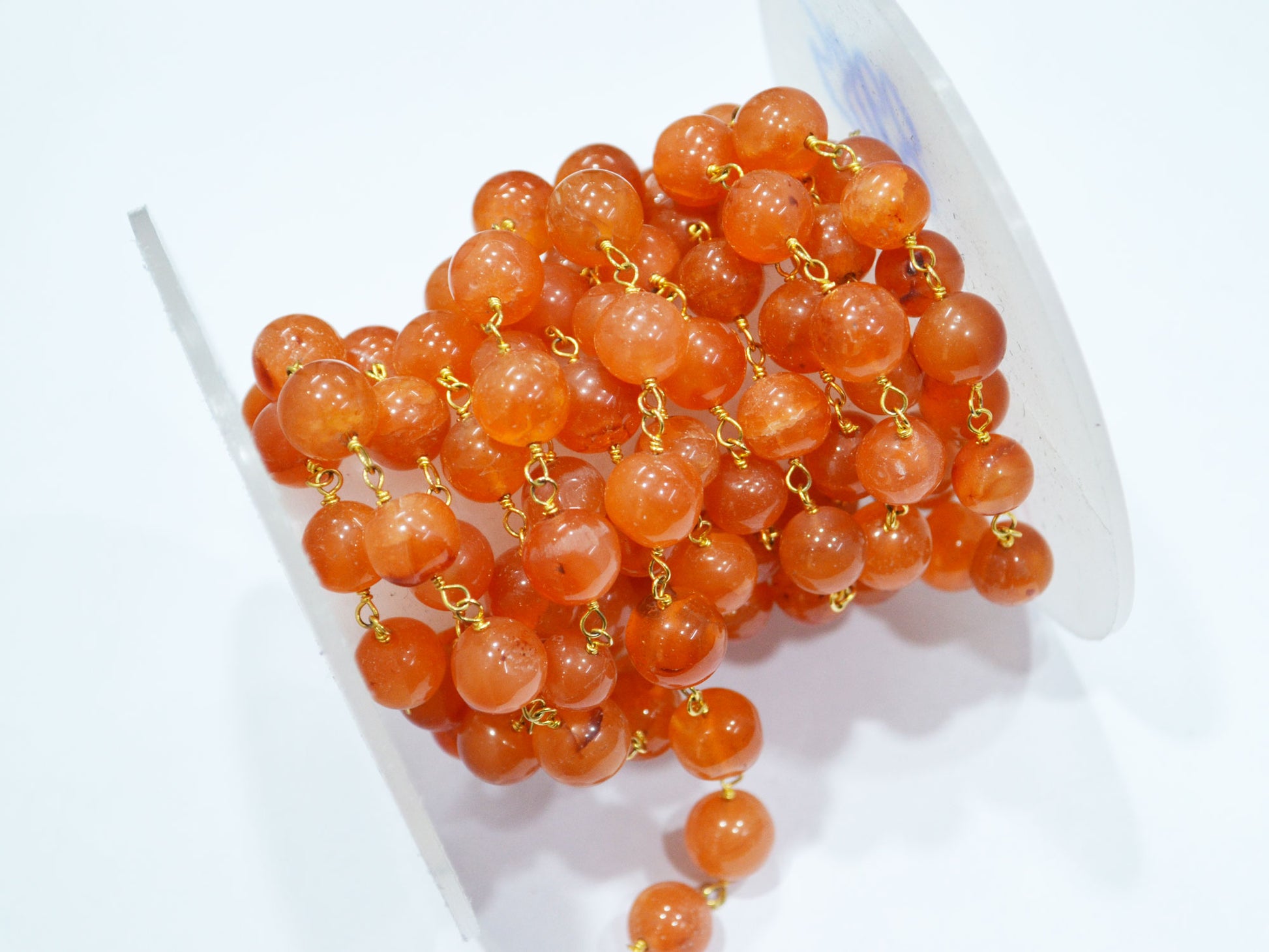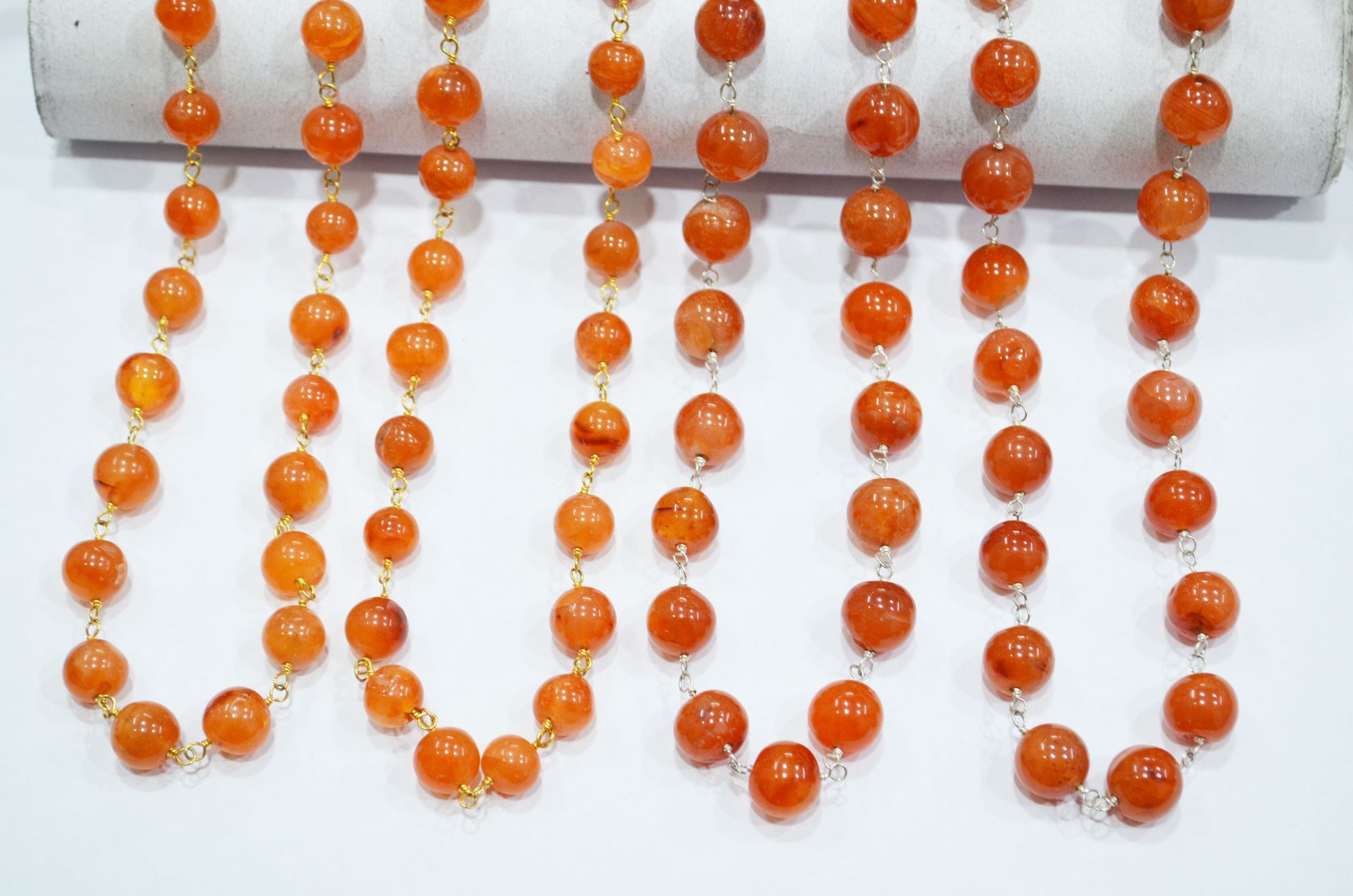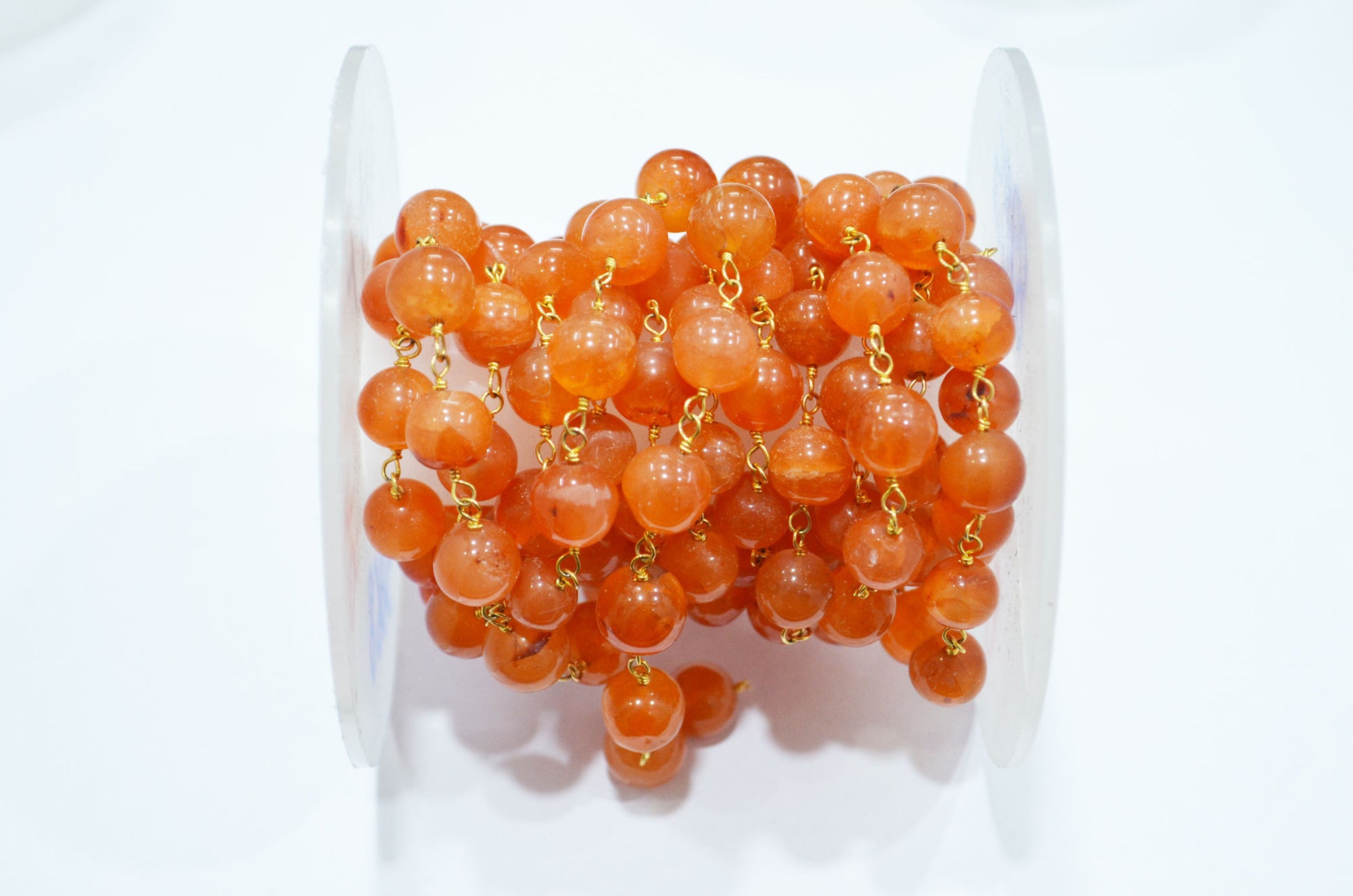 Carnelian Smooth Round Shape Rosary Beaded Chain , Carnelian Round Shape Wire Wrapped Chain , 9.50 - 10.50 mm , RB-5868
