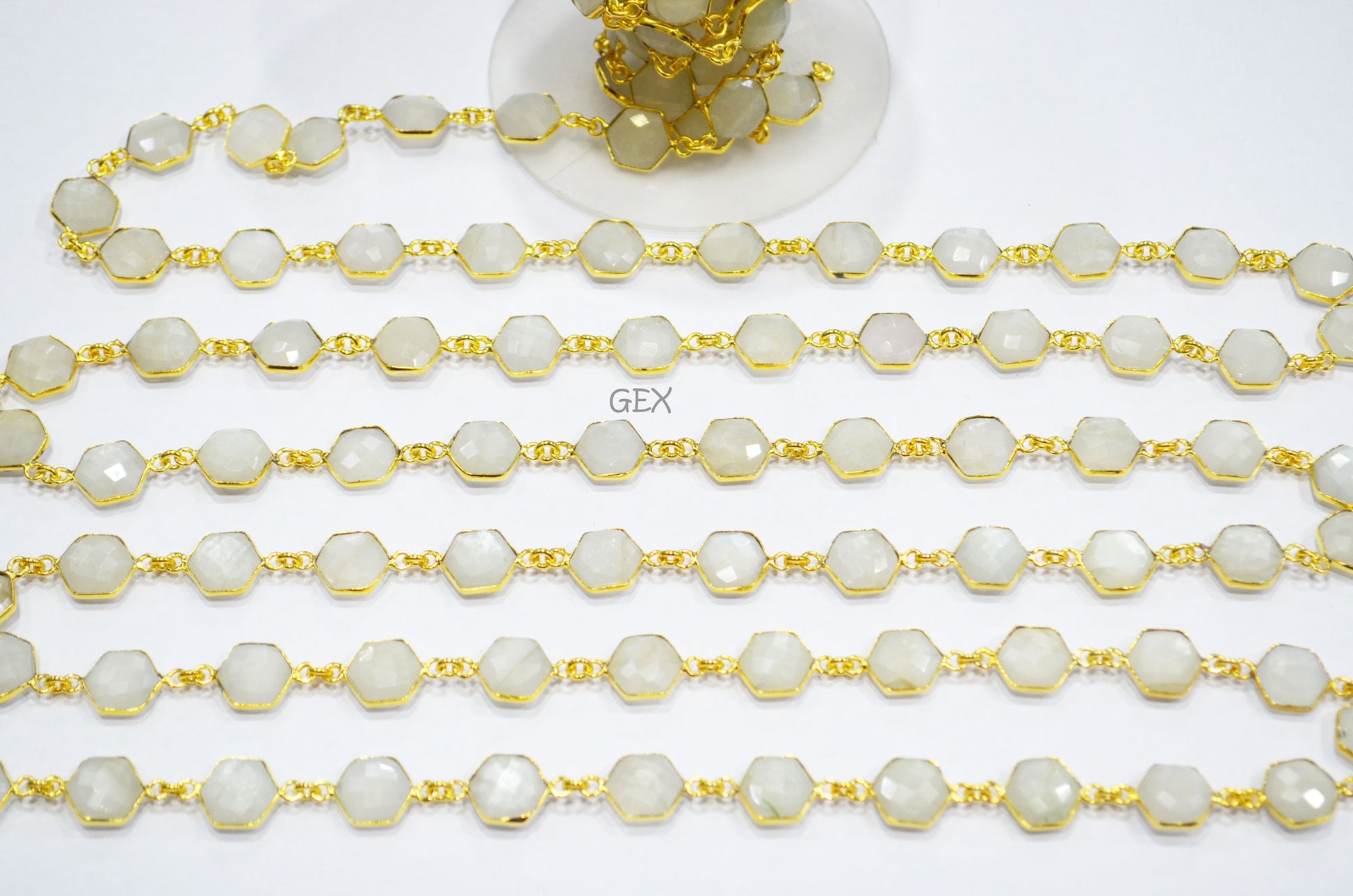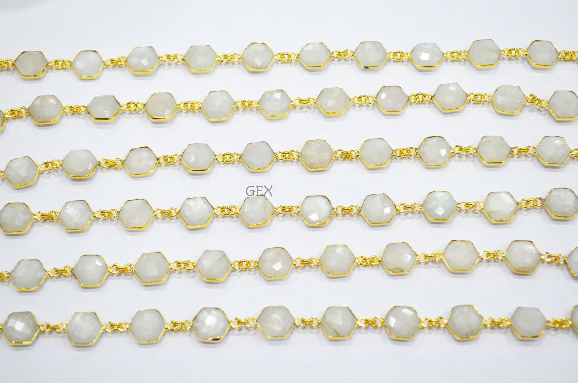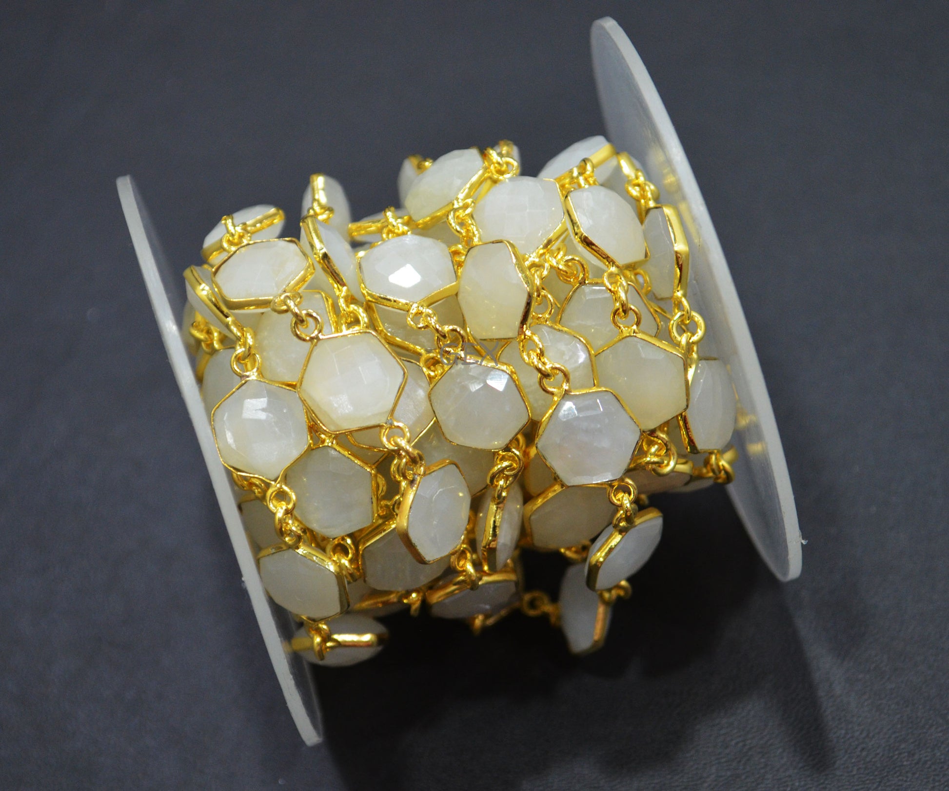 Ceylon Moonstone Faceted Hexagon Shape Connector Chain , Ceylon Moonstone Hexagon Shape Bezel Link Chain , 10 - 11 mm , RB-7212