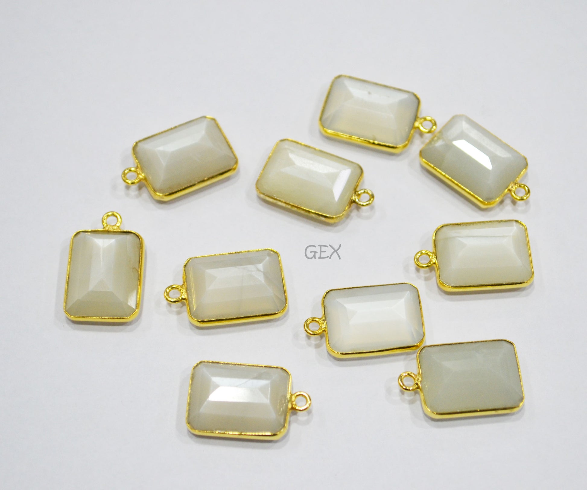 Ceylon Moonstone Faceted Rectangle Shape Connector , Sold By Piece , 13x17 mm , RB-7130