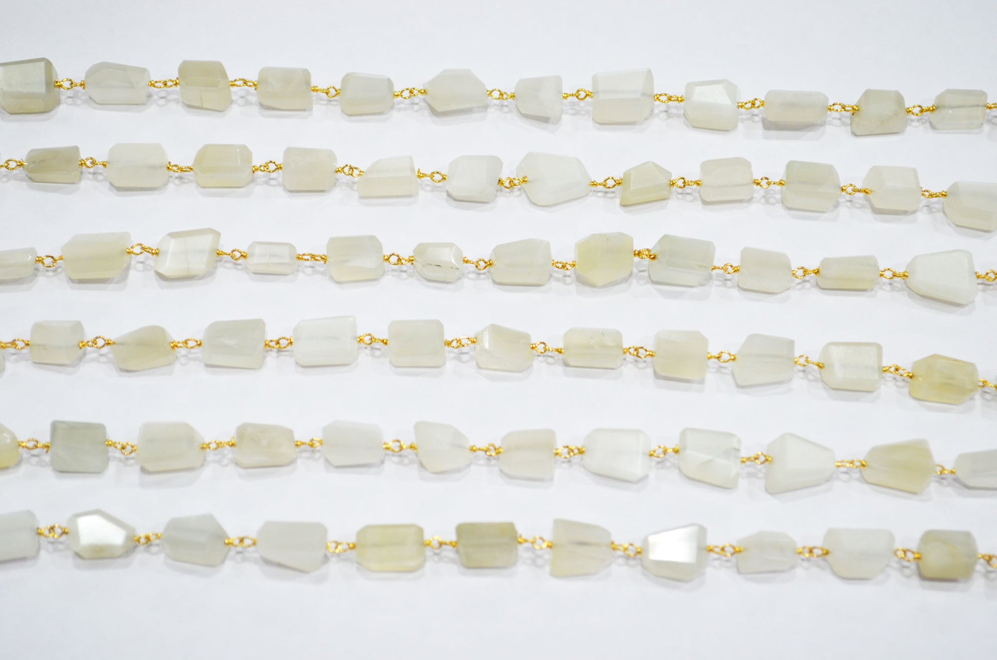 Ceylon Moonstone Laser Cut Nuggets Shape Rosary Beaded Chain , Ceylon Moonstone Wire Wrapped Chain , 7 - 12 mm , RB-7385