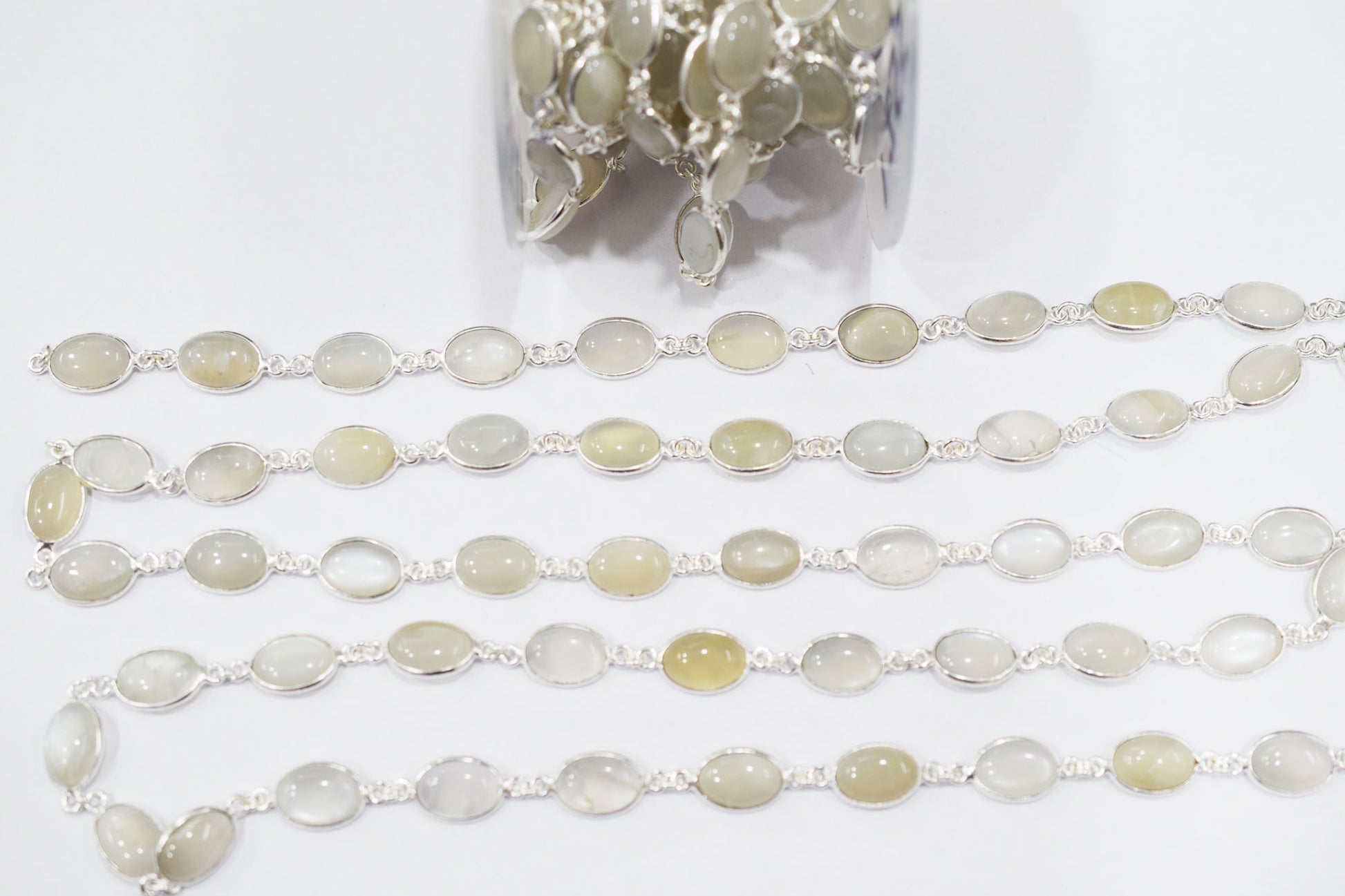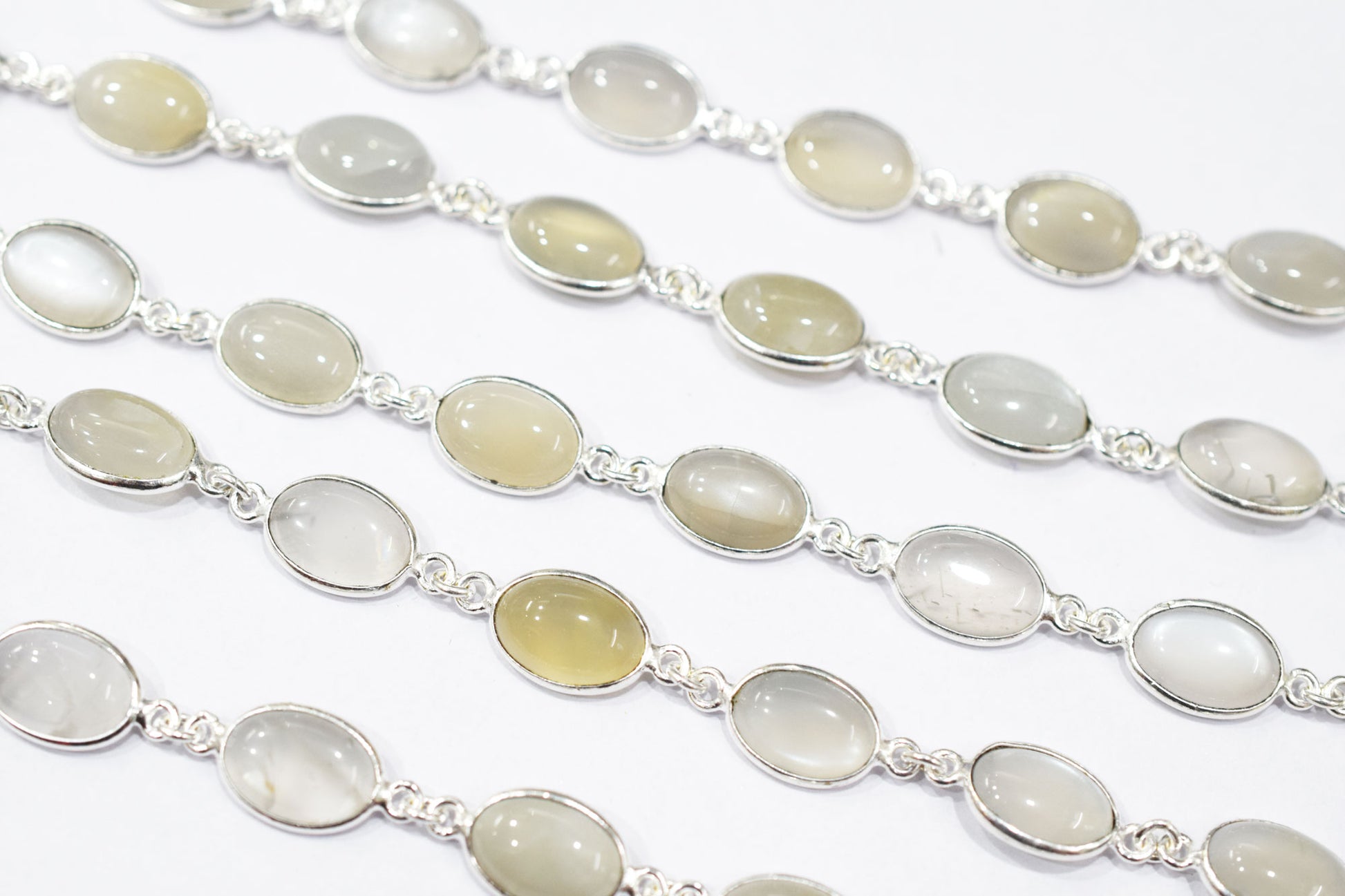 Ceylon Moonstone Smooth Oval Shape Connector Chain , Ceylon Moonstone Cabochon Shape Bezel Link Chain , 14 mm , RB-6540