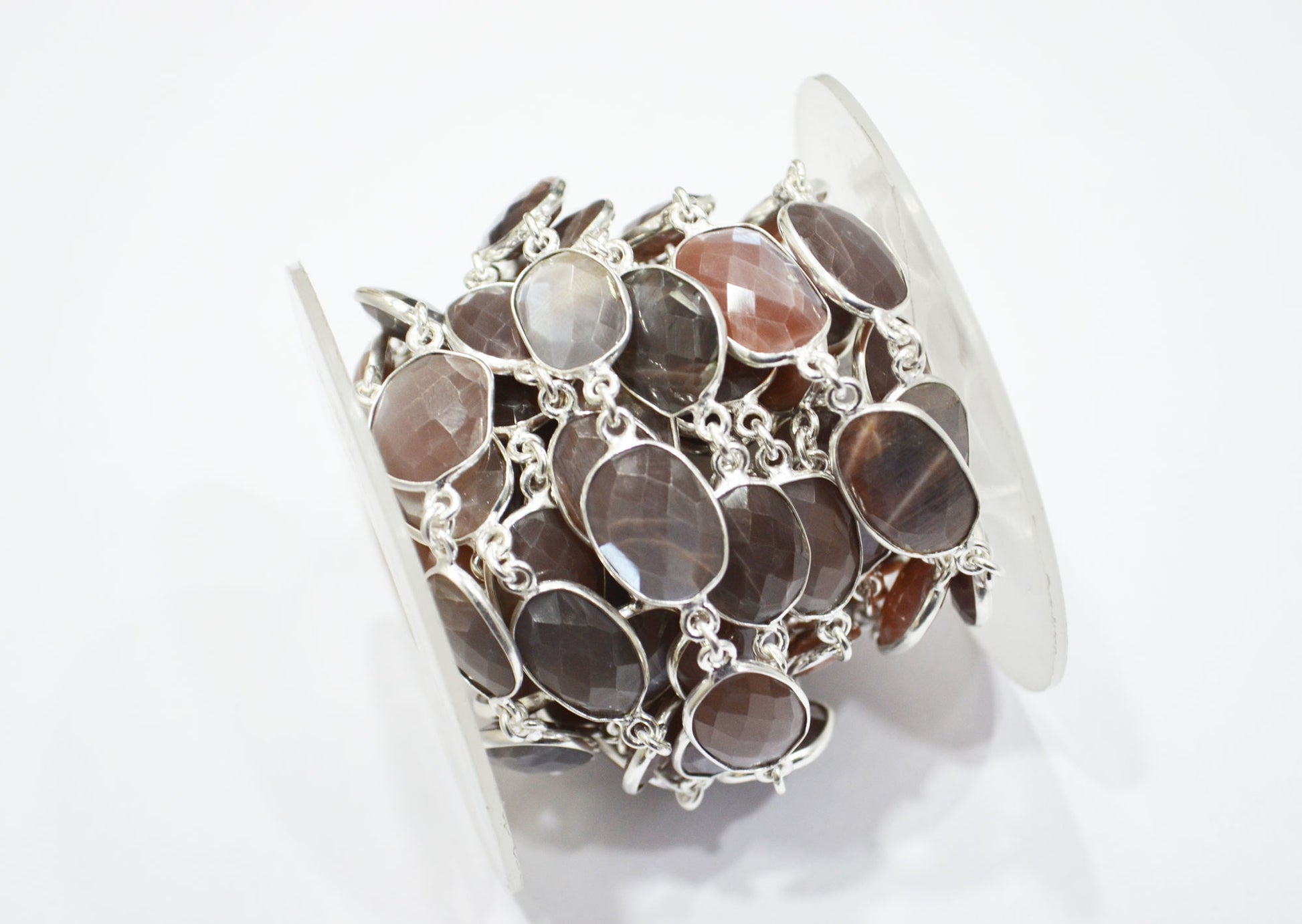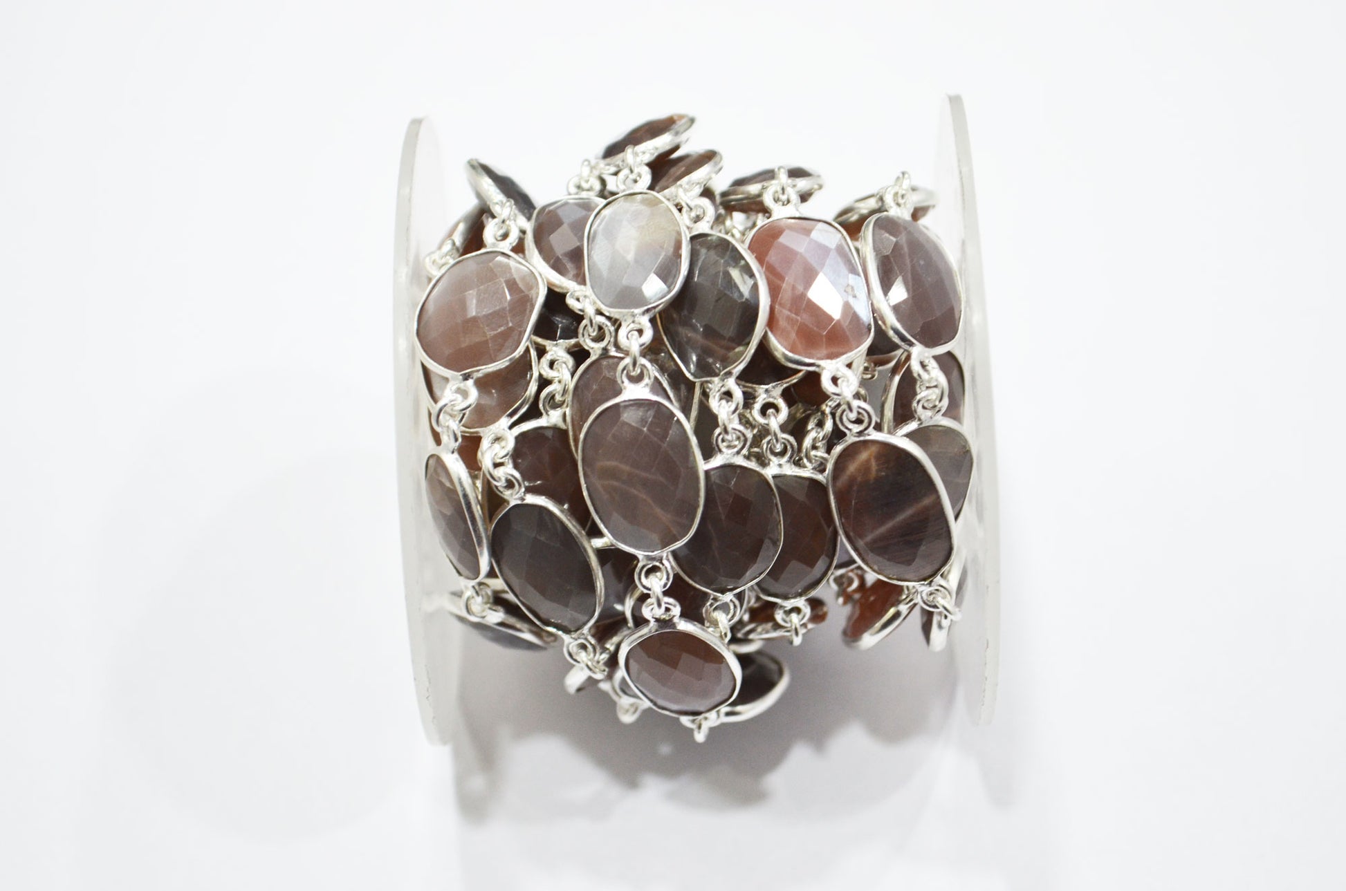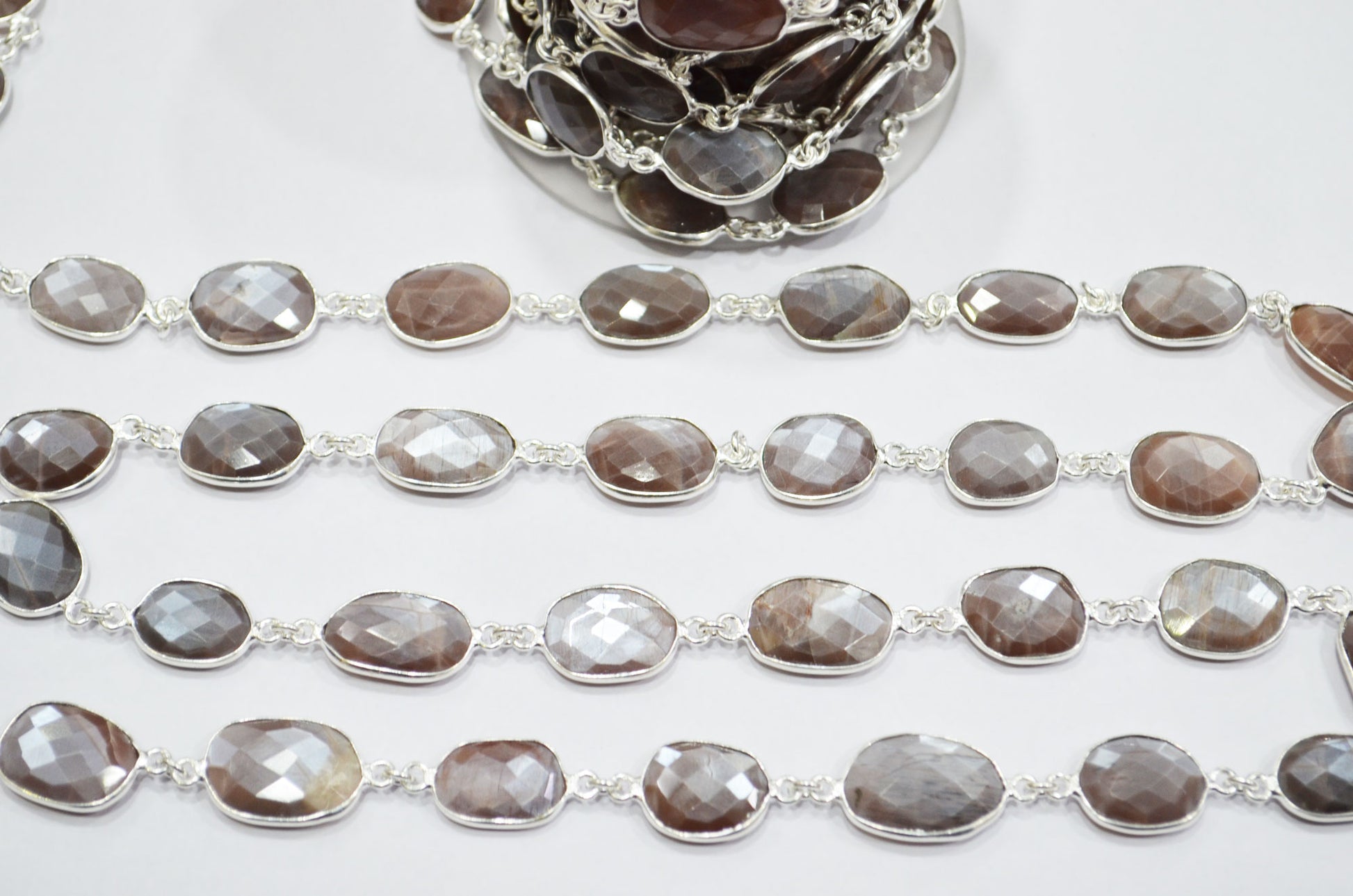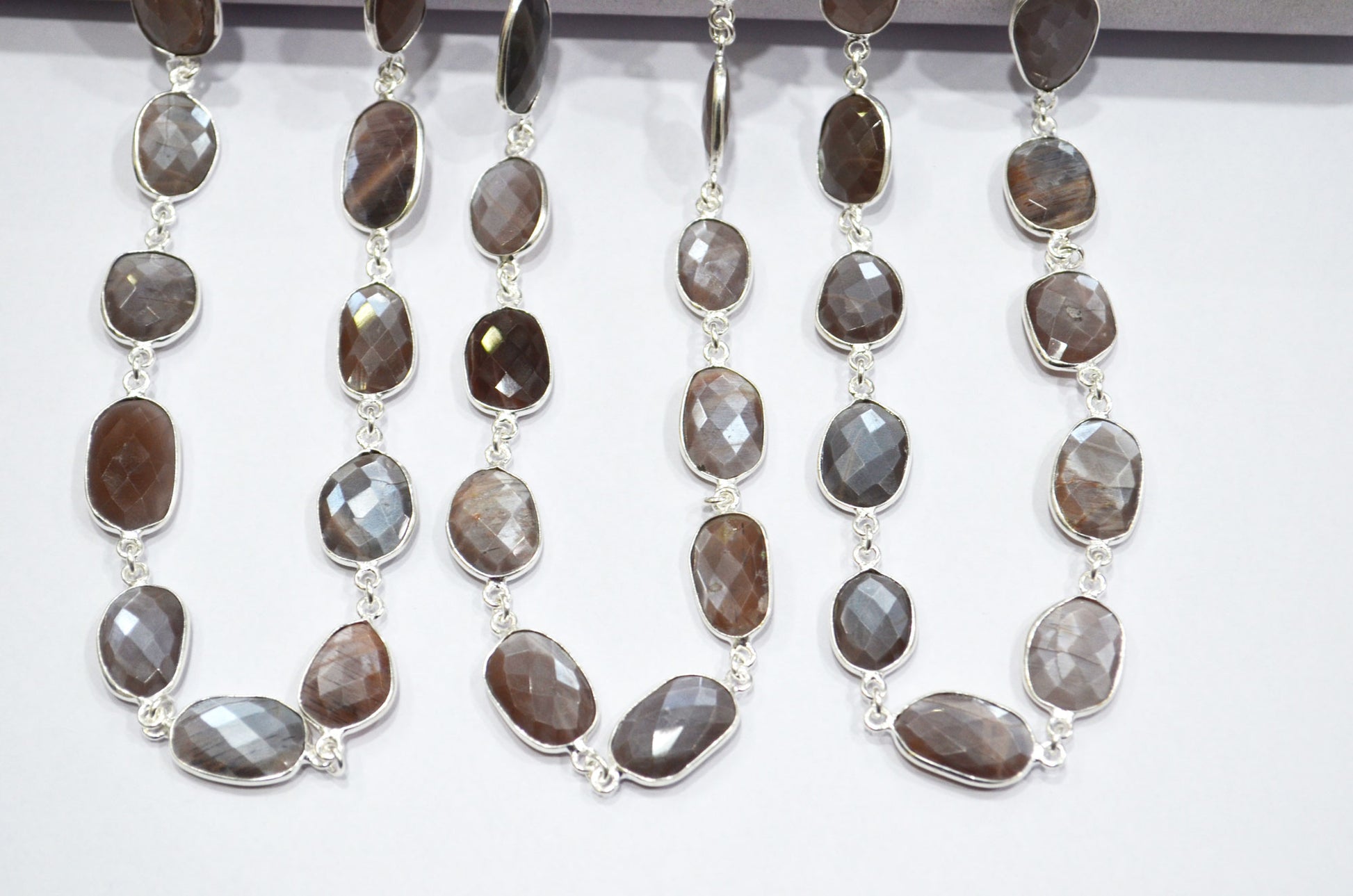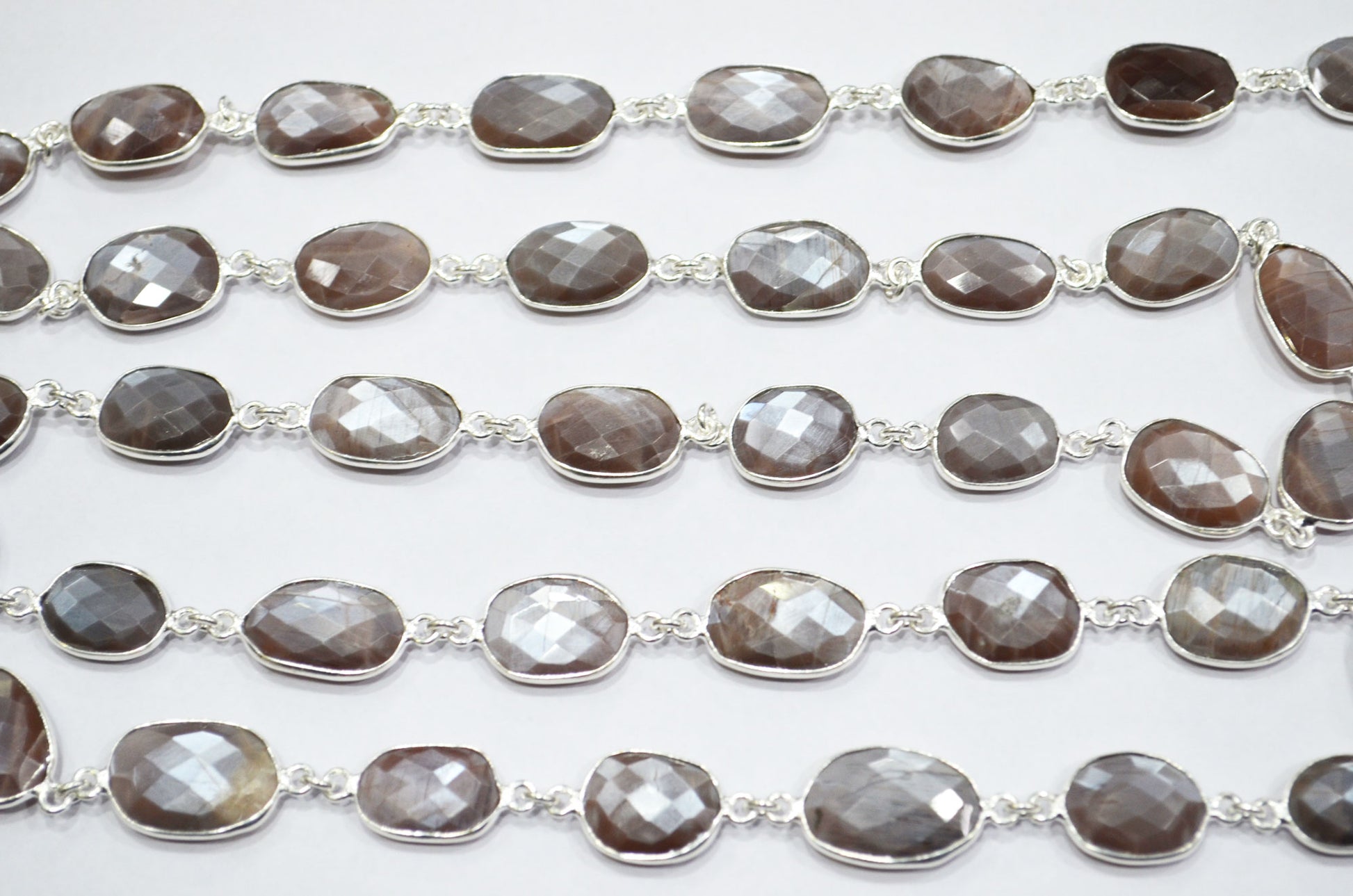 Chocolate Moonstone Faceted Free Form Shape Connector Chain , Chocolate Moonstone Slice Shape Bezel Link Chain , 10 - 16 mm , RB-6128