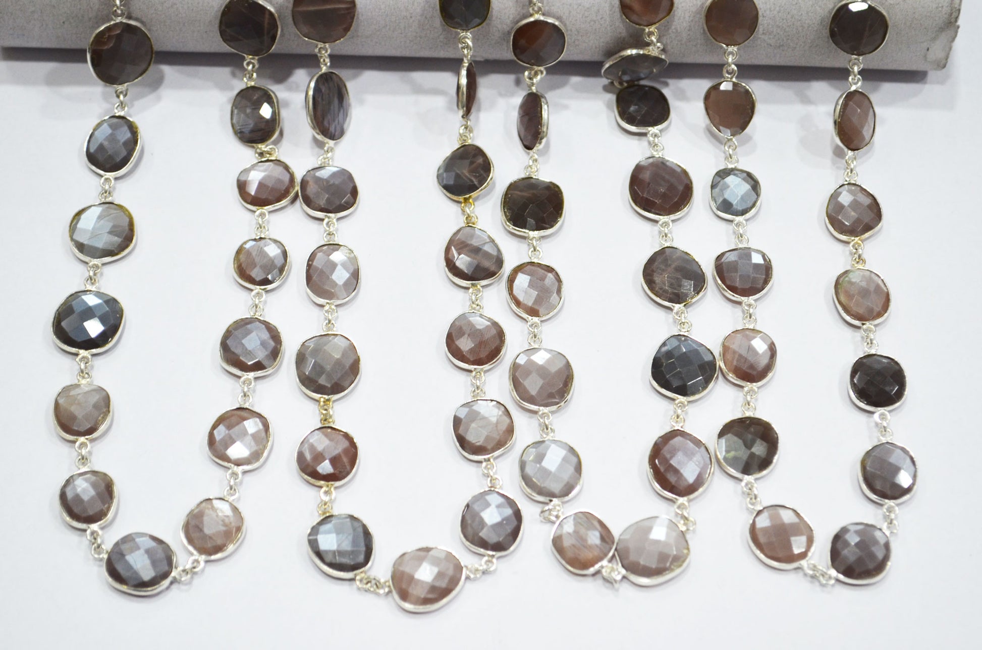 Chocolate Moonstone Faceted Free Form Shape Connector Chain , Chocolate Moonstone Slice Shape Bezel Link Chain , 12 - 15 mm , RB-5763