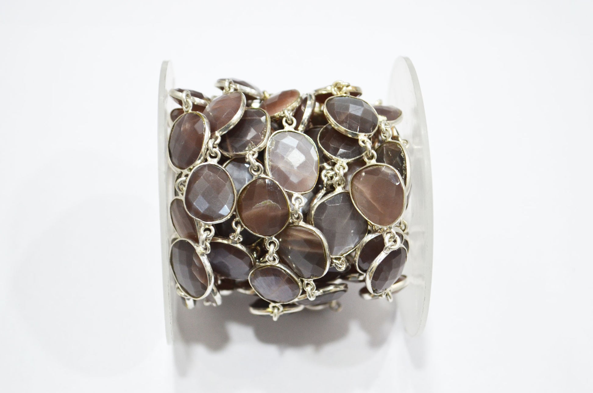 Chocolate Moonstone Faceted Free Form Shape Connector Chain , 12 - 15 mm , RB-5763
