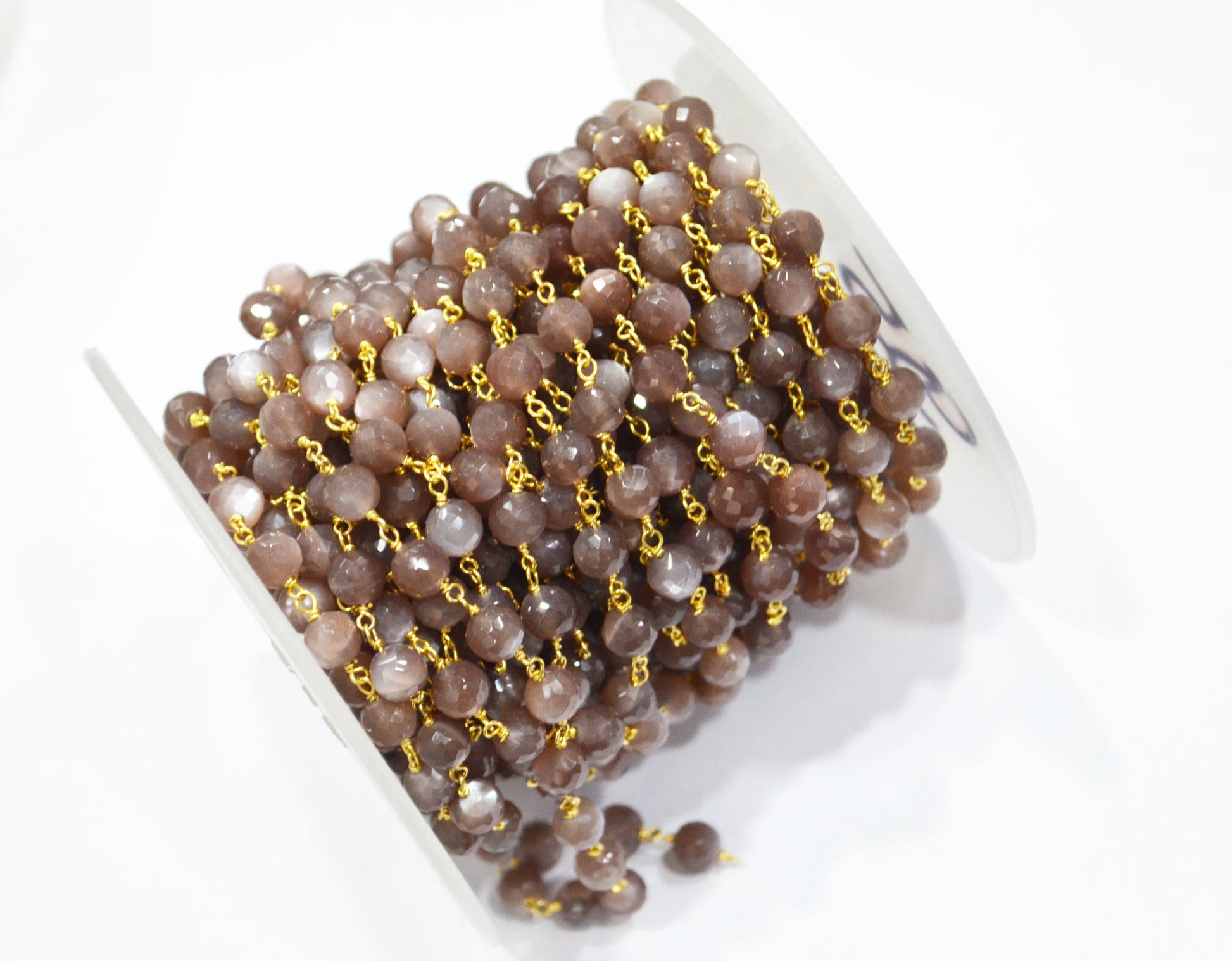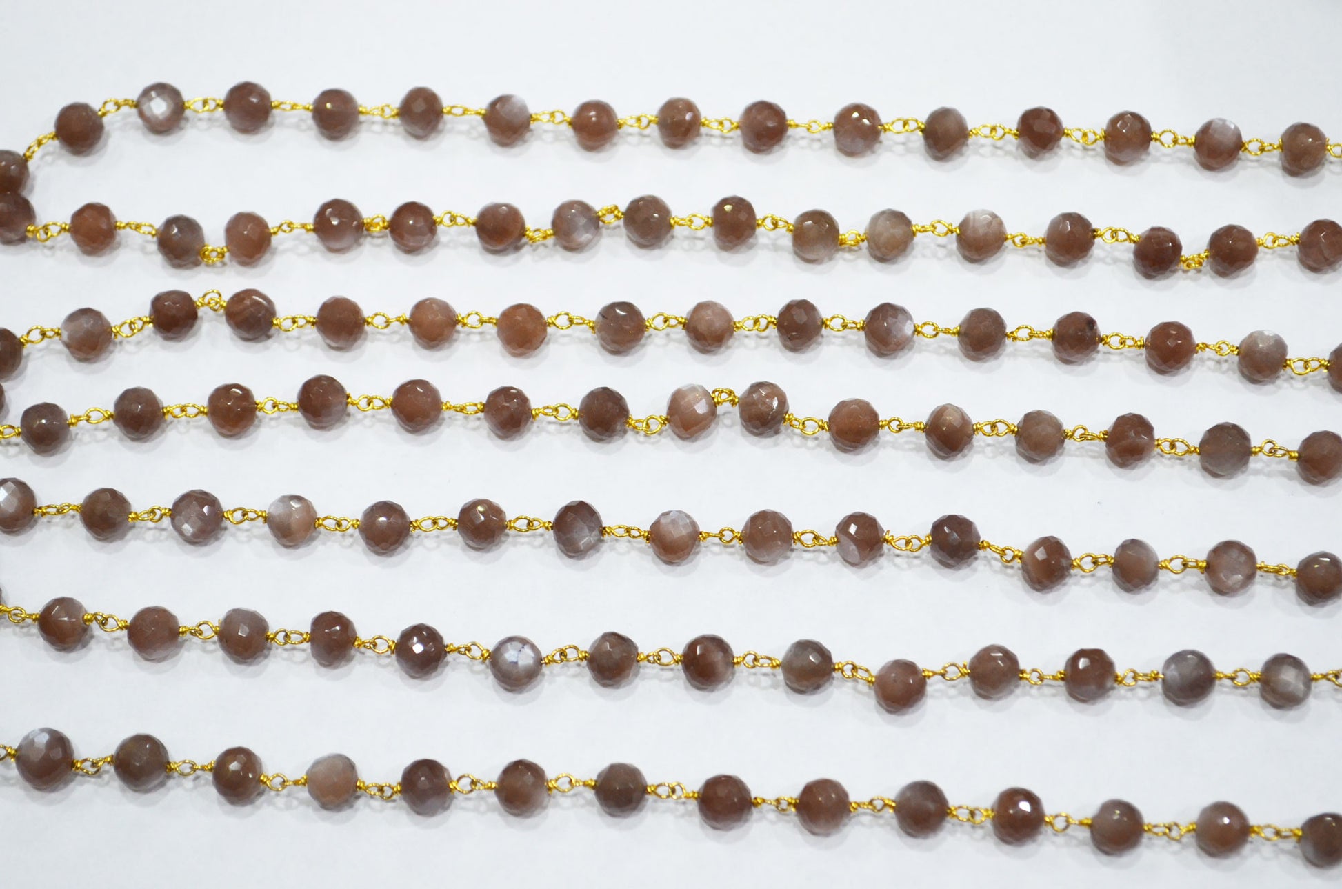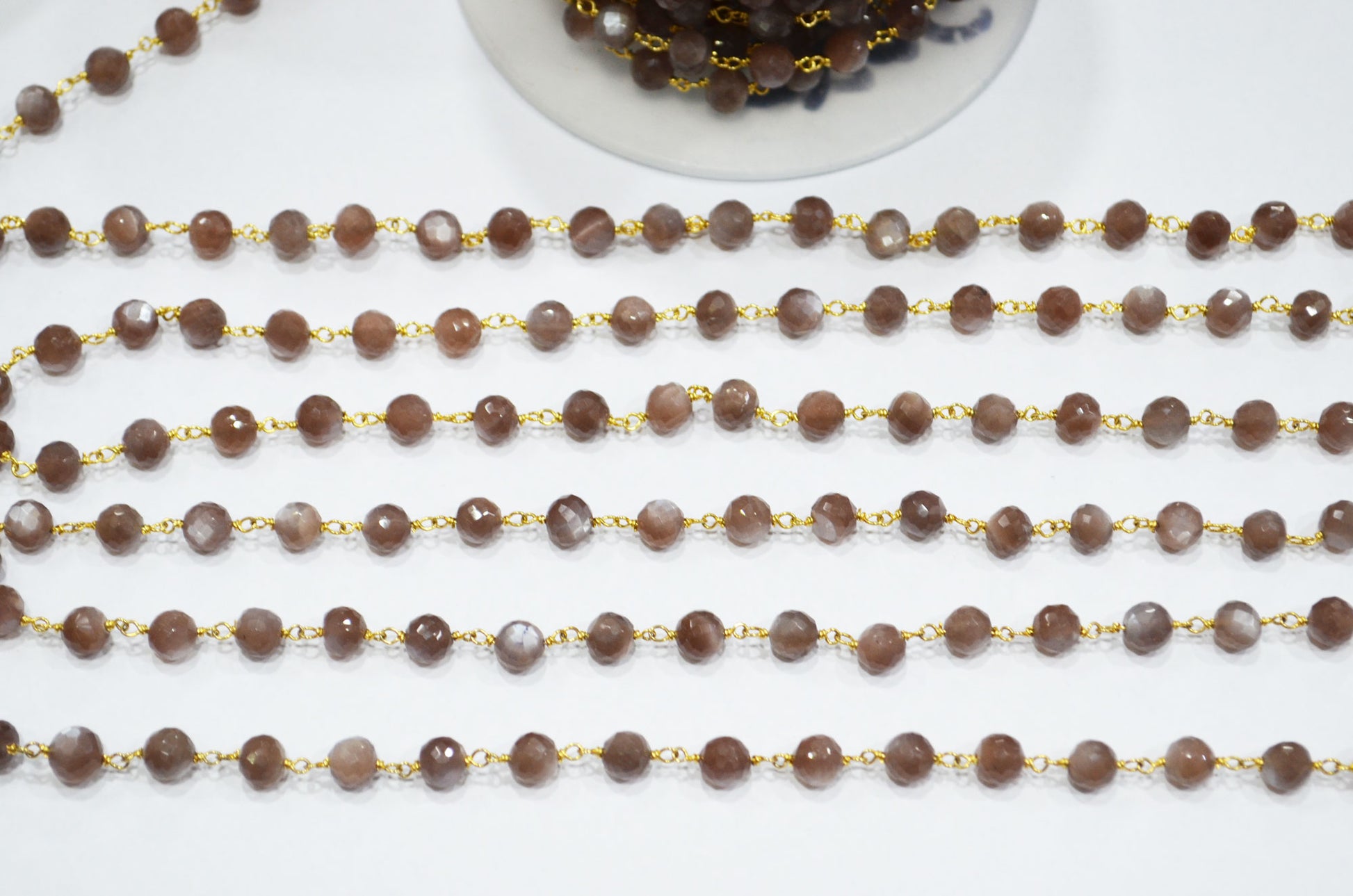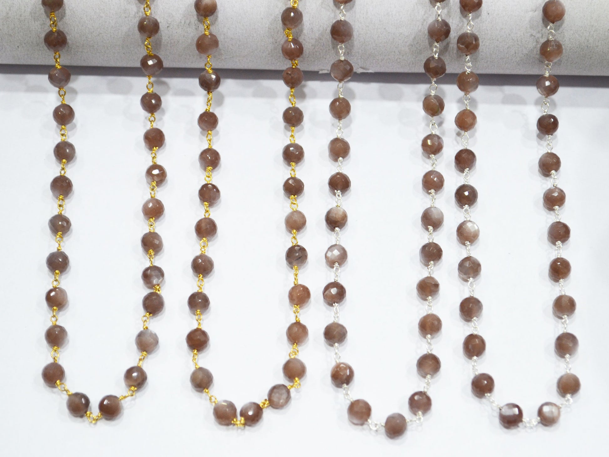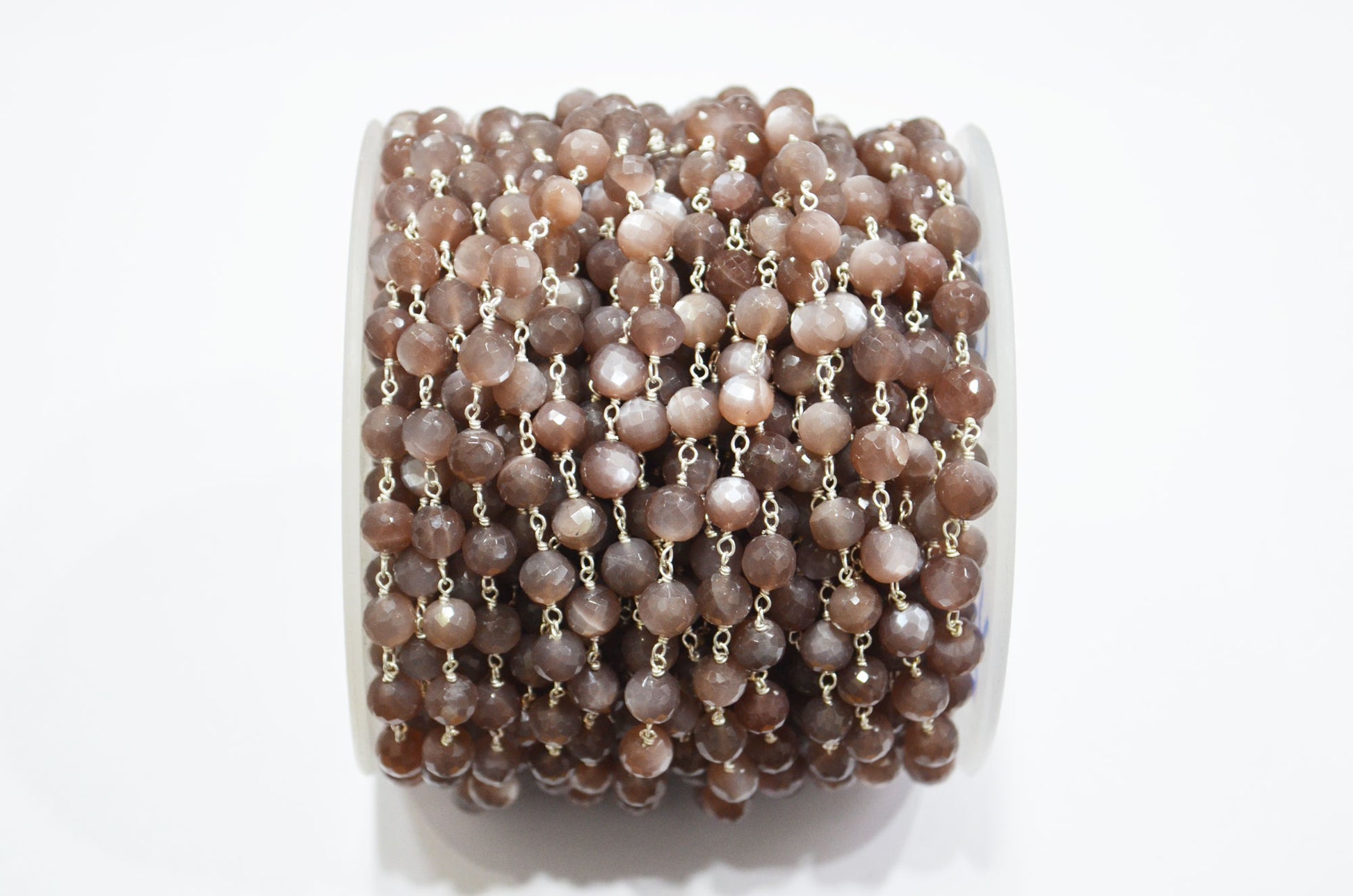 Chocolate Moonstone Faceted Rondelle Shape Rosary Beaded Chain , Chocolate Moonstone Wire Wrapped Chain , 6.50 - 6.75 mm , RB-5825