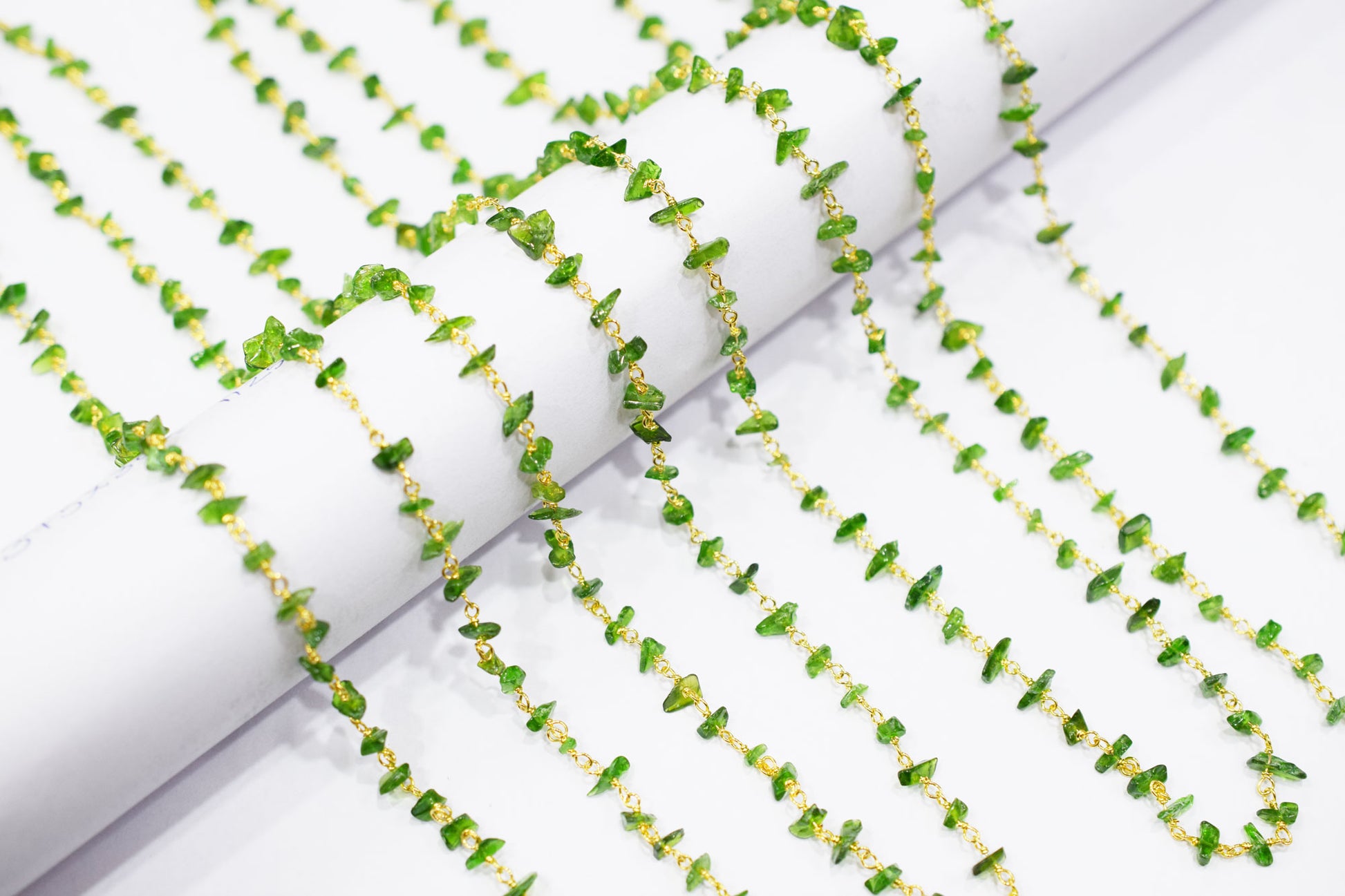 Chrome Diopside Rough Nuggets Rosary Beaded Chain , Chrome Diopside Irregular Flat Chips Wire Wrapped Chain , 3 - 5 mm , RB-6588