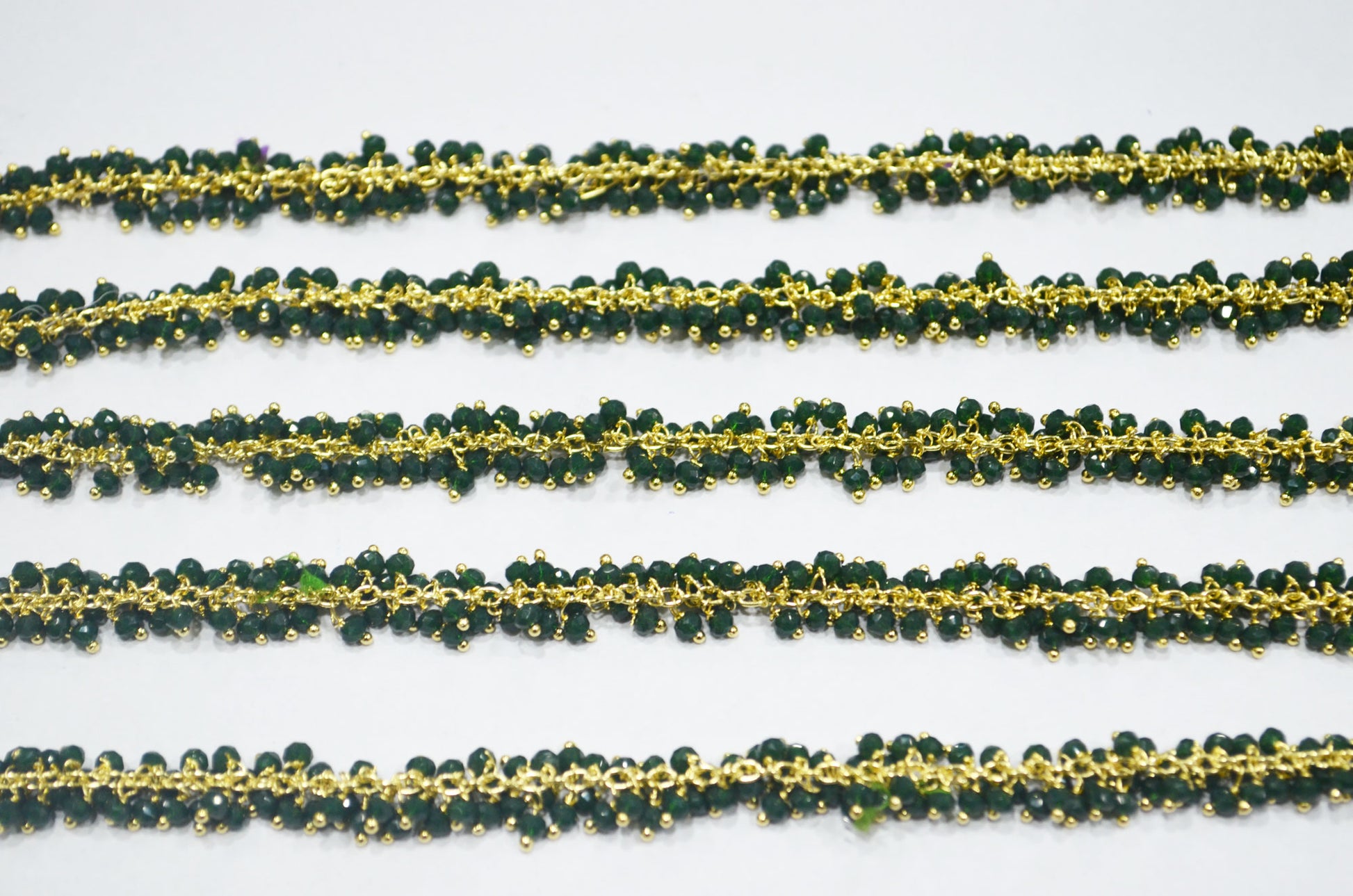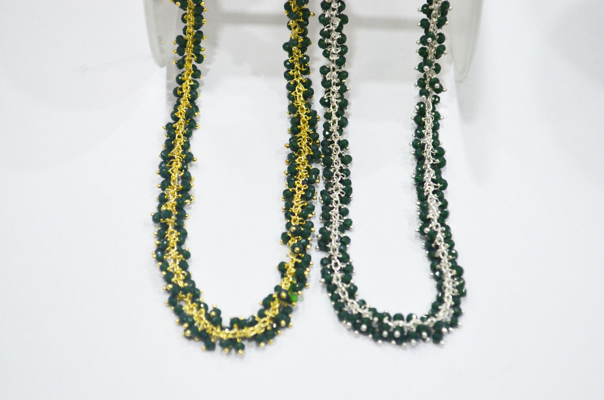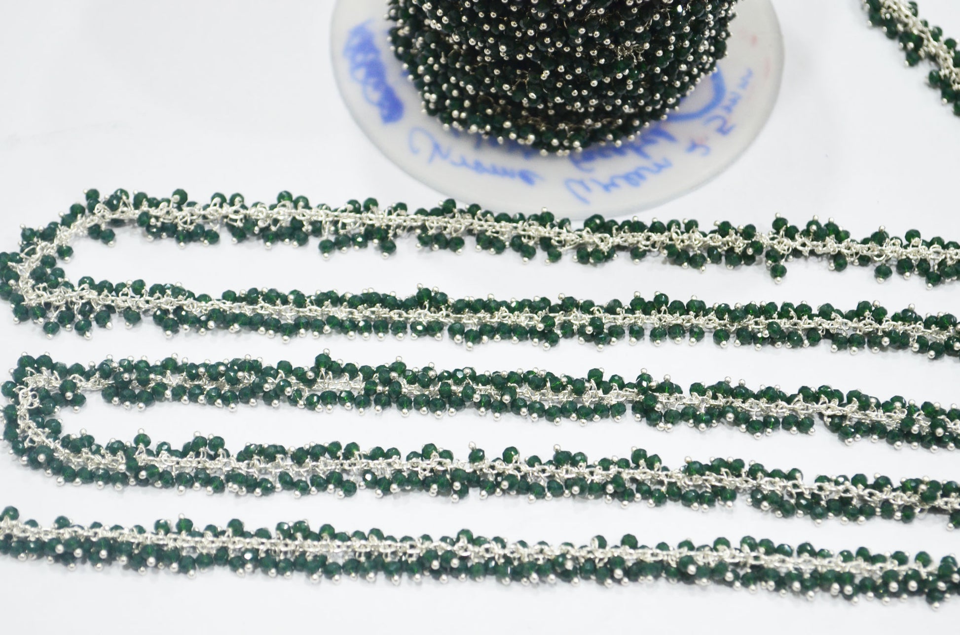 Chrome Green Hydro Quartz Faceted Rondelle Shape Grape Chain , Chrome Green Hydro Quartz Angoori Cluster Wire Wrapped Chain , 2.50 mm , RB-6388