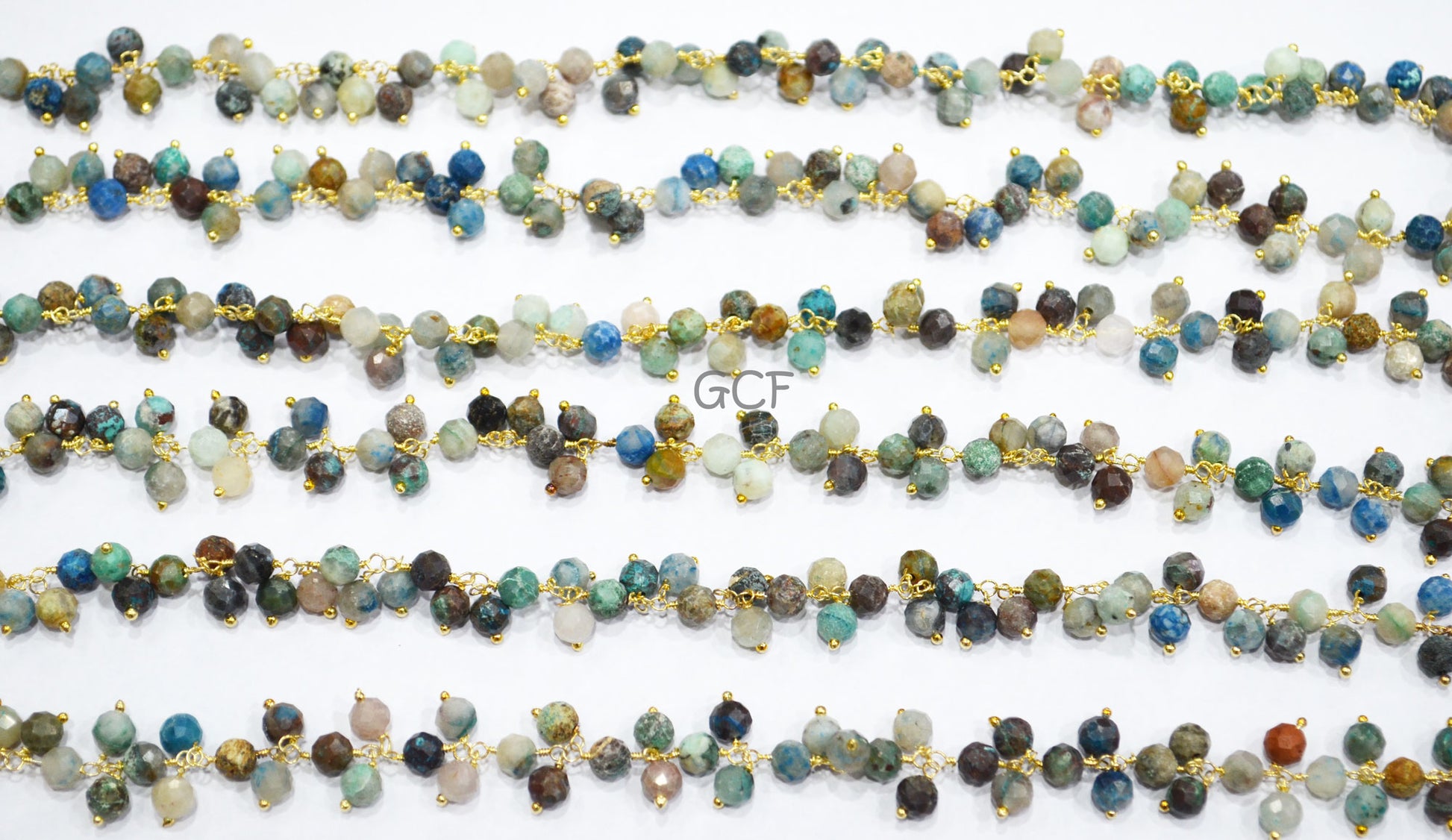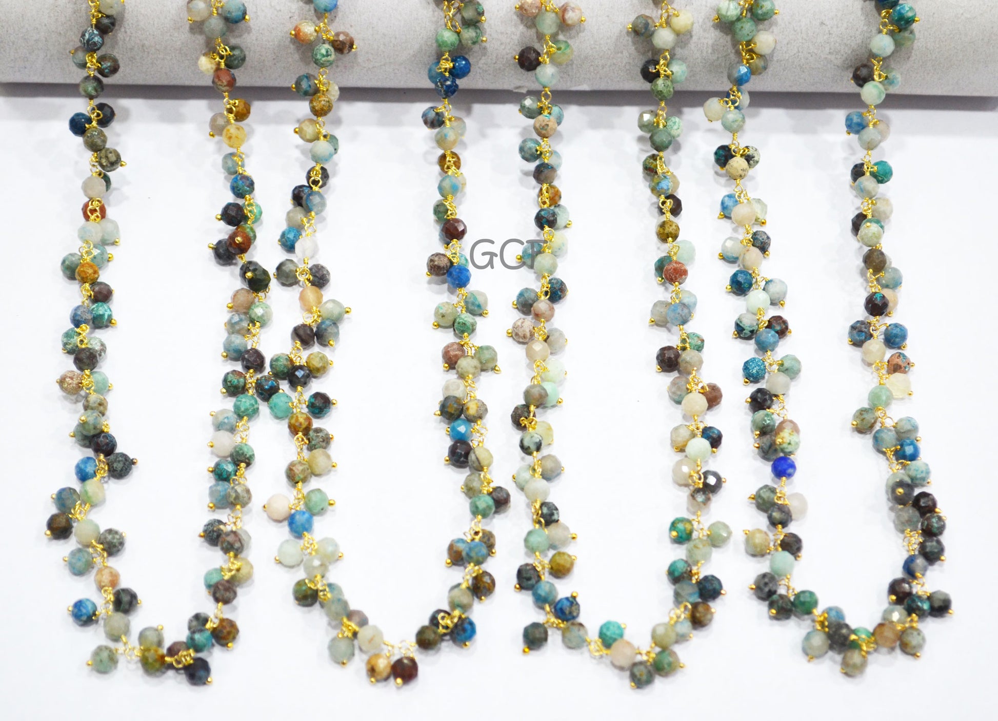 Chrysocolla Faceted Round Shape Rosary Beaded Chain , Chrysocolla Round Shape Wire Wrapped Angoori Cluster Chain ,Β 5 mm , RB-7040