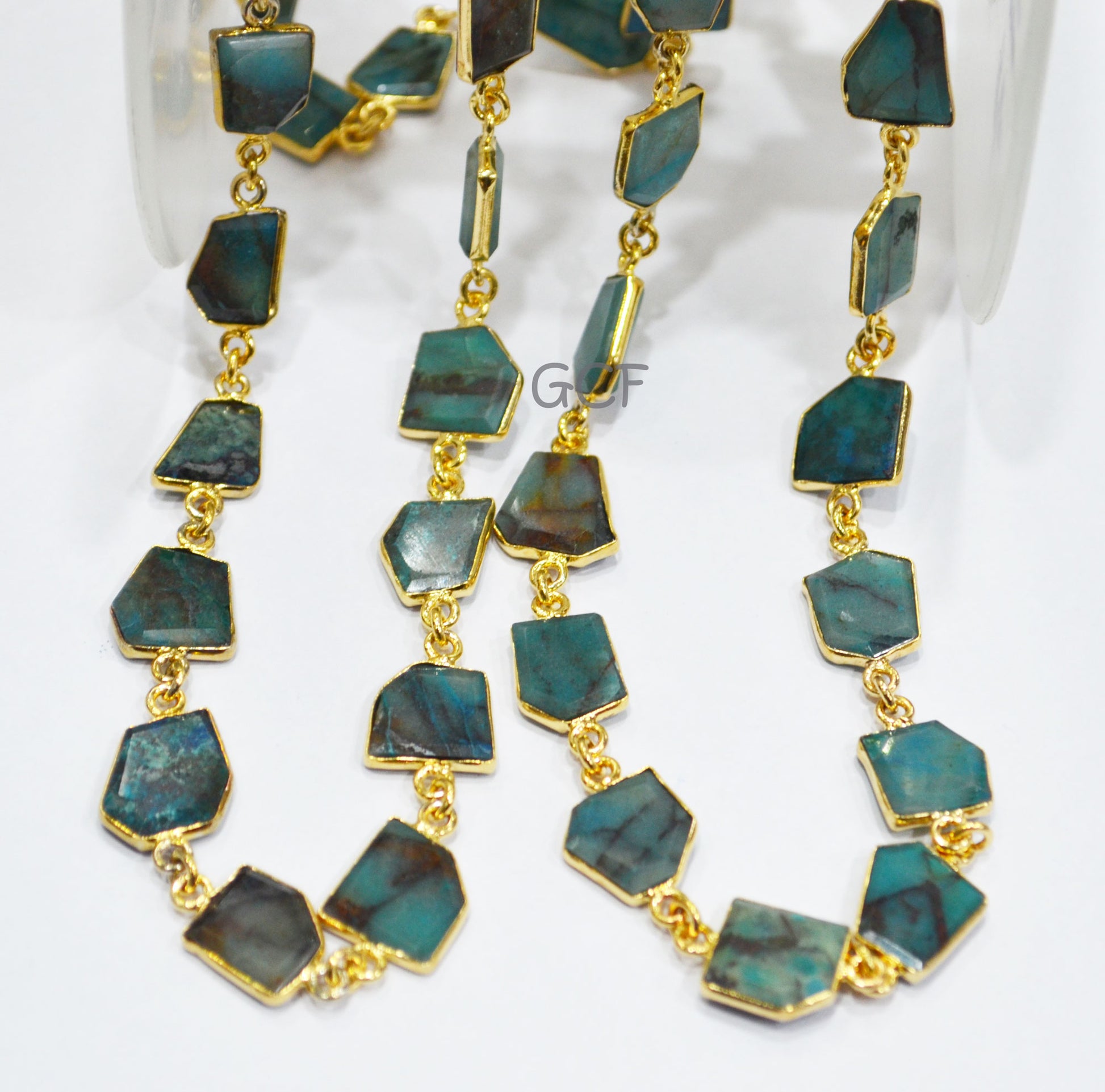 Chrysocolla Fancy Cut Shape Connector Chain , Chrysocolla Fancy Cut Bezel Link Chain , 8x10 - 13x14 mm , 6773