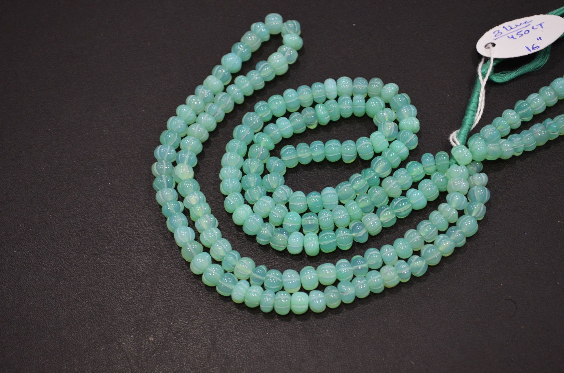 Chrysoprase Chalcedony Carved Melon Shape Beads , Chrysoprase Chalcedony Melon Shape Beads , Sold By Strand , 6.50 - 7.50 mm , 16 Inches , 32357