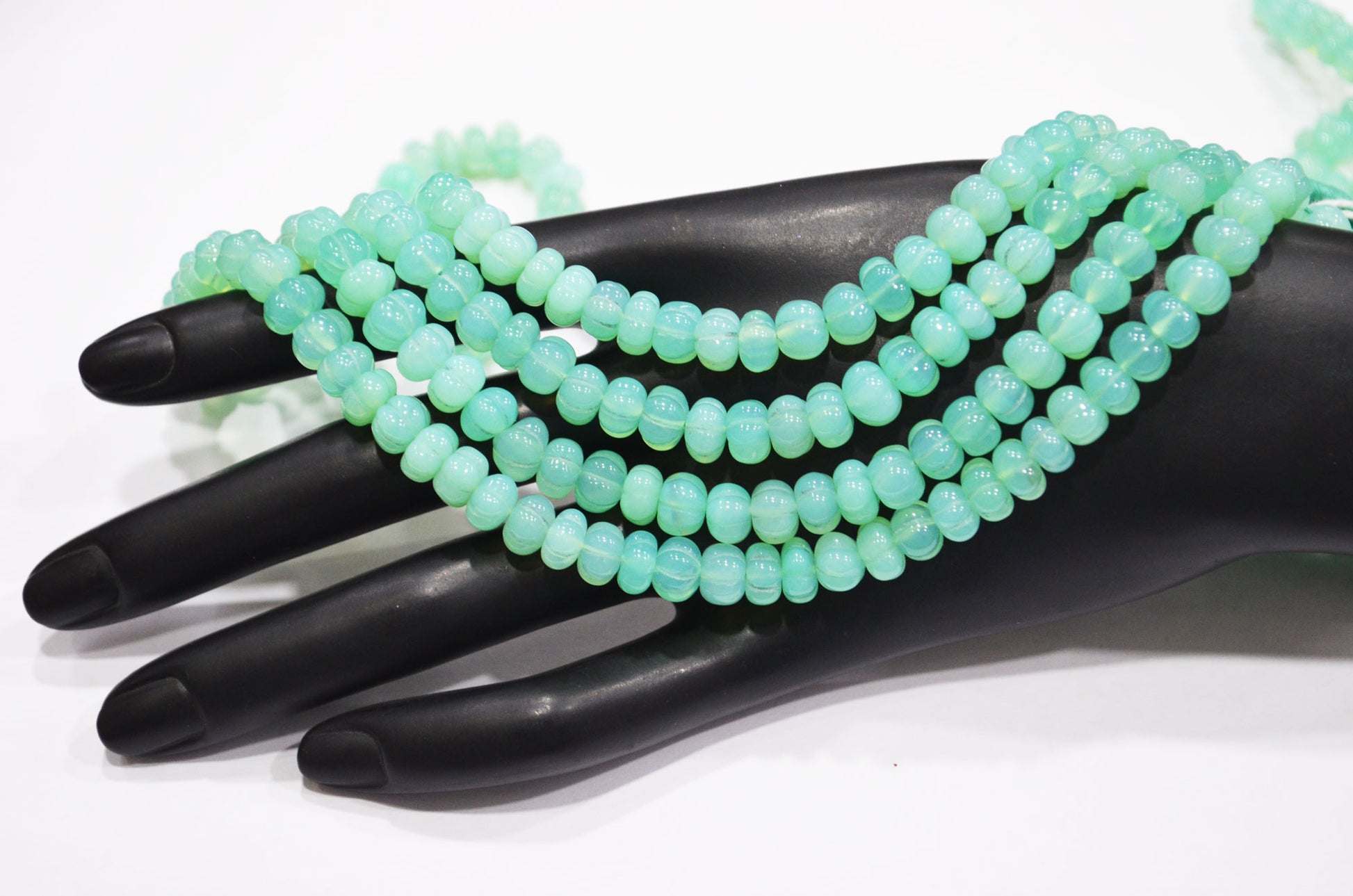 Chrysoprase Chalcedony Carved Melon Shape Beads , Chrysoprase Chalcedony Melon Shape Beads , Sold By Strand , 7 - 7.50 mm , 16 Inches , 32351