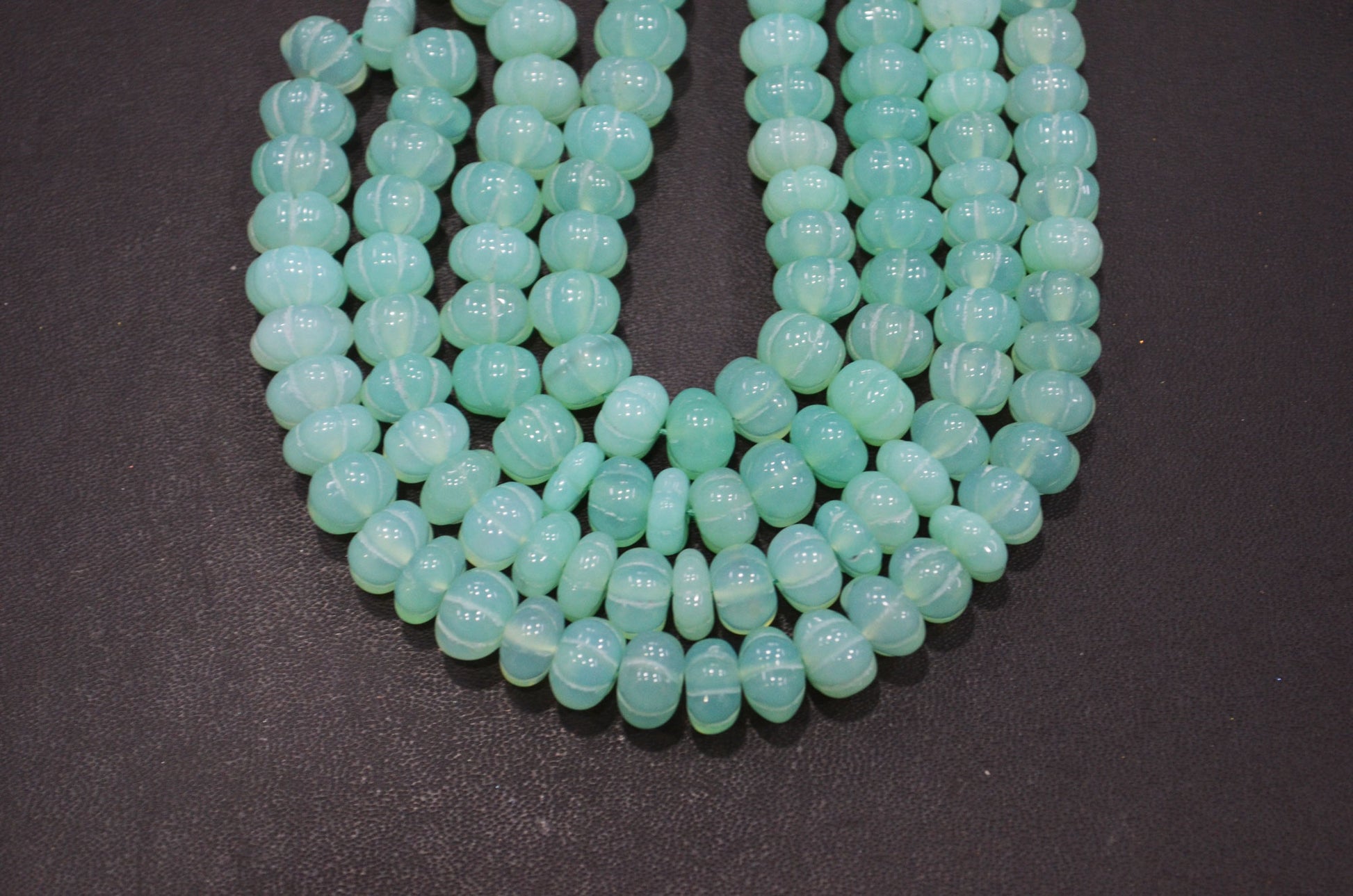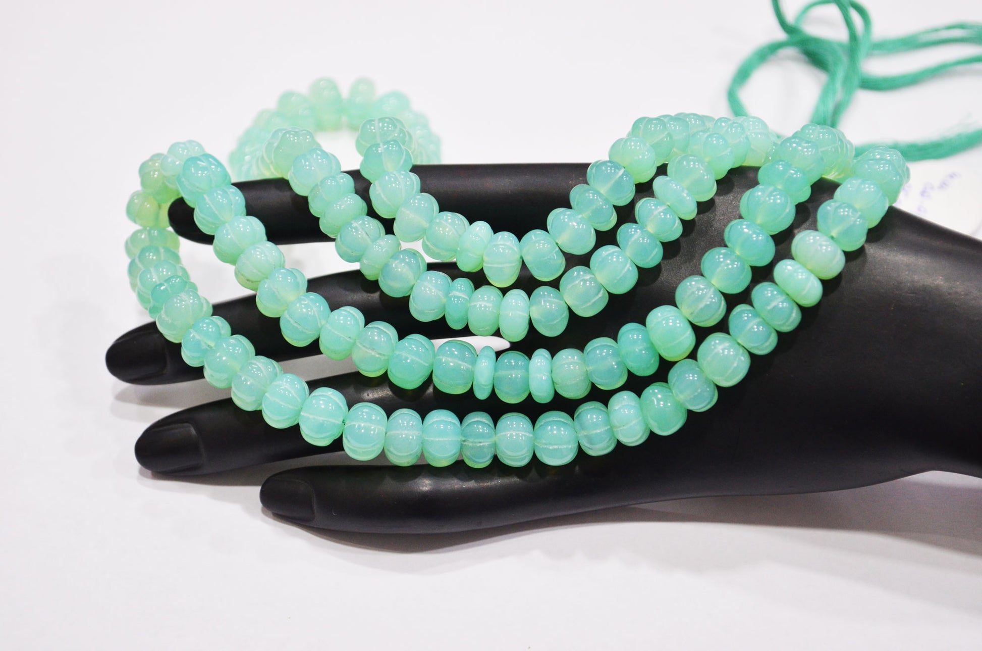 Chrysoprase Chalcedony Carved Melon Shape Beads , Sold By Strand , 9 - 10 mm , 16 Inches , 32344
