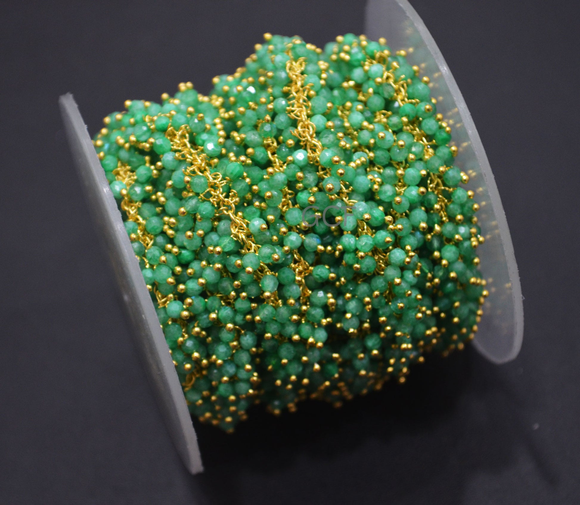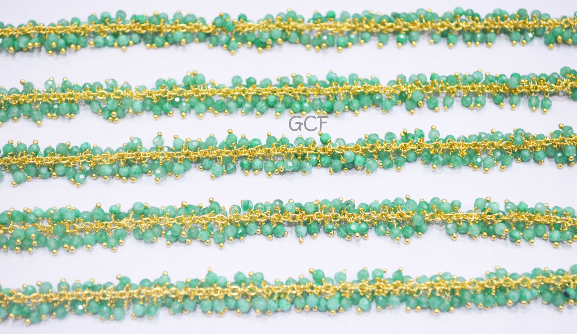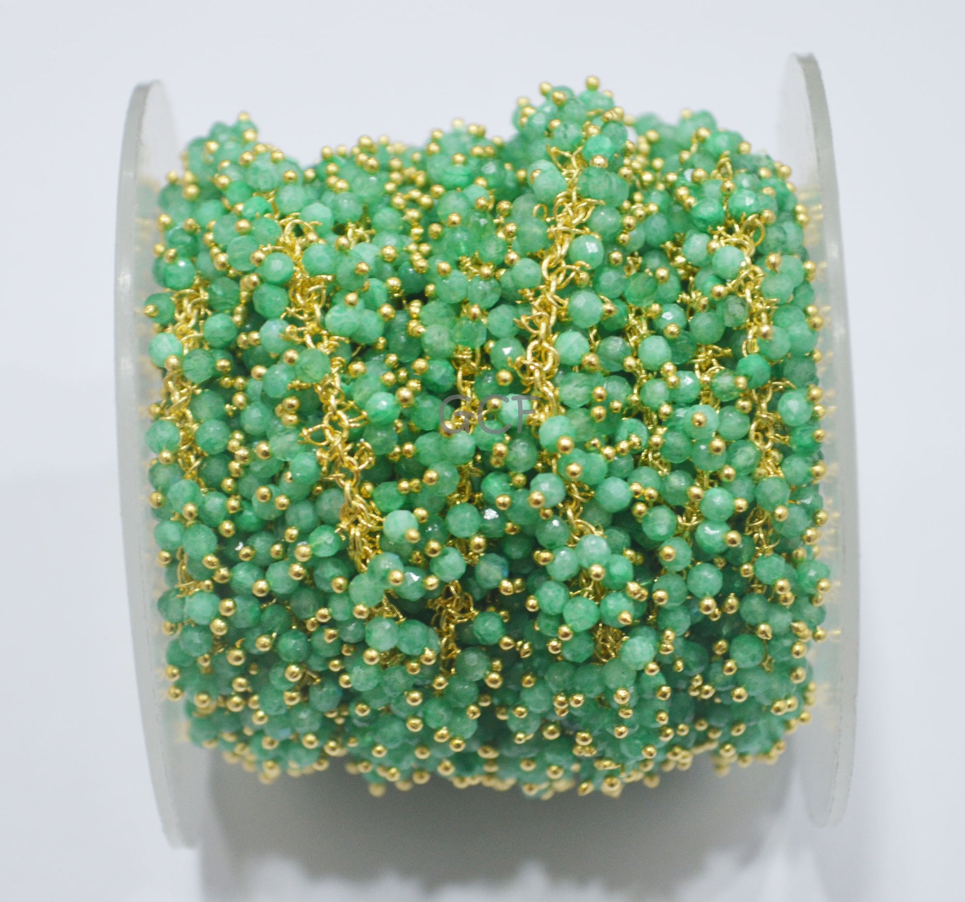 Chrysoprase Rainbow Moonstone Faceted Round Shape Dangling Chain , Mystic Coated Green Moonstone Grape Chain , 2-2.5 mm ,6927
