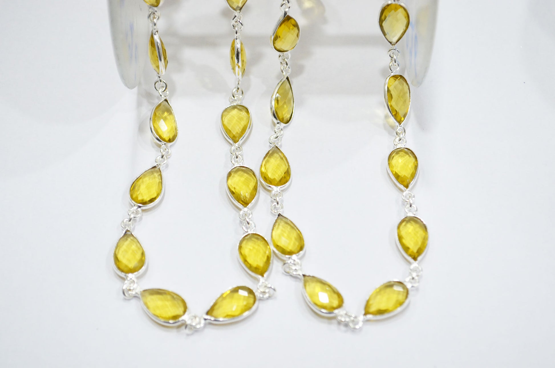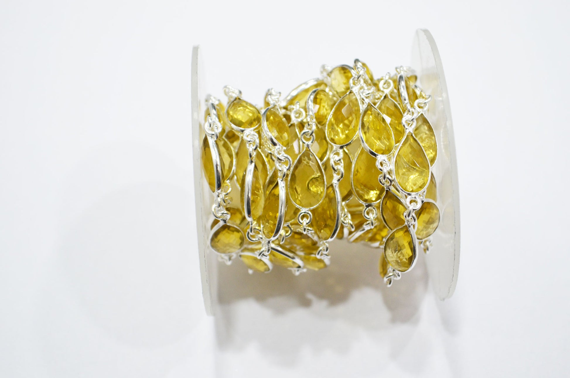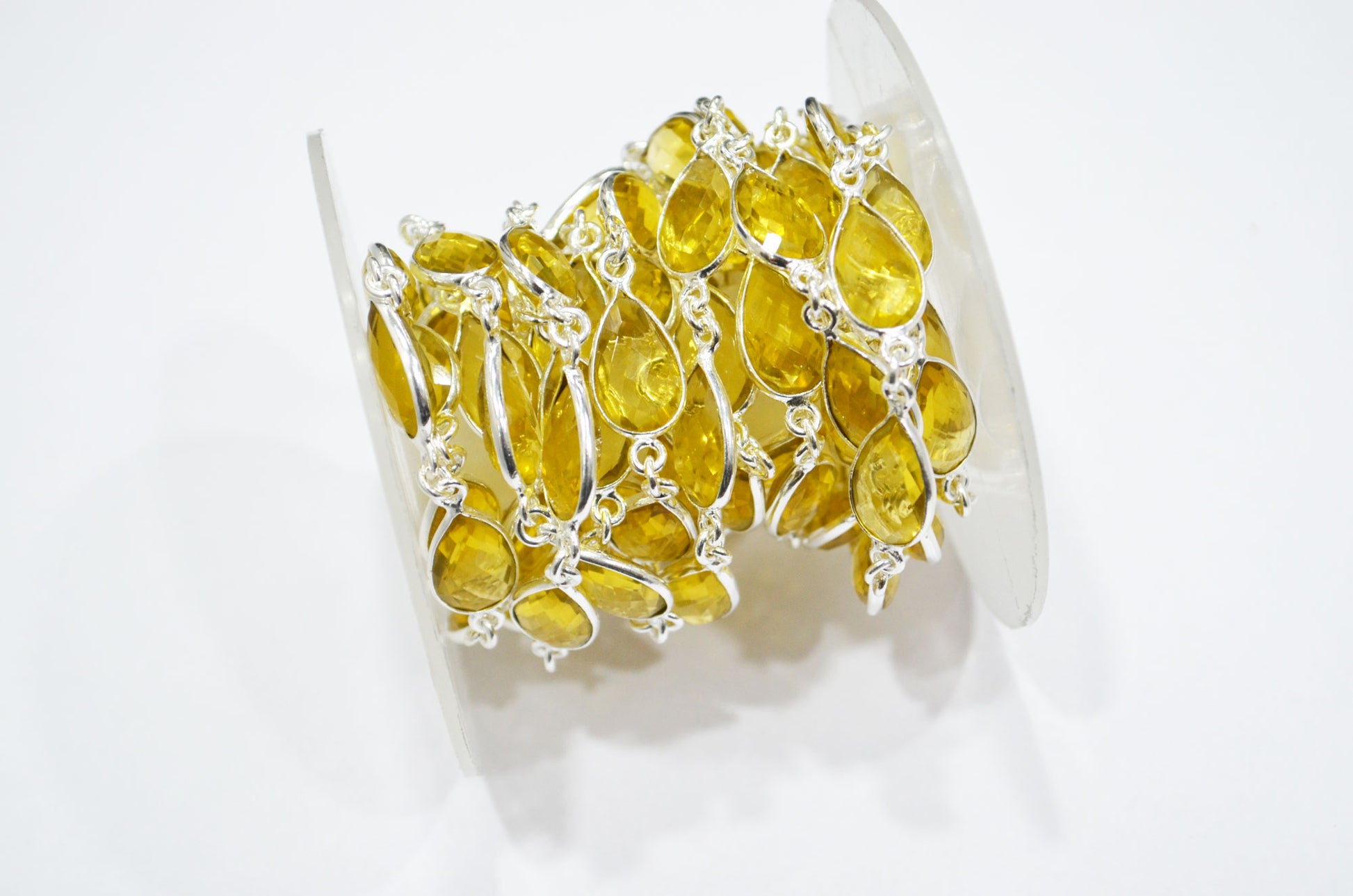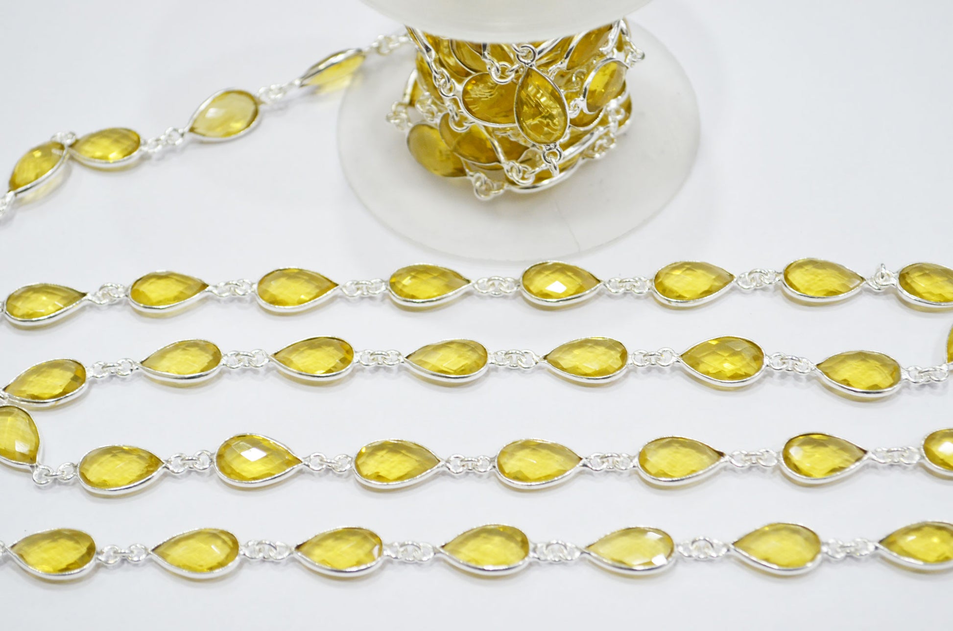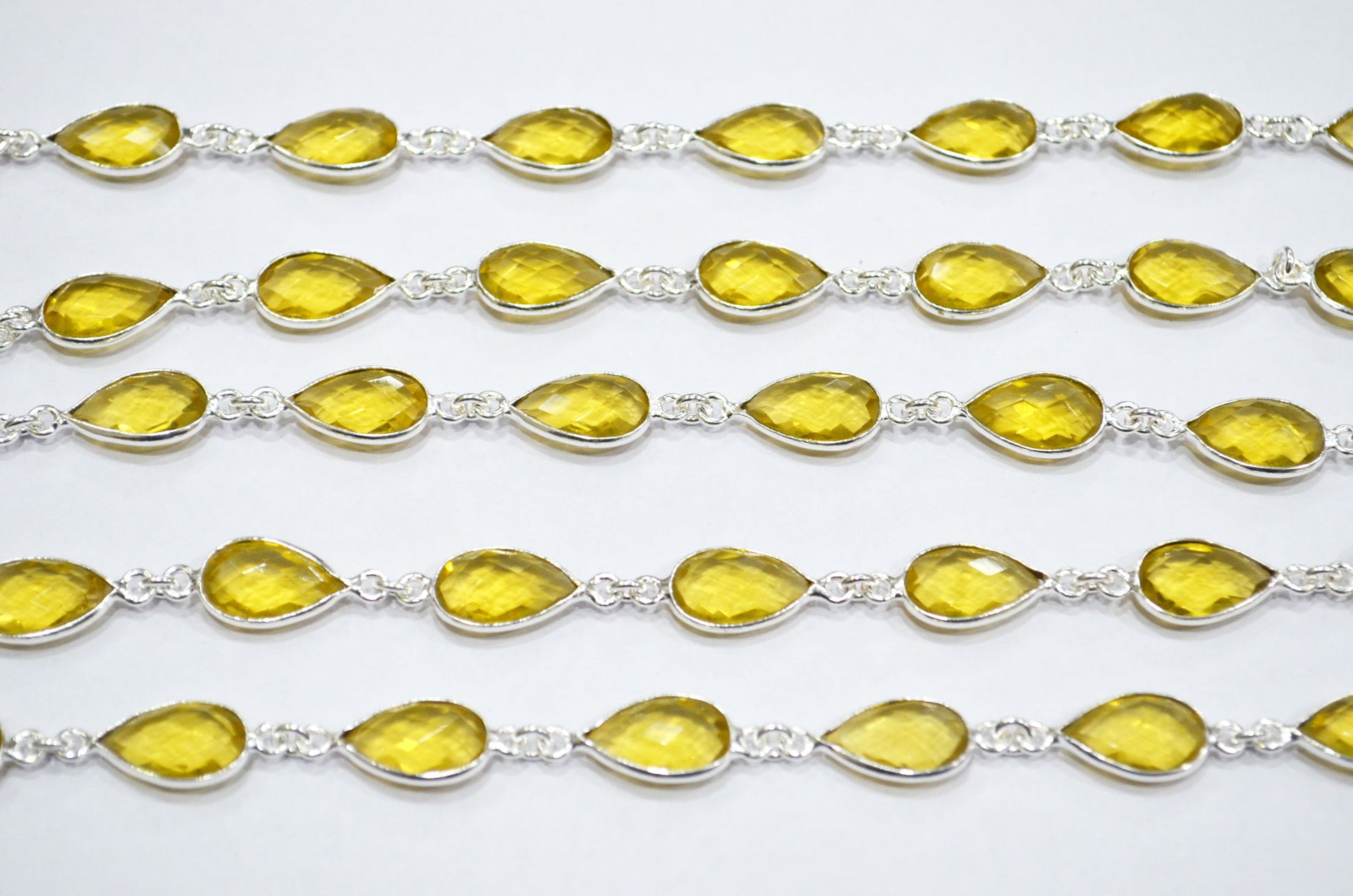 Citrine Hydro Glass Pear Shape Connector Chain , Citrine Hydro Glass Faceted Bezel Link Chain , 8x13 mm , RB-6398