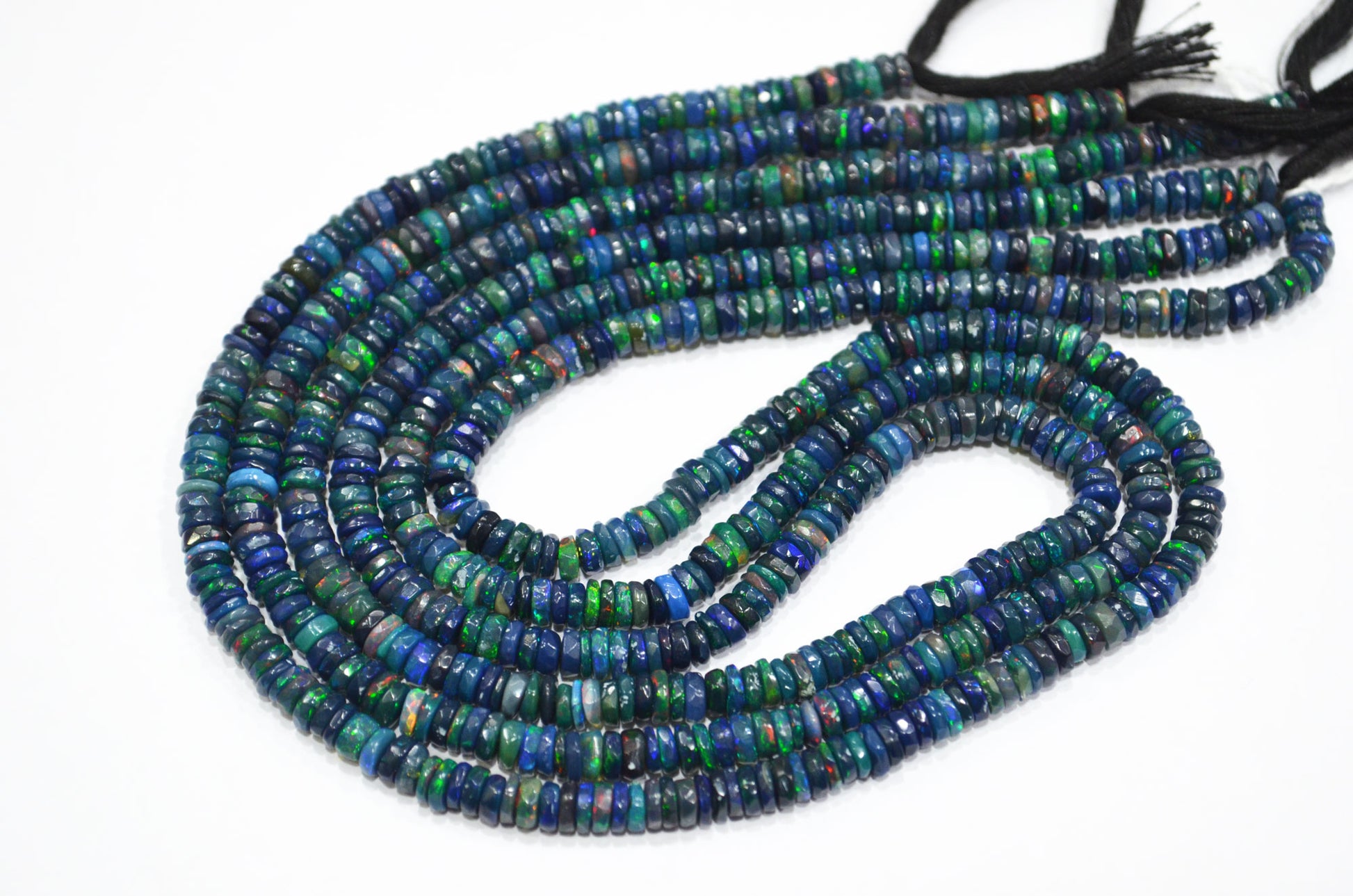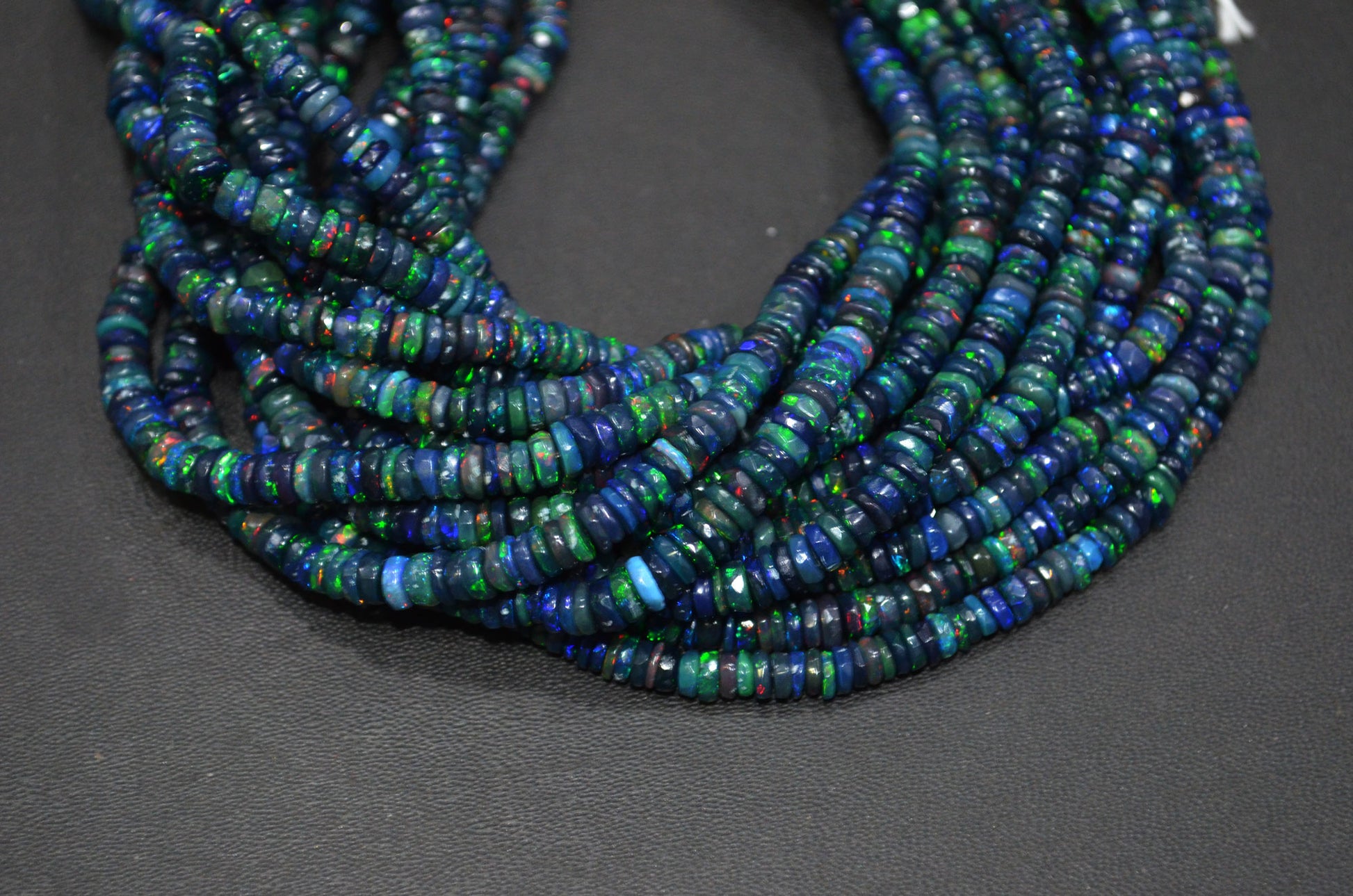 Color Play Black Ethiopian Opal Tyre Shape Beads , Black Ethiopian Opal Faceted Beads , Color Play , Sold By Strand , 4.50 mm , 16" , 19699
