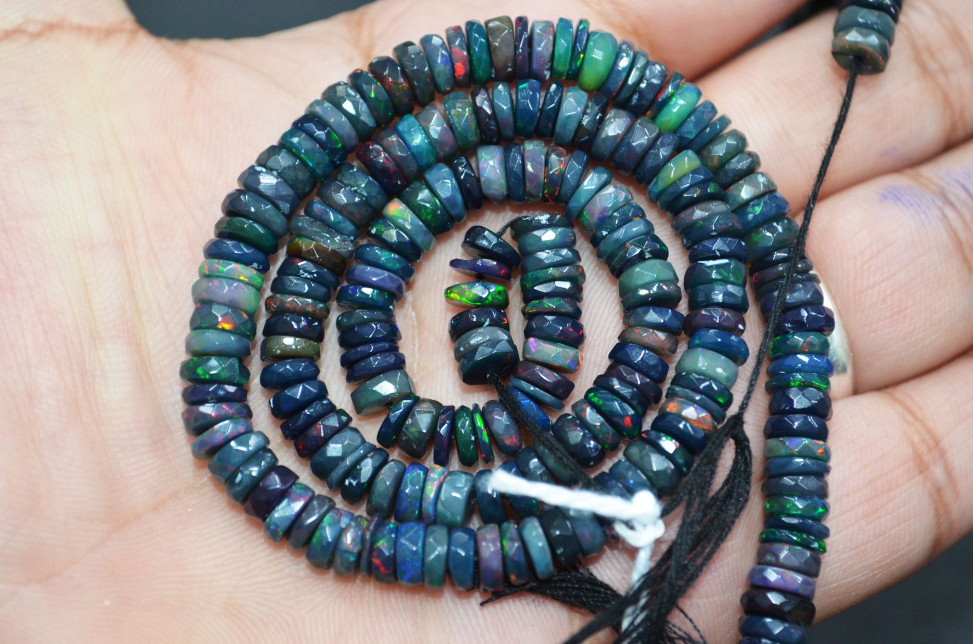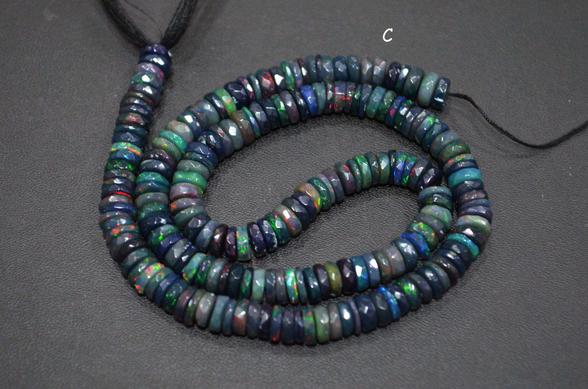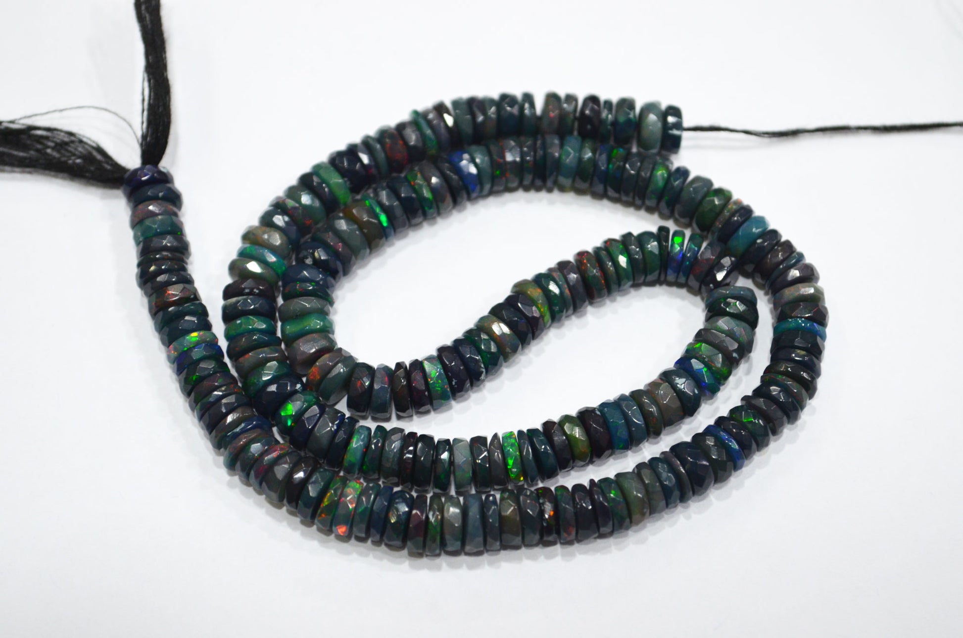 Color Play Black Ethiopian Opal Tyre Shape Beads , Black Ethiopian Opal Faceted Beads , Color Play , Sold By Strand , 6.50 mm , 16" , 19695