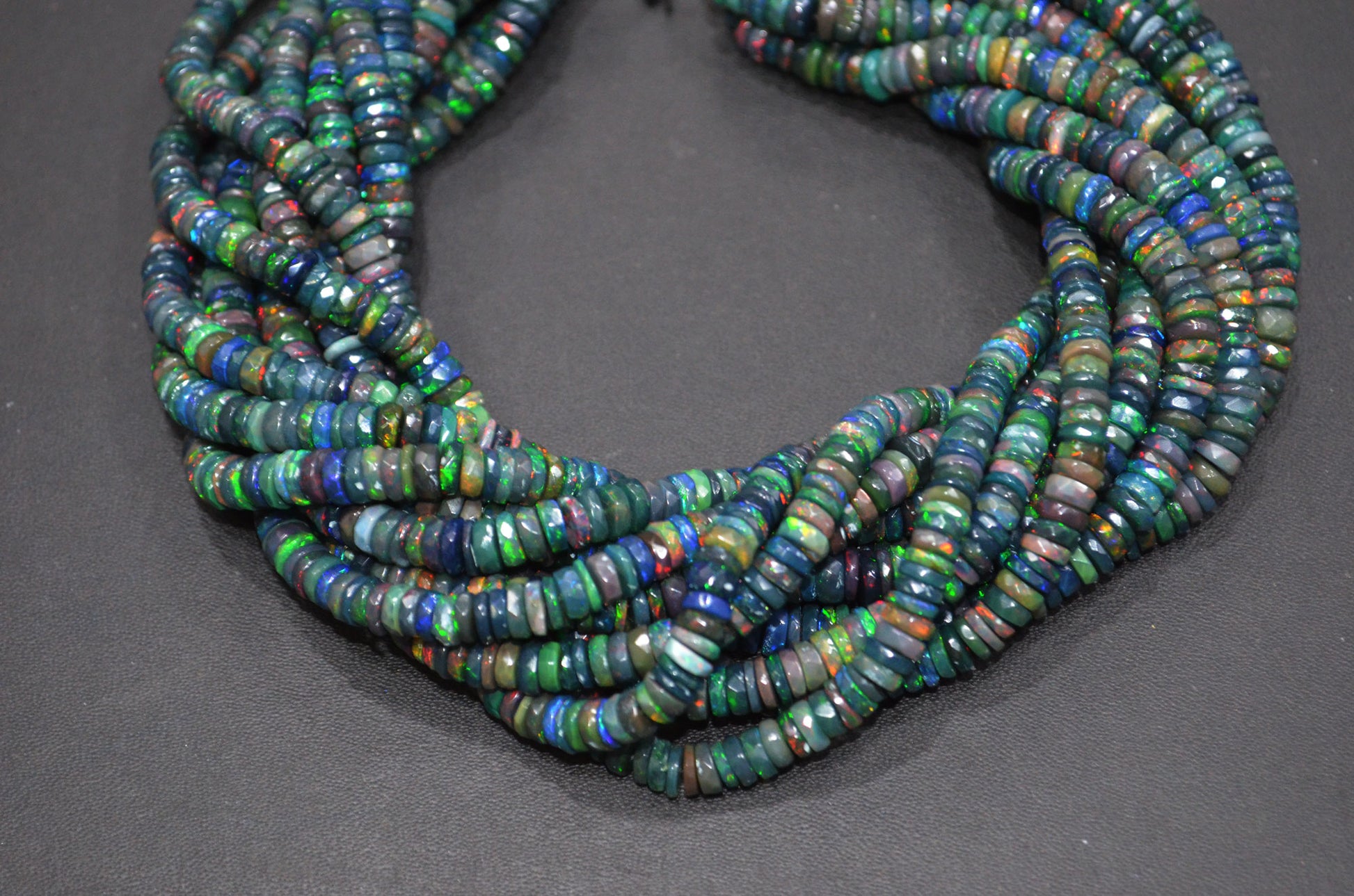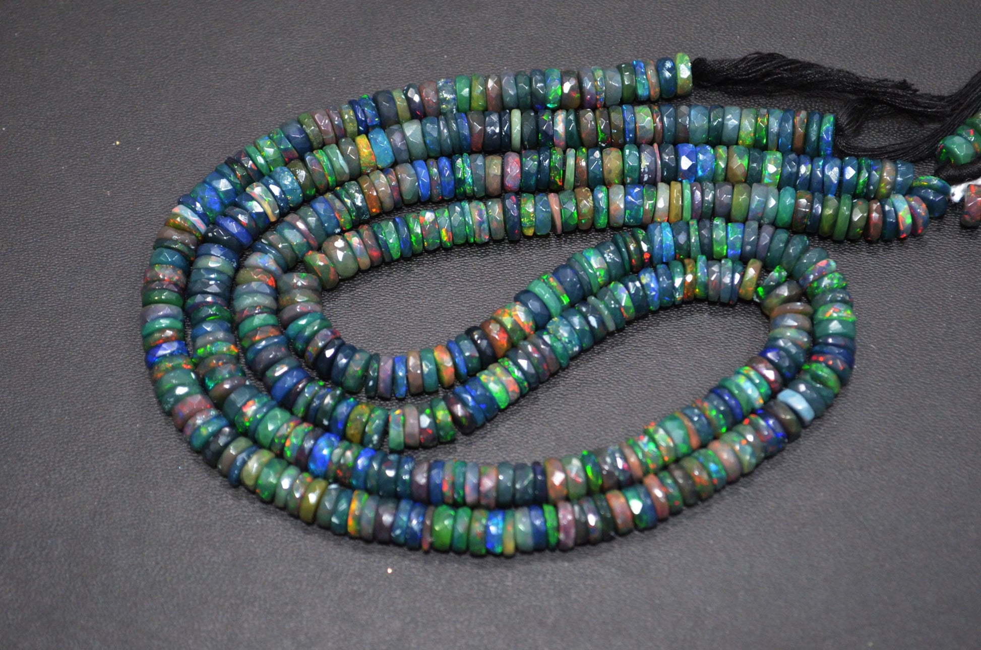 Color Play Black Ethiopian Opal Tyre Shape Beads , Black Ethiopian Opal Faceted Beads , Color Play , Sold By Strand , 6 - 7 mm , 16" , 19705