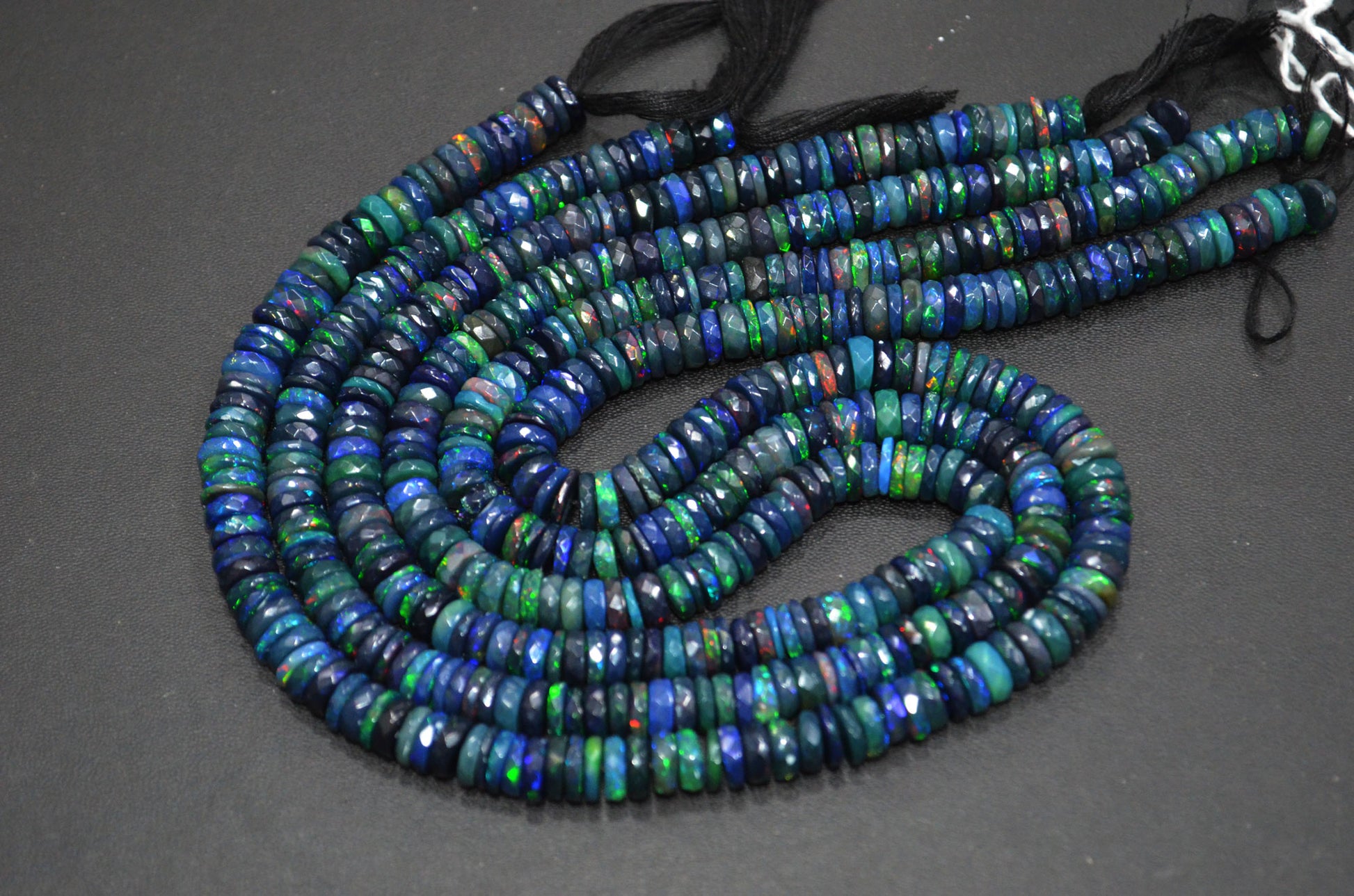 Color Play Black Ethiopian Opal Tyre Shape Beads , Black Ethiopian Opal Faceted Beads , Color Play , Sold By Strand , 7 - 8 mm , 16" , 19702
