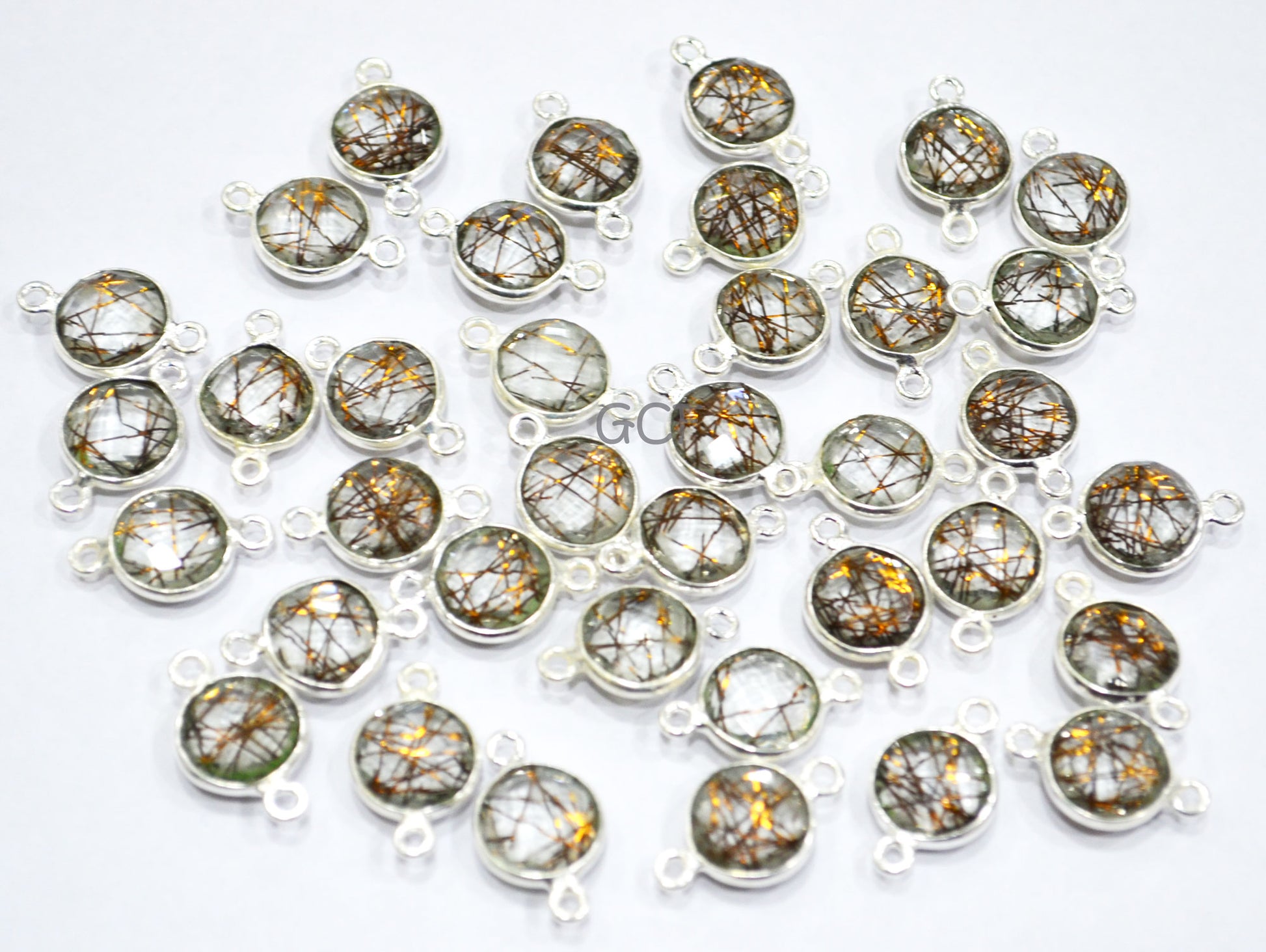 Copper Rutile Faceted Coin Shape Double Bail Connector , Copper Rutile Doublet Hydro Glass Connector , Sold By Piece , 12 mm , RB-6751