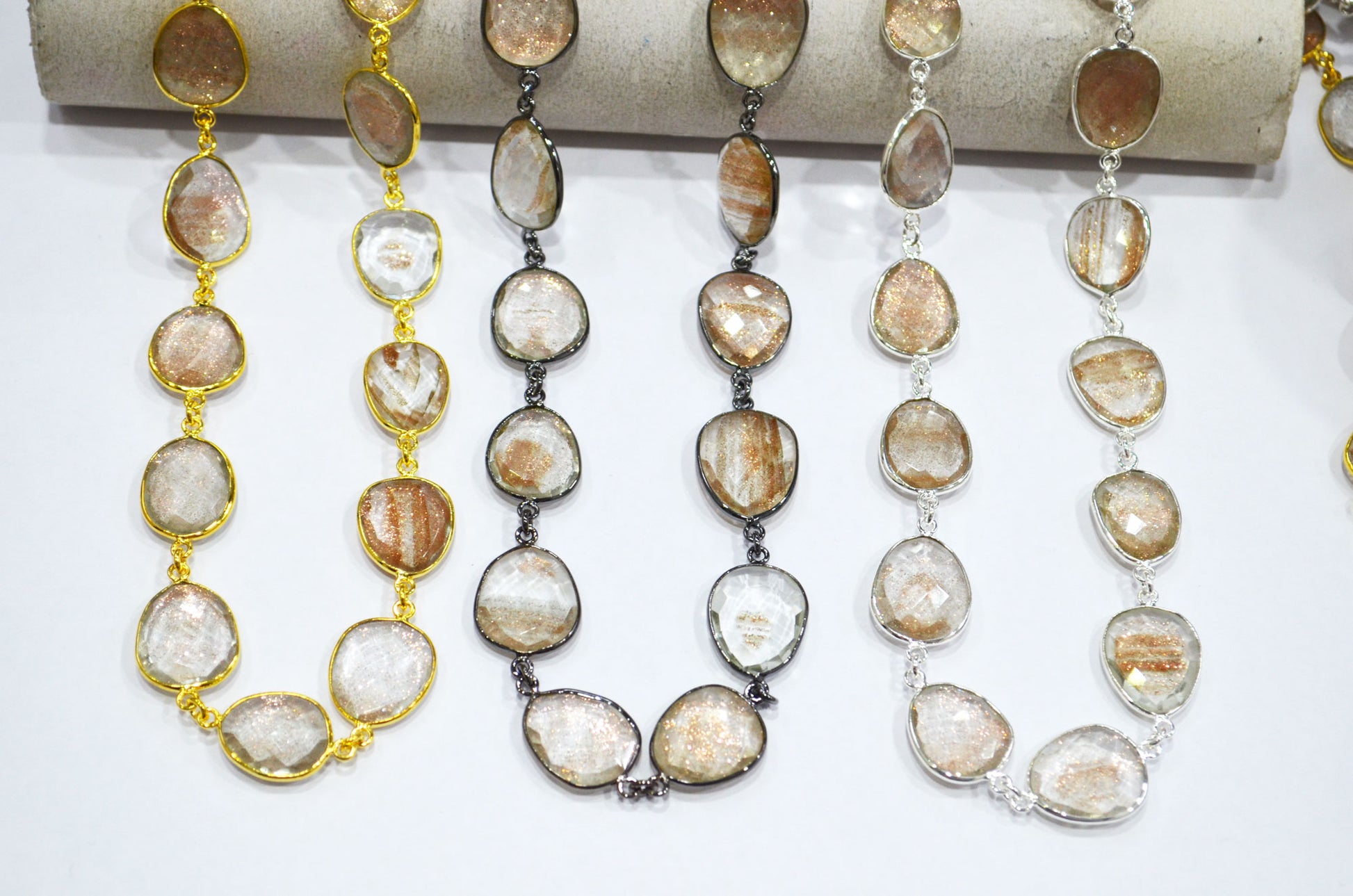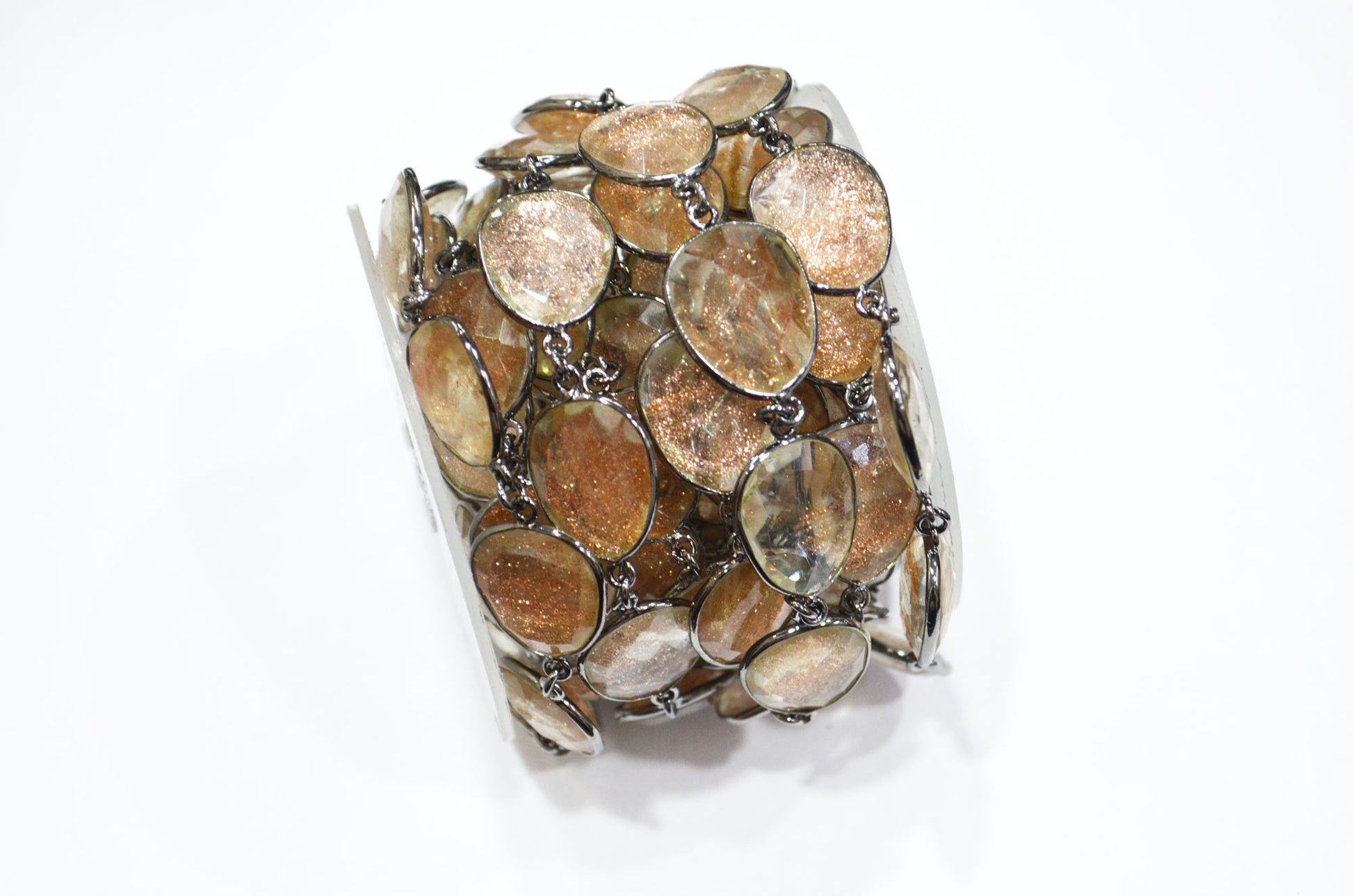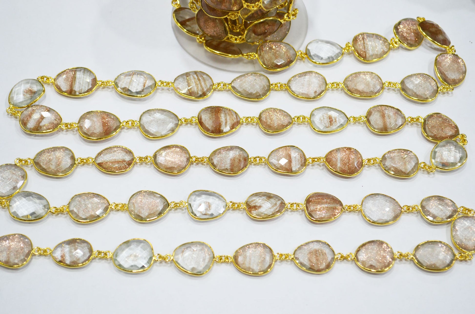 Copper Rutile Faceted Slice Shape Connector Chain , Copper Rutile Bezel Link Chain , 13x16 - 18x22 mm , RB-7379