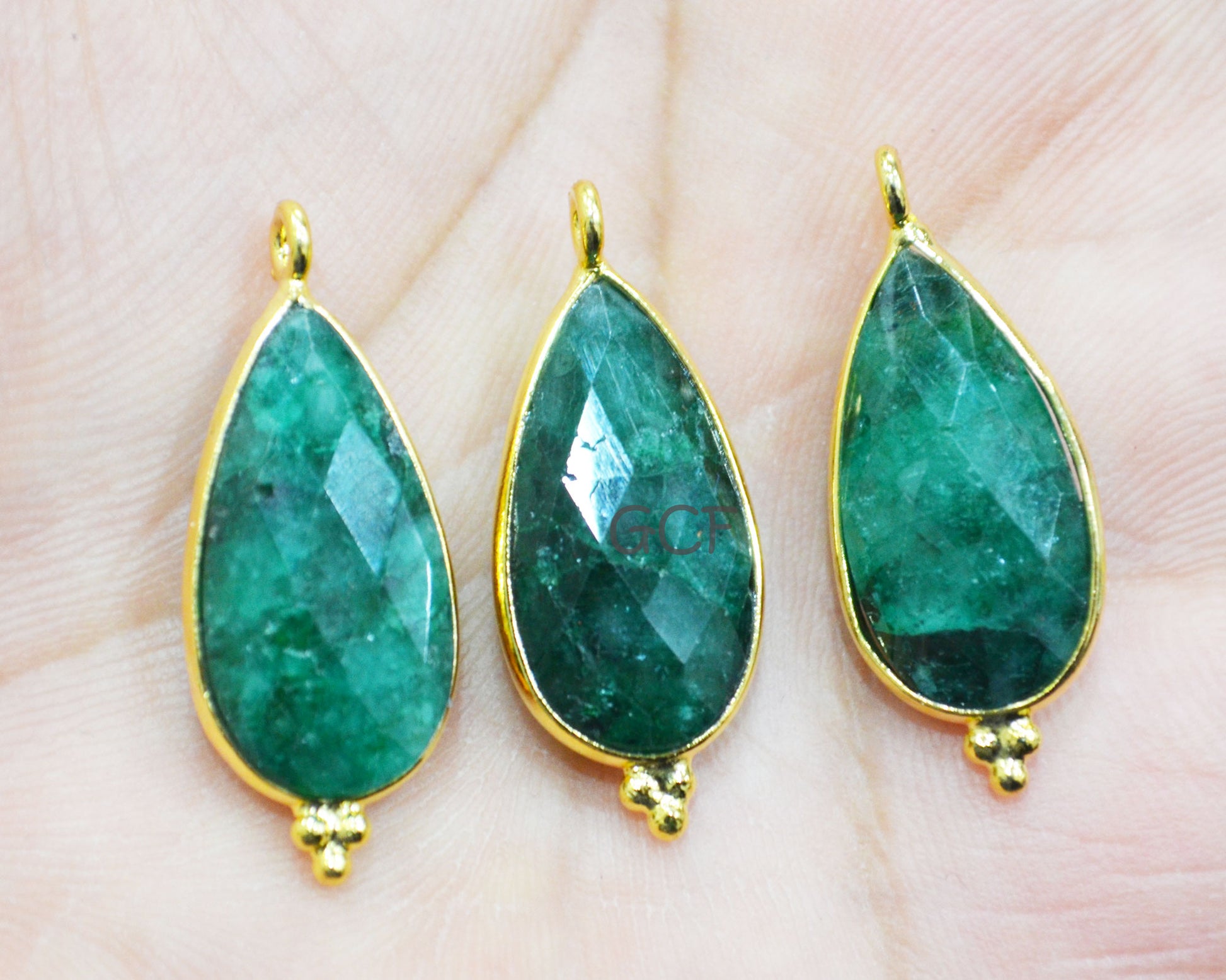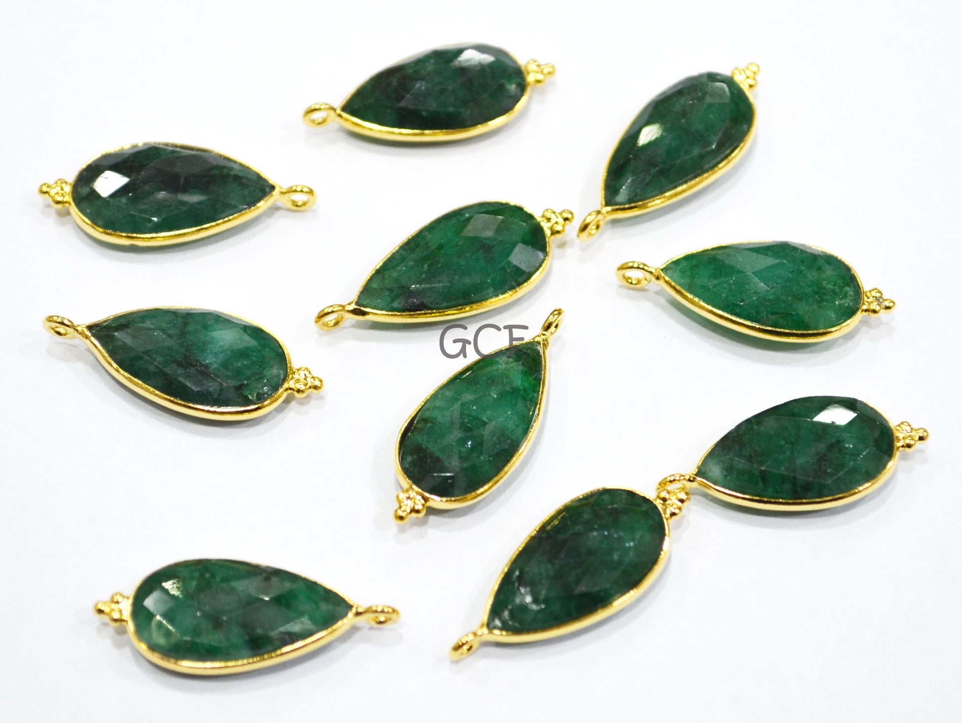 Corundum Emerald Faceted Pear Shape Connector , Corundum Emerald Single Bail Bezel Connector , Sold By Piece , 11x23 mm , RB-6860