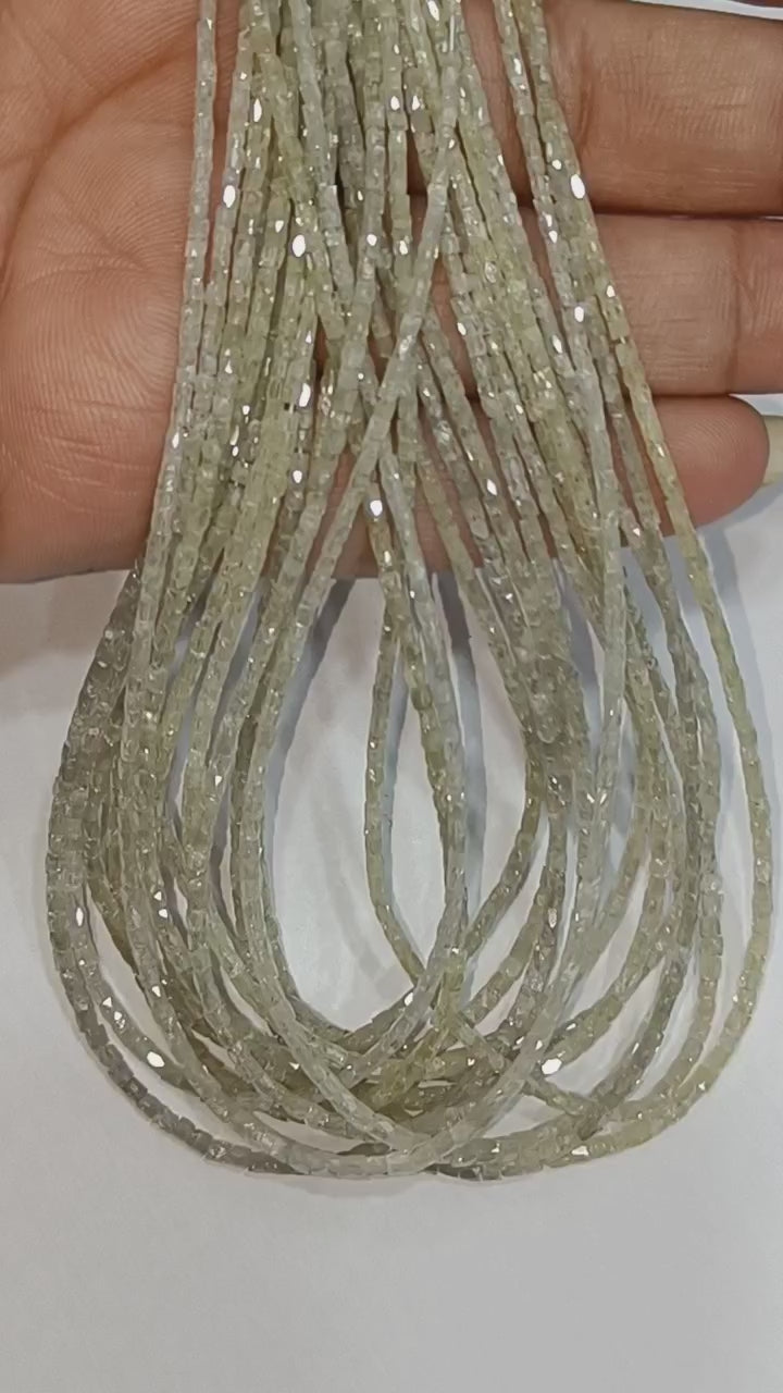 Cream White Diamond Fancy Snake Finish Box Shape Beads , Cream White Diamond Box Shape Faceted Beads , 1.25x1.50 mm 15 Inches , DD-005