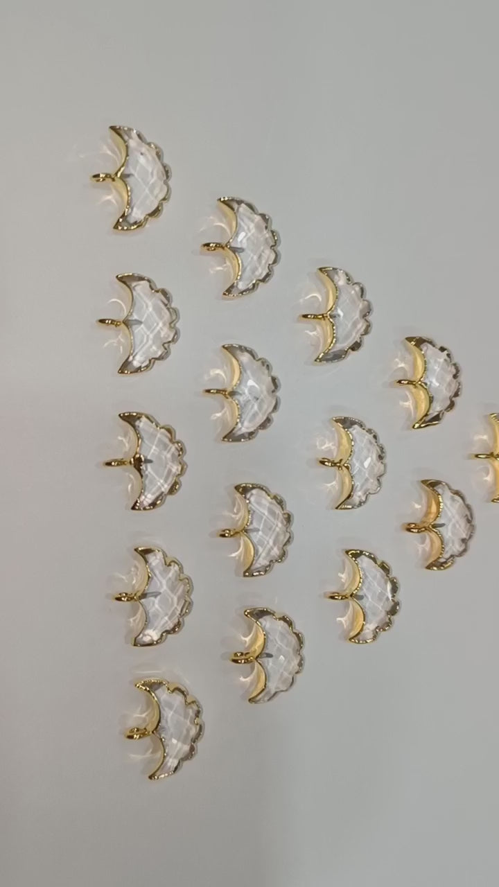 Crystal Electroplated Half Moon Shape Connector , Crystal Single Bail Faceted Connector Charm , Sold By Piece , 15 - 16 mm , 31930