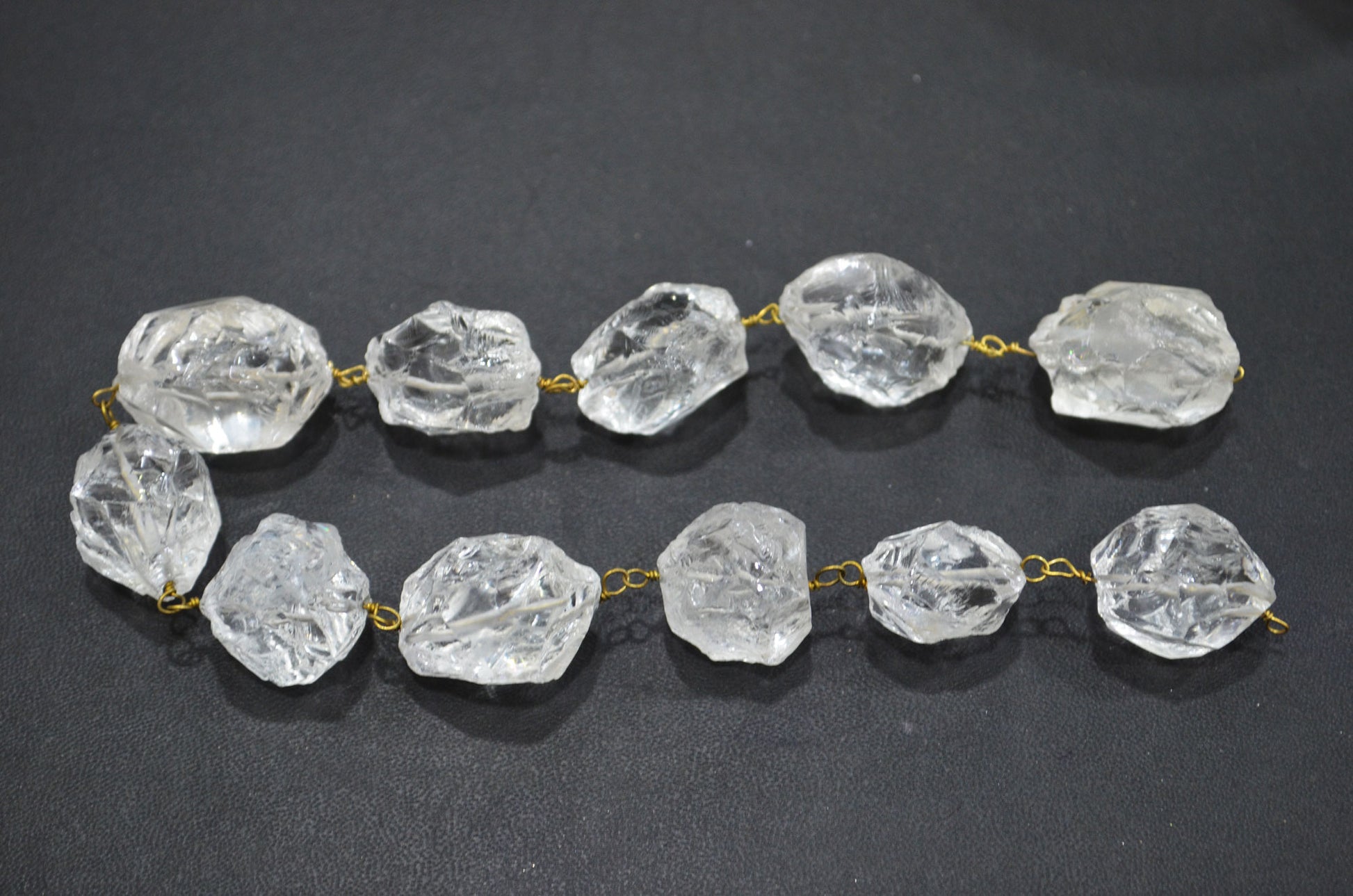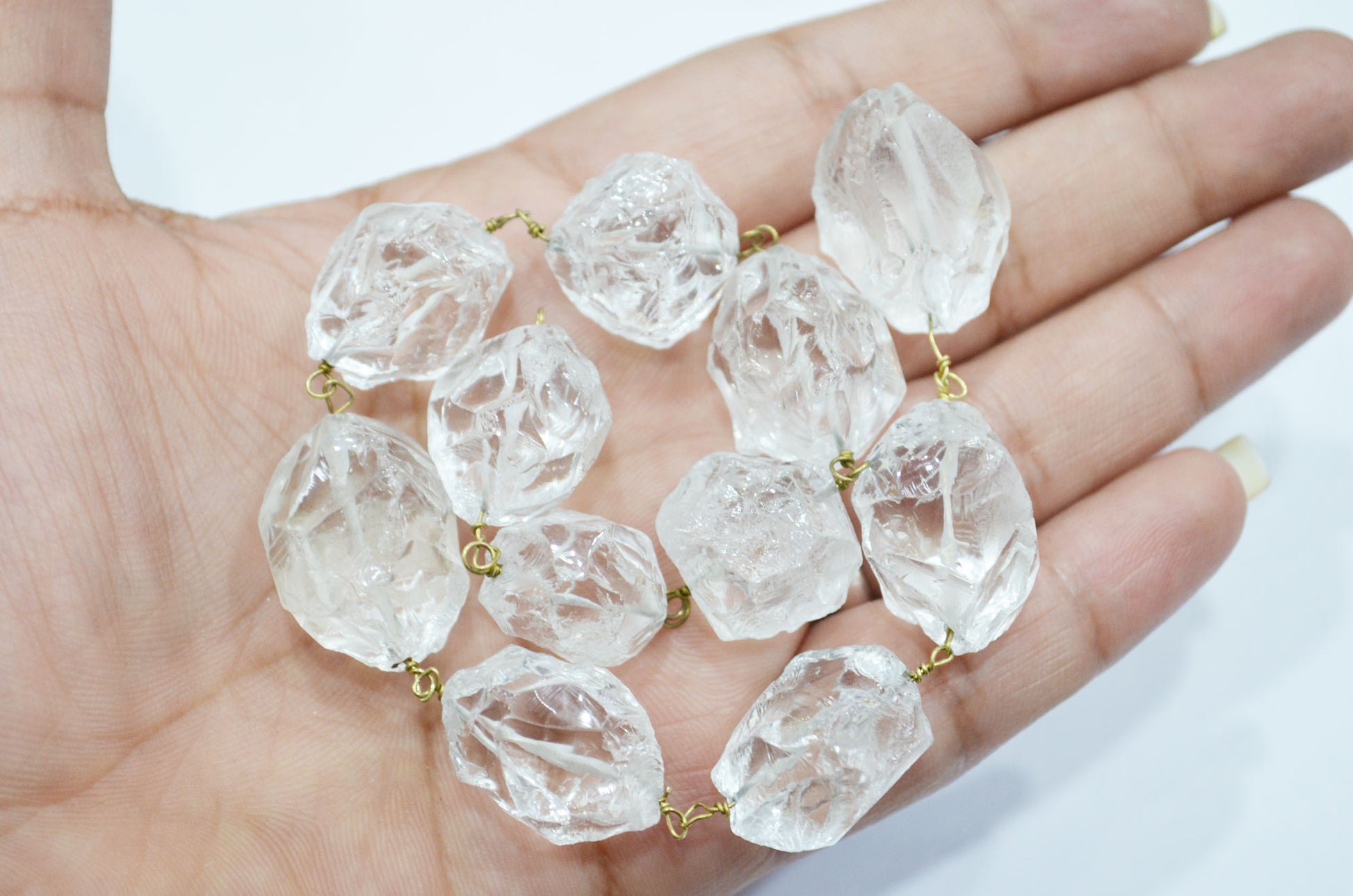 Crystal Hammered Nuggets Shape Rosary Beaded Chain , Crystal Hammered Tumble Shape Wire Wrapped Chain , 18 - 20 mm , RB-5867